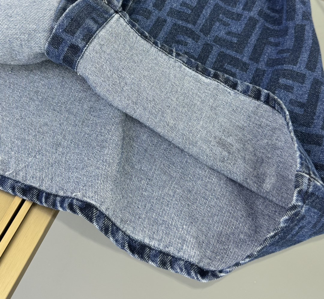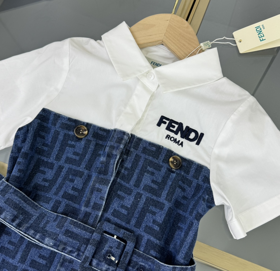 Fendi, high-end children's clothes, girls dress, small jacquard collar splicing dress, custom stitching FF full printed denim fabrics, upper body comfortable, good-looking, code number: 100/110/120/130/140/150 cm