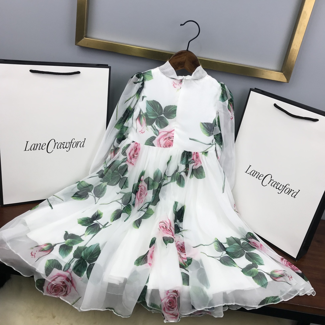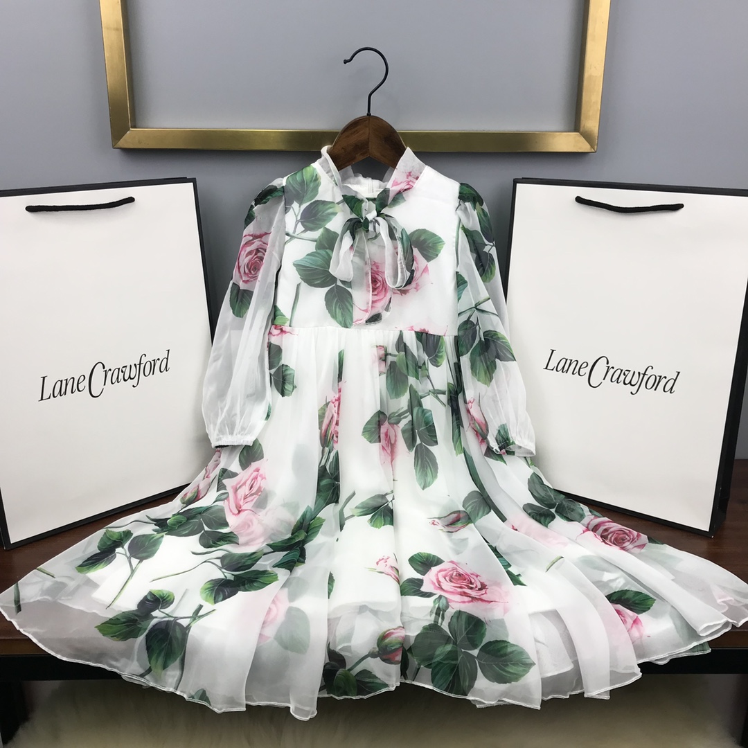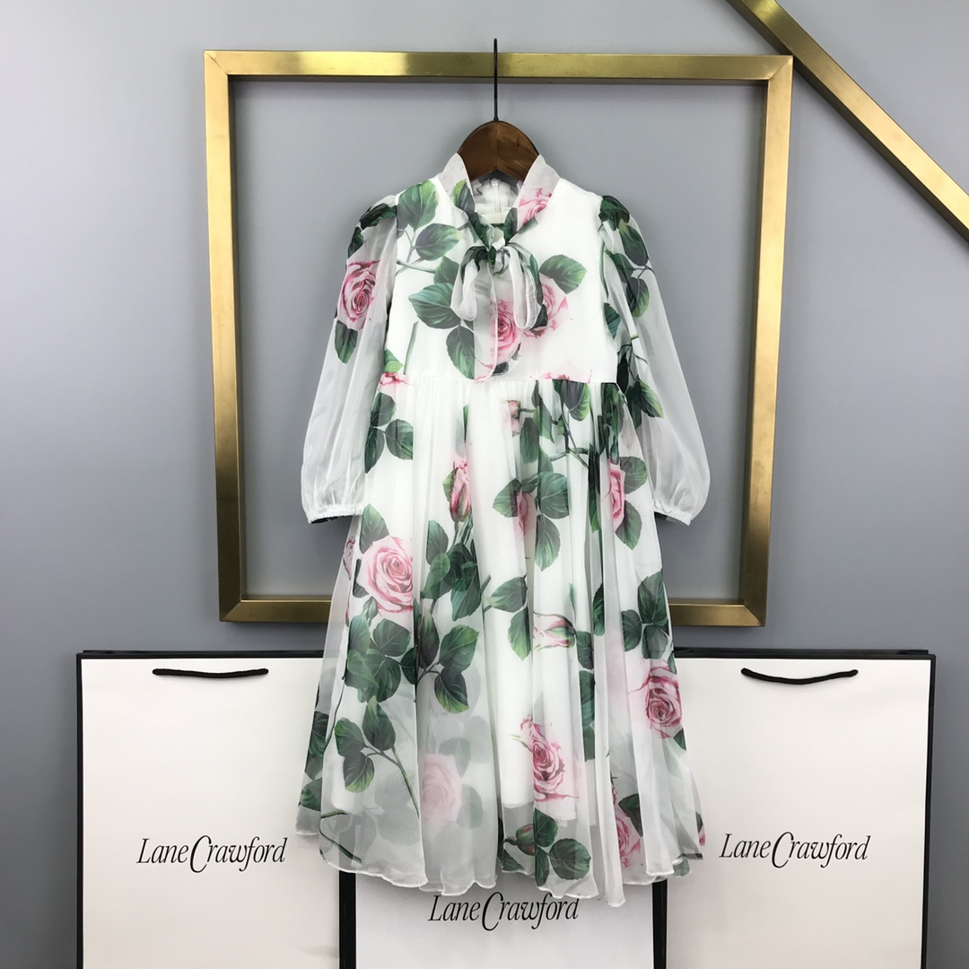 Reservation for 4 days! DG high-end children's clothing, girls' dress, made of faux silk cotton fabric, pure cotton lining, looks great when worn! Size: 100/110/120/130/140/150/160 cm, suitable for 90-150 cm tall