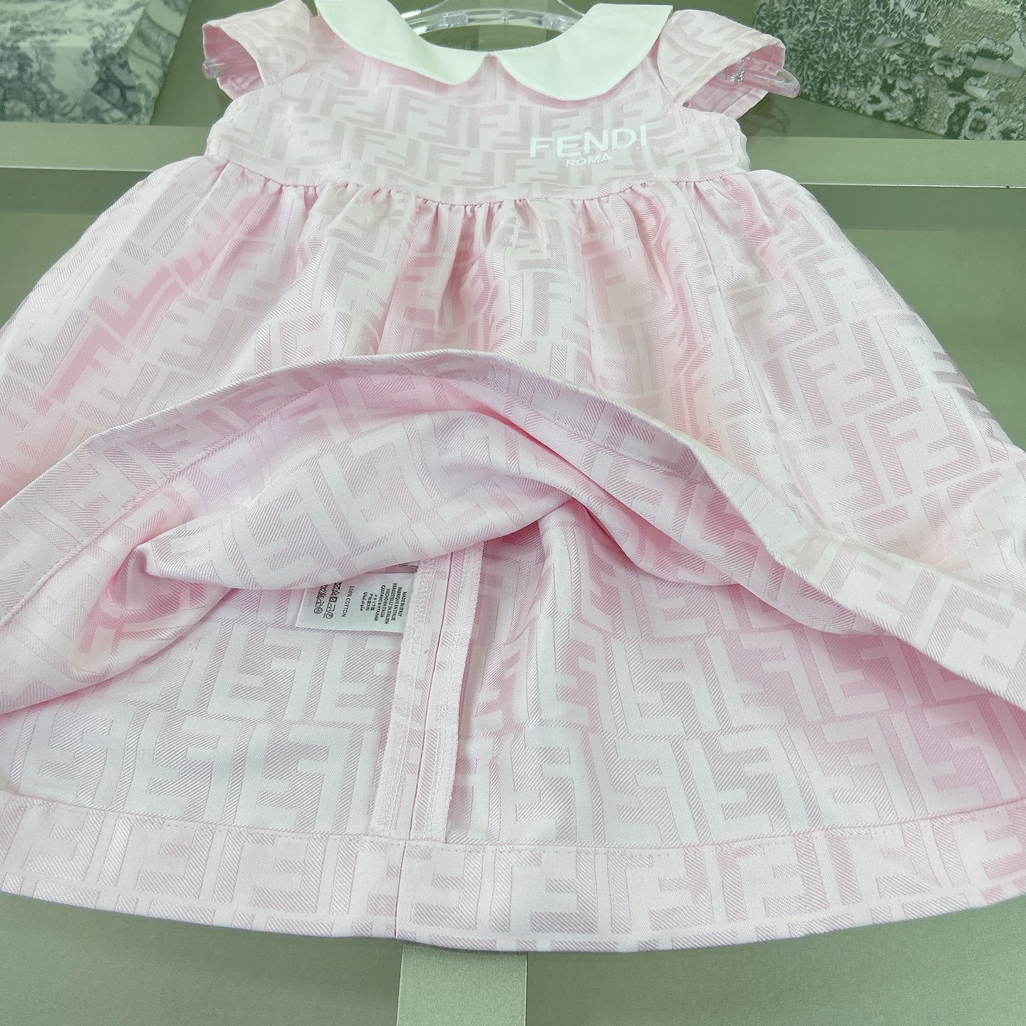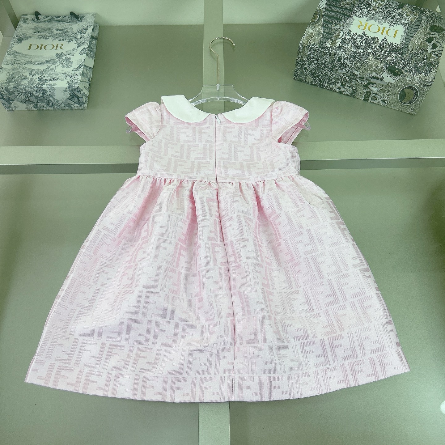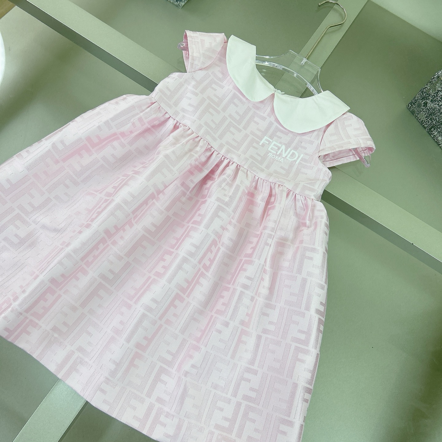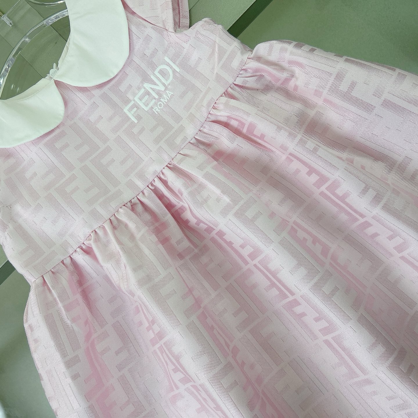 Fendi, high-end children's clothes, girls dress, heavy delicate embroidery, decorated with the whole picture of FF fastens with color logo, the upper part of the body comfortable, good-looking, code number: 90/100/110/120/130/140/150/160 cm