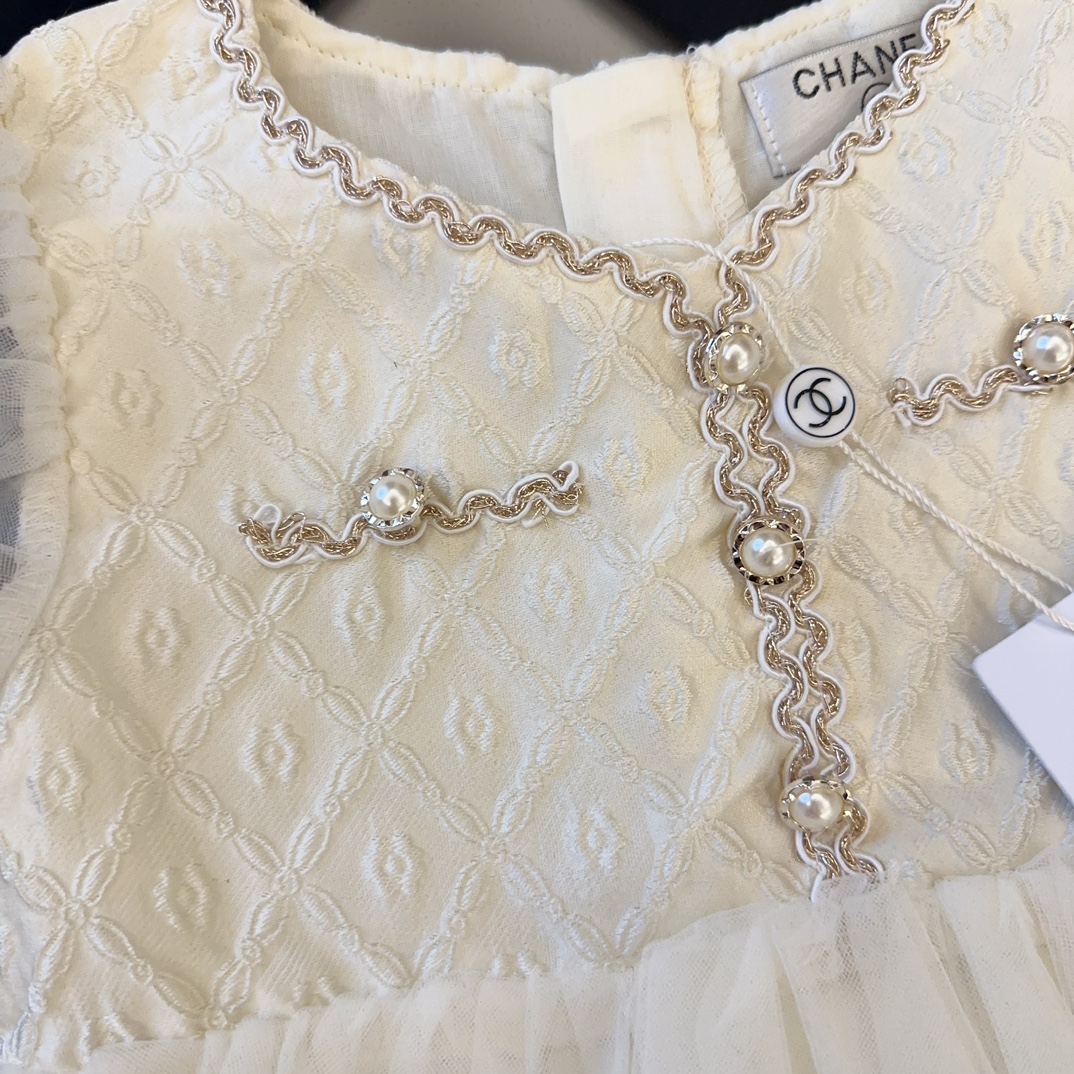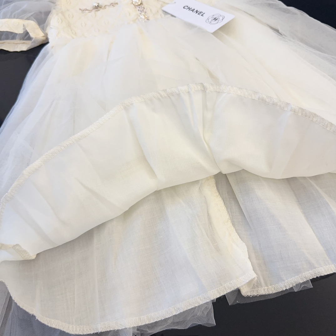 Reserve for 5 days! Chanel, high-end children's clothing, girls' dress, puffed-sleeve design, beautiful when worn, size: 90/100/110/120/130/140cm