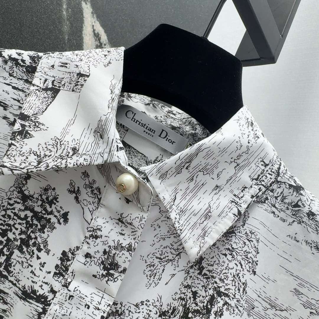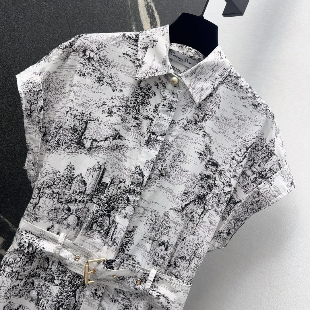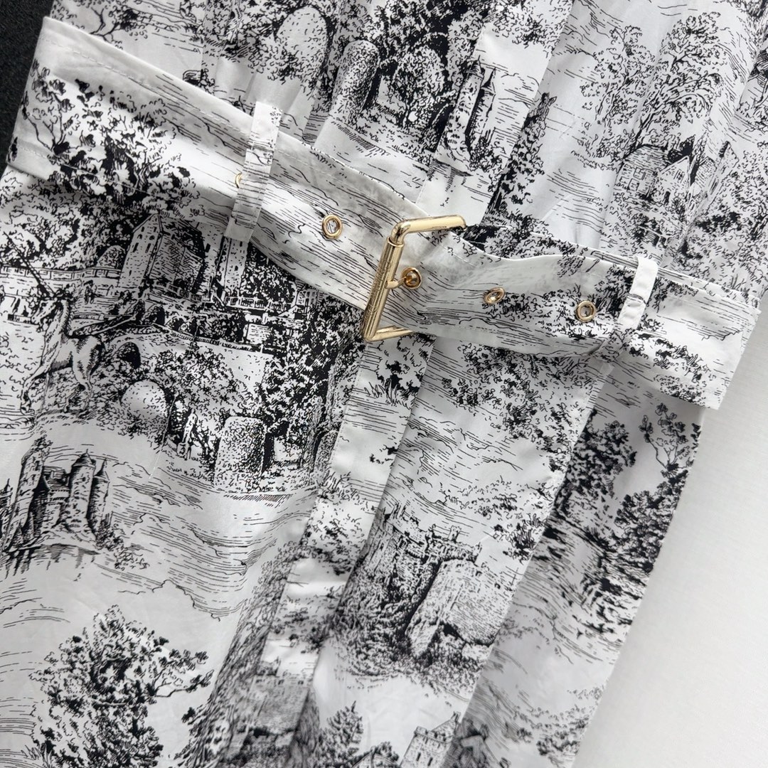 CD 25SS -- Early Spring New collection Reverse Juyi Garden Jungle pattern printed short-sleeved dress umbrella-shaped skirt hem embrace body Casual ELEGANCE All-cotton breathable comfortable TEXTURE Full of temperament Small lapel tie cinched waist fit great slimming lazy Romantic vacation style ??SML