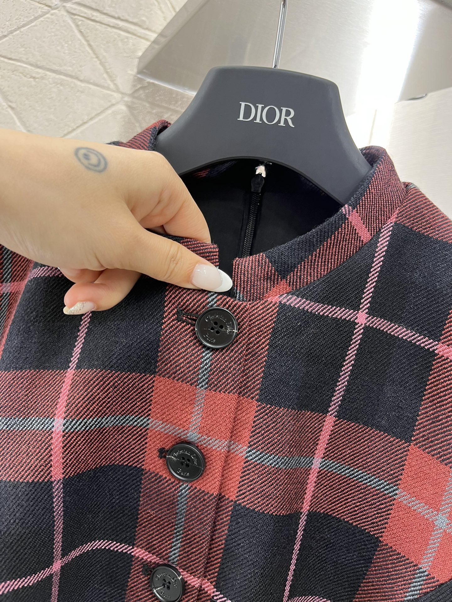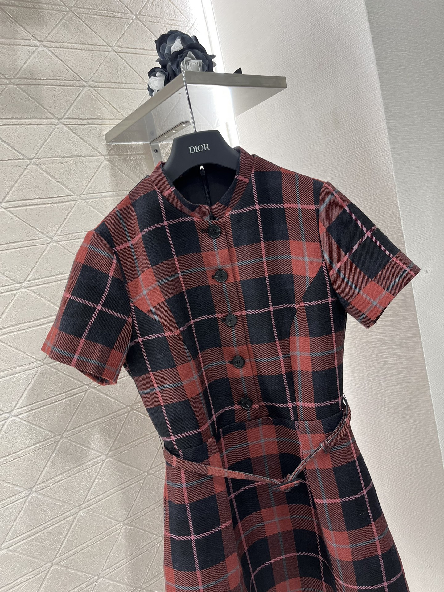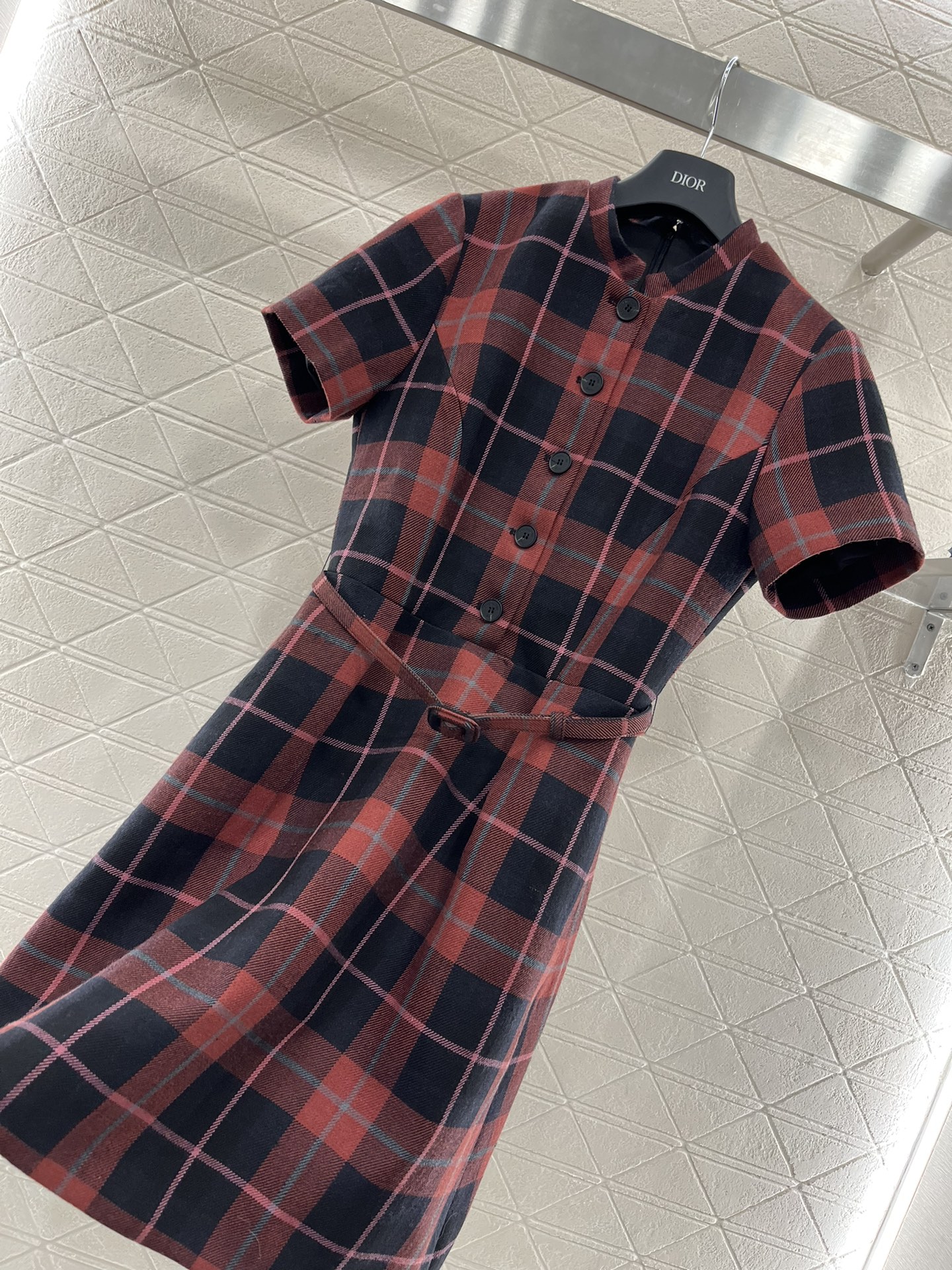The new Dio*?2025 product is now available Checkered short-sleeved dress This custom-made YB imported fine-spun wool dress features a high-quality texture, soft and skin-friendly feel, with a clearly visible texture. It is a short-sleeved cinched waist dress with a full-body contrasting color checkered pattern. The front and chest buttons are designed with an open front, making it more convenient to put on and take off. The style appears more formal and upright. Paired with a thin waiststrap made of this fabric, it catches the eye and highlights the waistline, adding femininity and curving beauty. It not only emphasizes details but also proportions Cinched waist, slightly A hem, buttocks, hips, body, RETRO, MODERN, commuting, dating, CASUAL all ?? CUSTOM fabric, choose version, high version ?????? ????820365