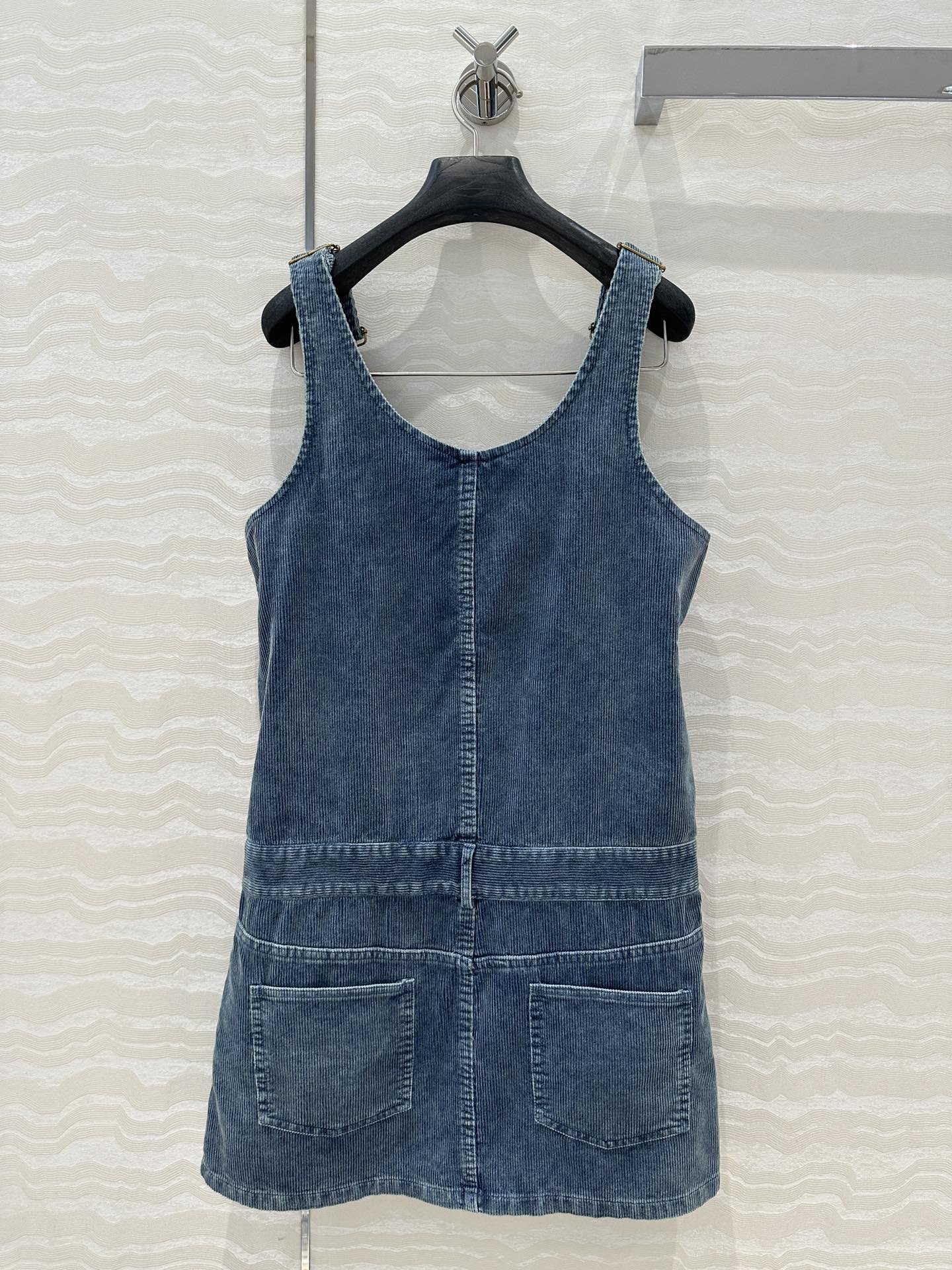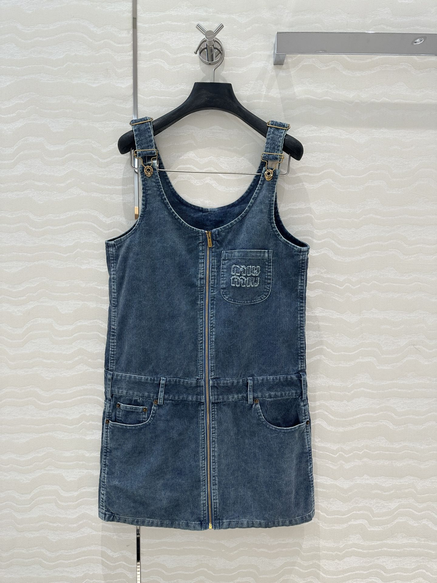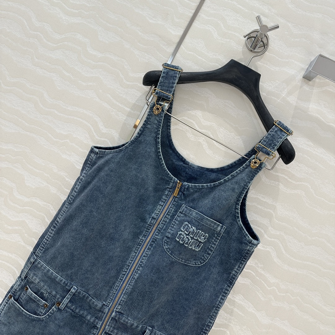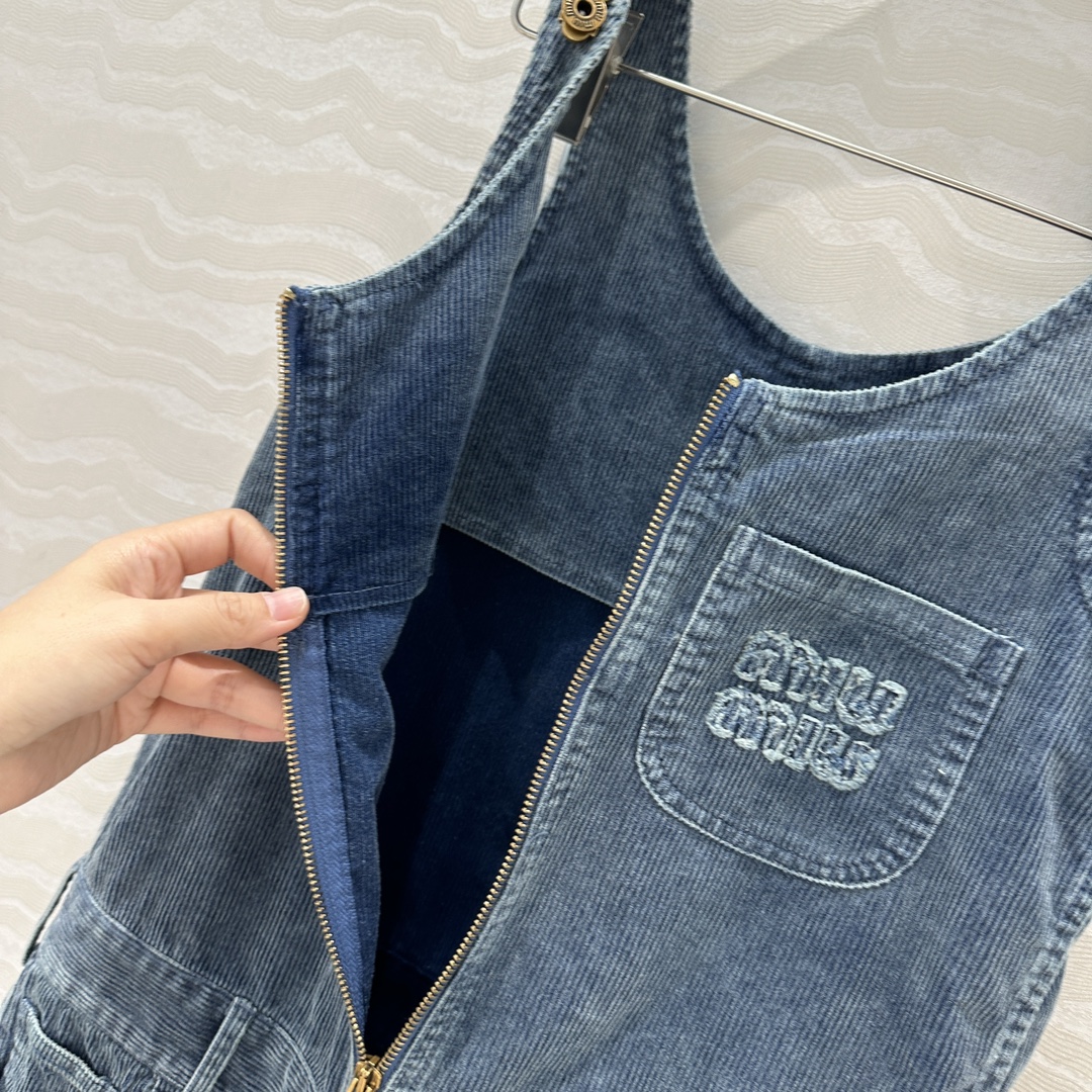 Exclusive First release ?? Original quality! Miu-style fashionable girl outfits! Special denim corduroy retro washed process shoulder dress! "College atmosphere quality items!" Sweet and salty, stylish, handsome and eye-catching. Mother BORN LONG LEGS ??3D STEREOscopic CUT H STYLE VERSATILE AND SLIMMING! The nostalgic and retro style with aged design is super cool and stylish! The embroidered letter logo on the applique is understated and luxurious. The custom-made imported corduroy denim fabric has an excellent texture. A sweet and cool style is a must-have in a fashionable girl's wardrobe. Customized hardware accessories with perfect workmanship and quality are for your own inspection. Strong reserve money! Three yards in one color. Size 36: Bust 90, hip 96, garment length 83. 928310320