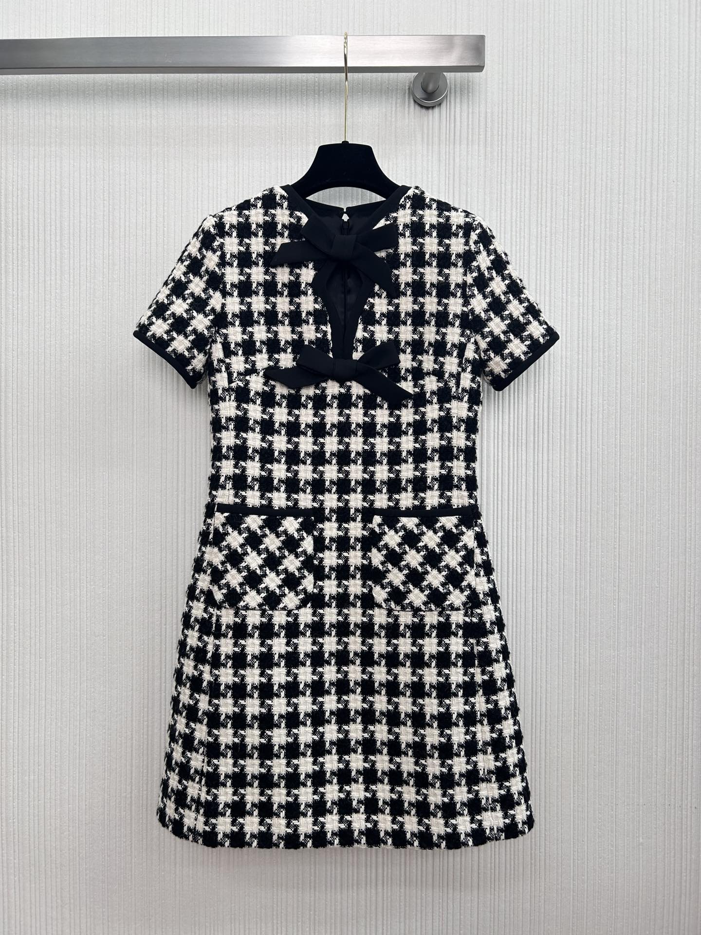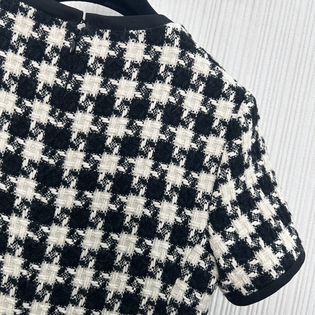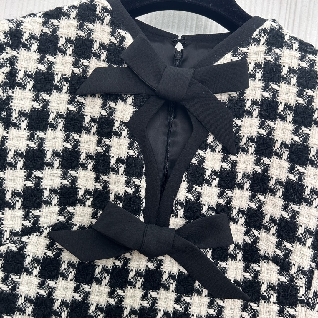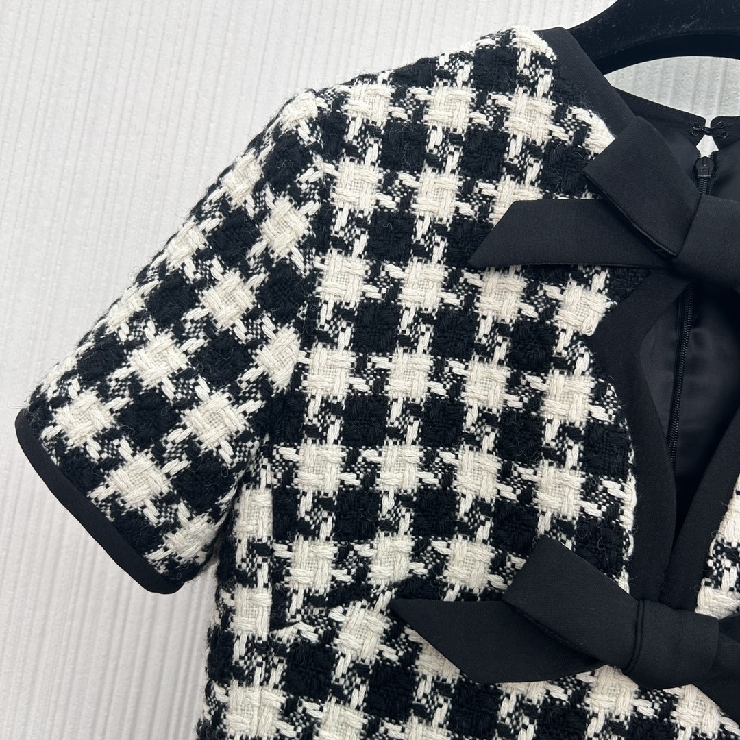 ???? NEW arrivals ~ Valent*??25 New Early Spring arrivals! Black bow ?? decorative checkered short sleeve dress, custom imported braided tweED fabric! The classic small A cut makes you look slim and tall! The charm of a chaebol's daughter can be both sweet and salty. This is a must-have item for a youthful, rich and beautiful girl! SML three codes