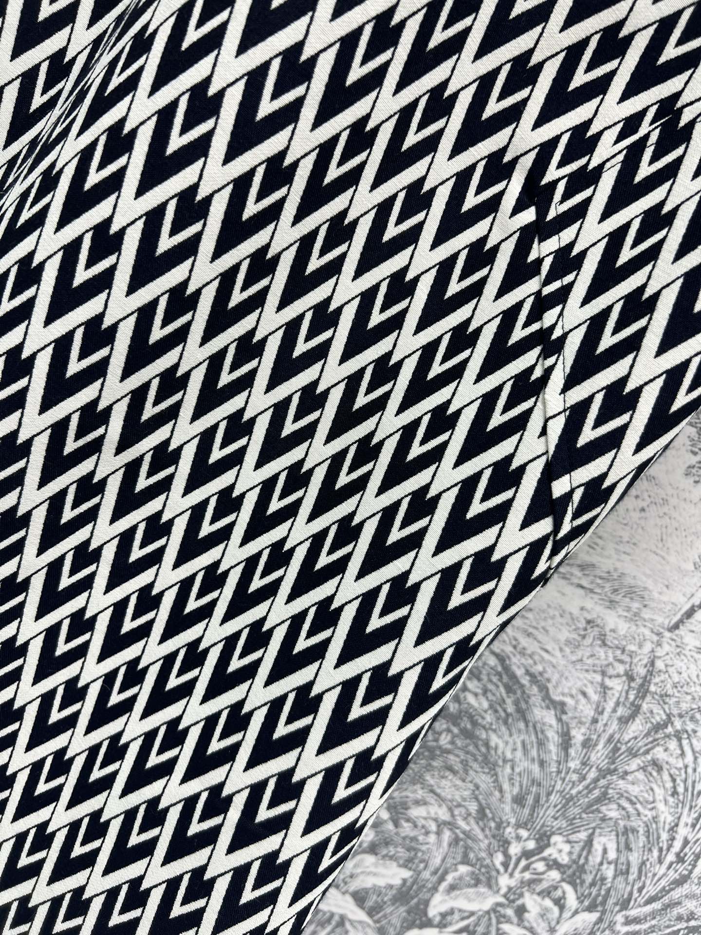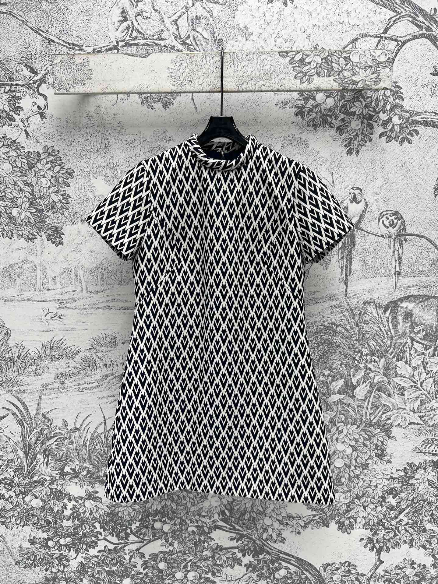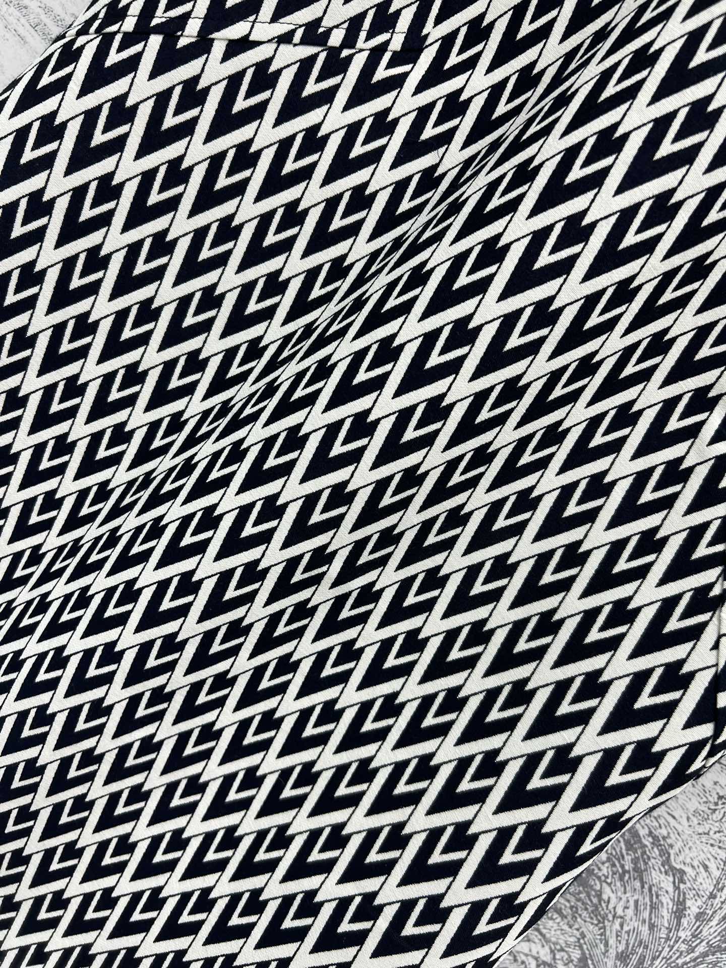The 24 autumn and winter new V-letter jacquard short-sleeved dress features a three-dimensional and form-fitting cut. It exudes a youthful and fashionable charm when worn. The custom-made gold-embossed V-letter jacquard fabric is a must-have for summer vacations. It comes in two colors and three sizes, SML 9289280