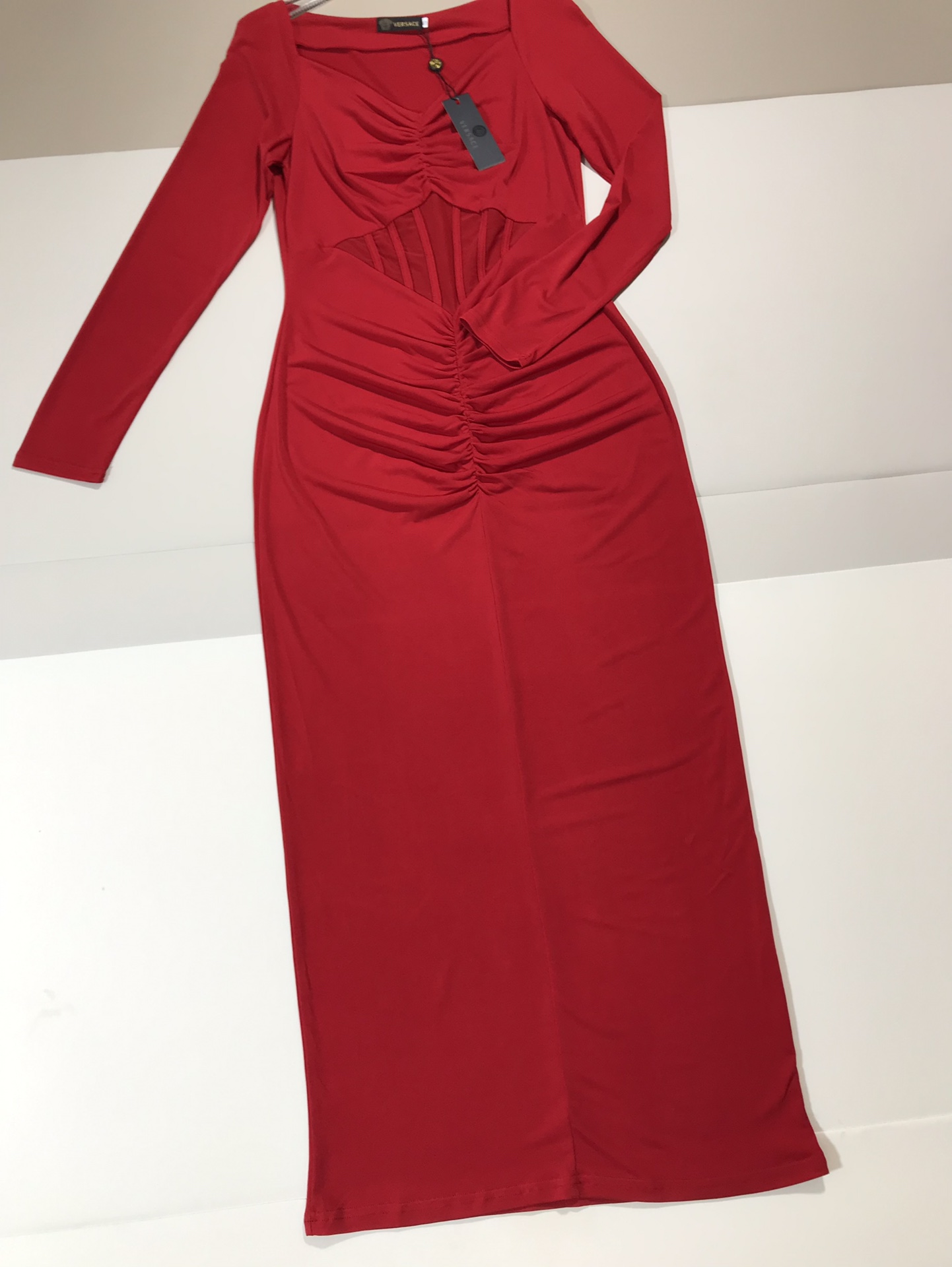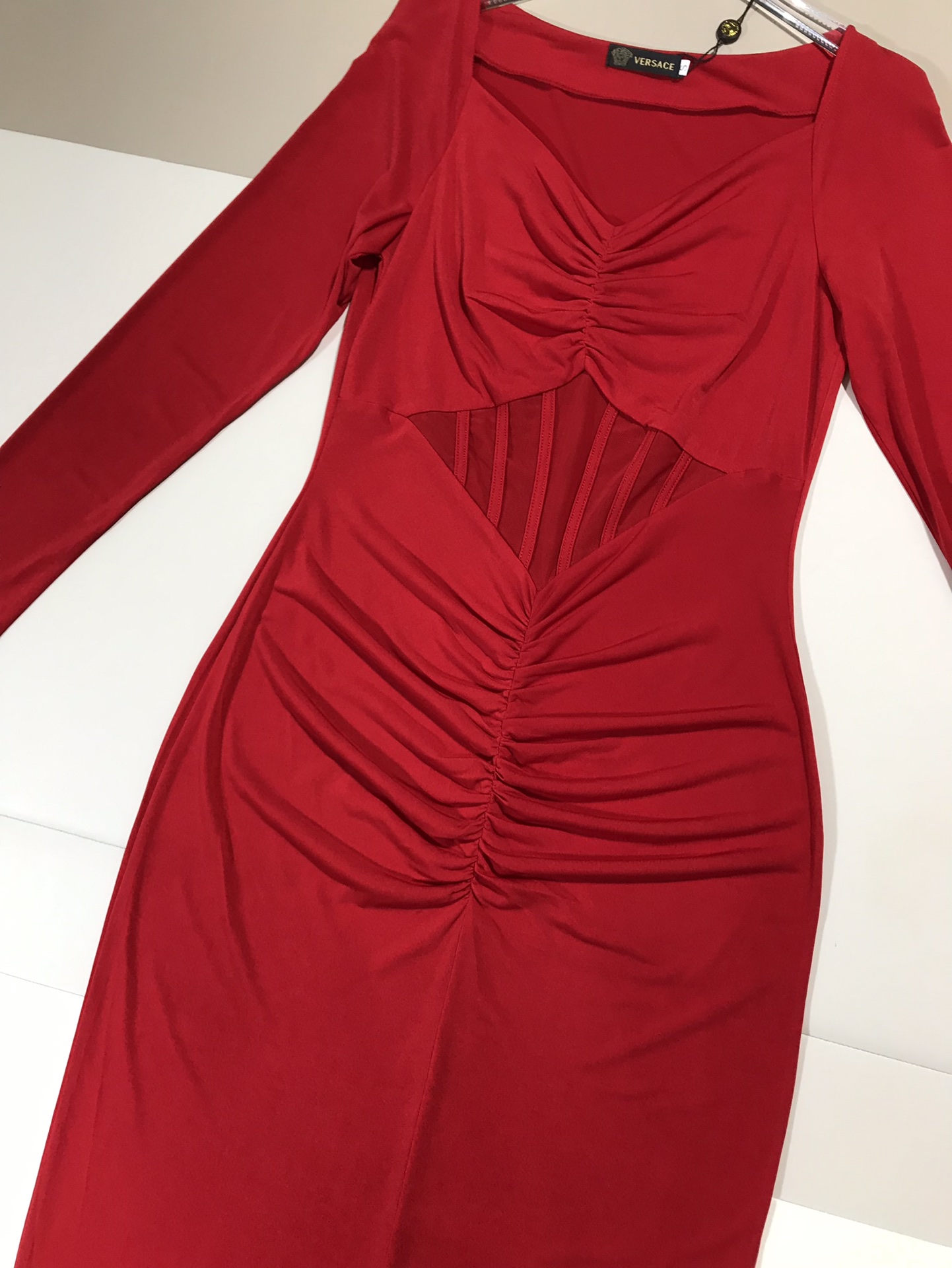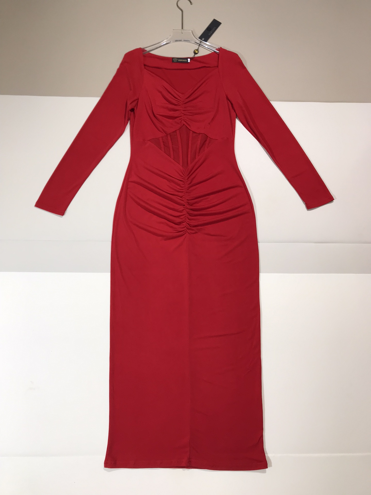 ????Versace/ Versace new stretch knit corset V-neck mid-length dress Queen Party Cocktail Dress. SMLXL