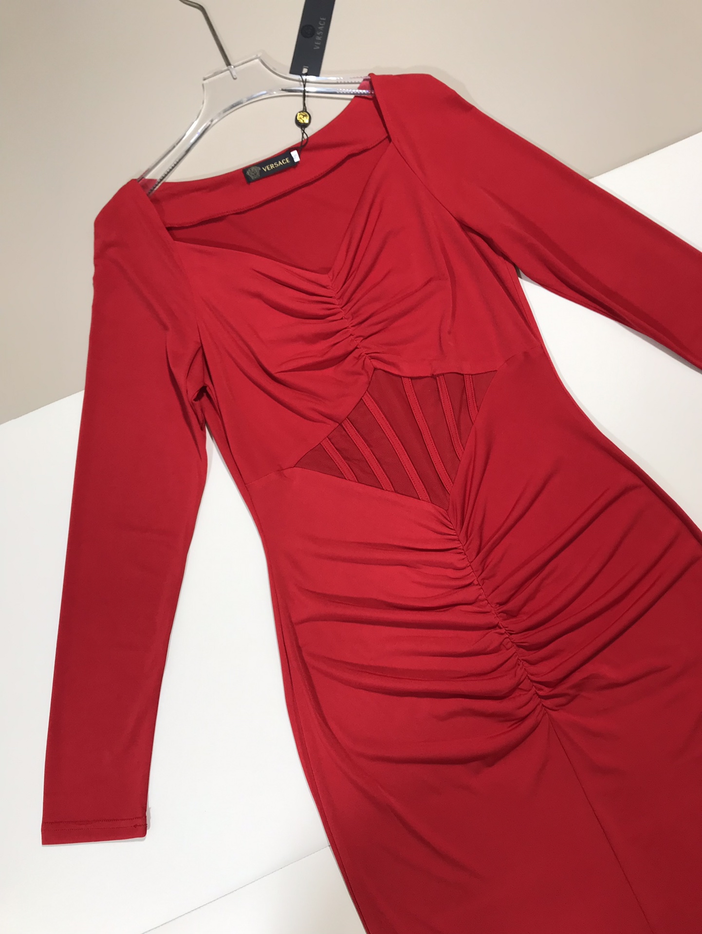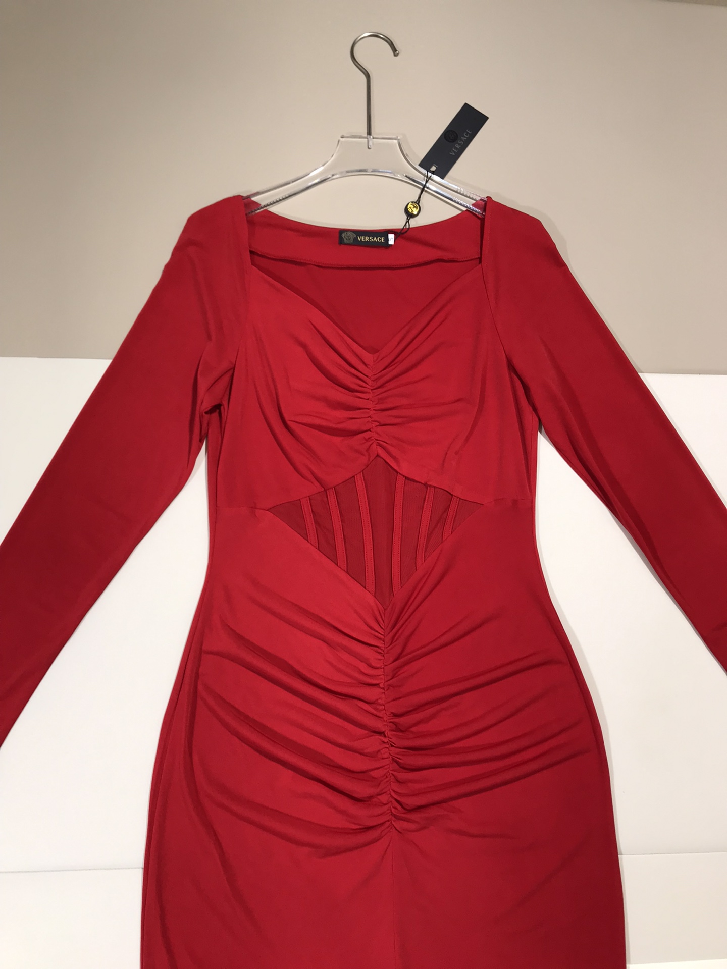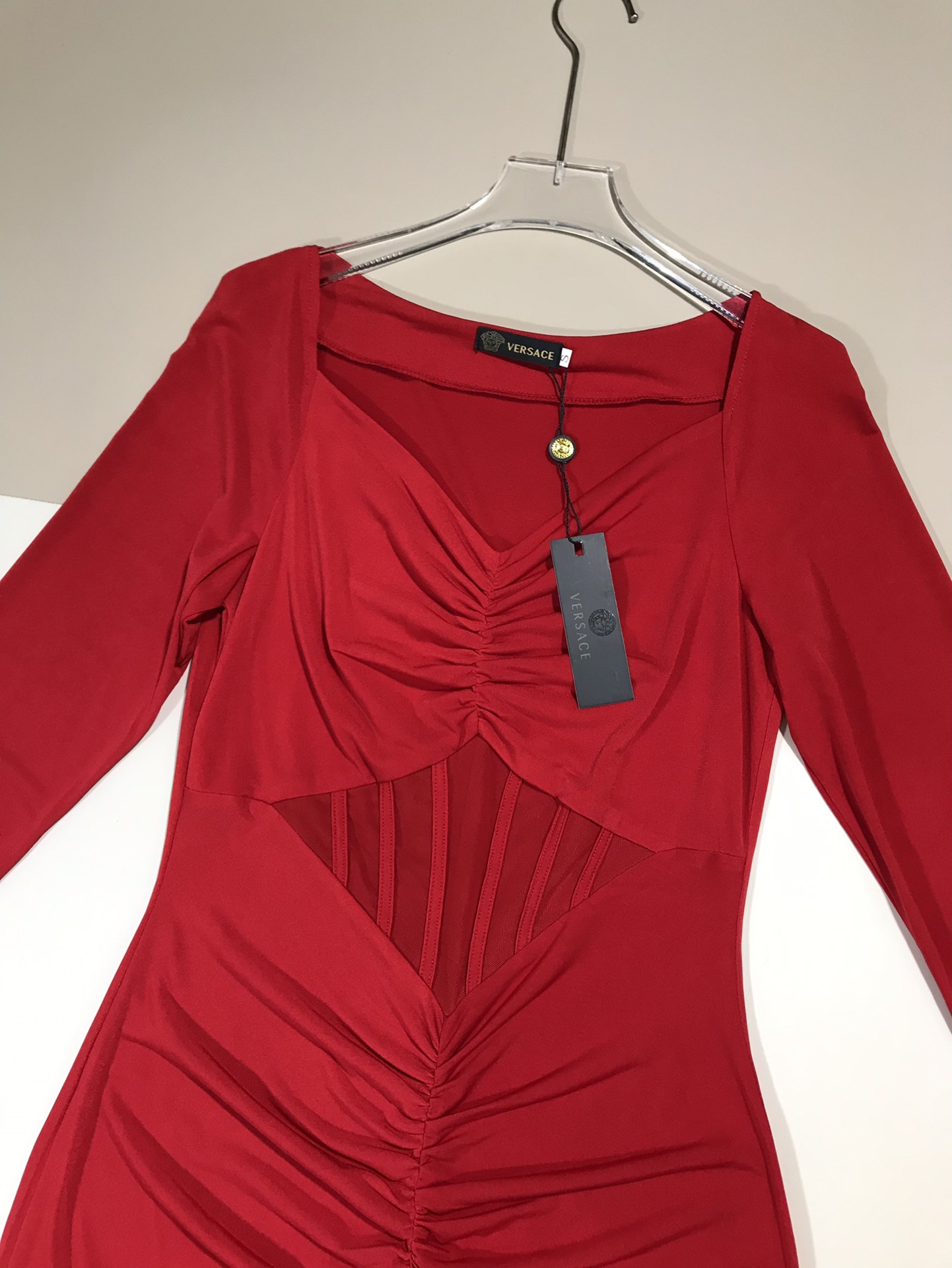 ????Versace/ Versace new stretch knit corset V-neck mid-length dress Queen Party Cocktail Dress. SMLXL