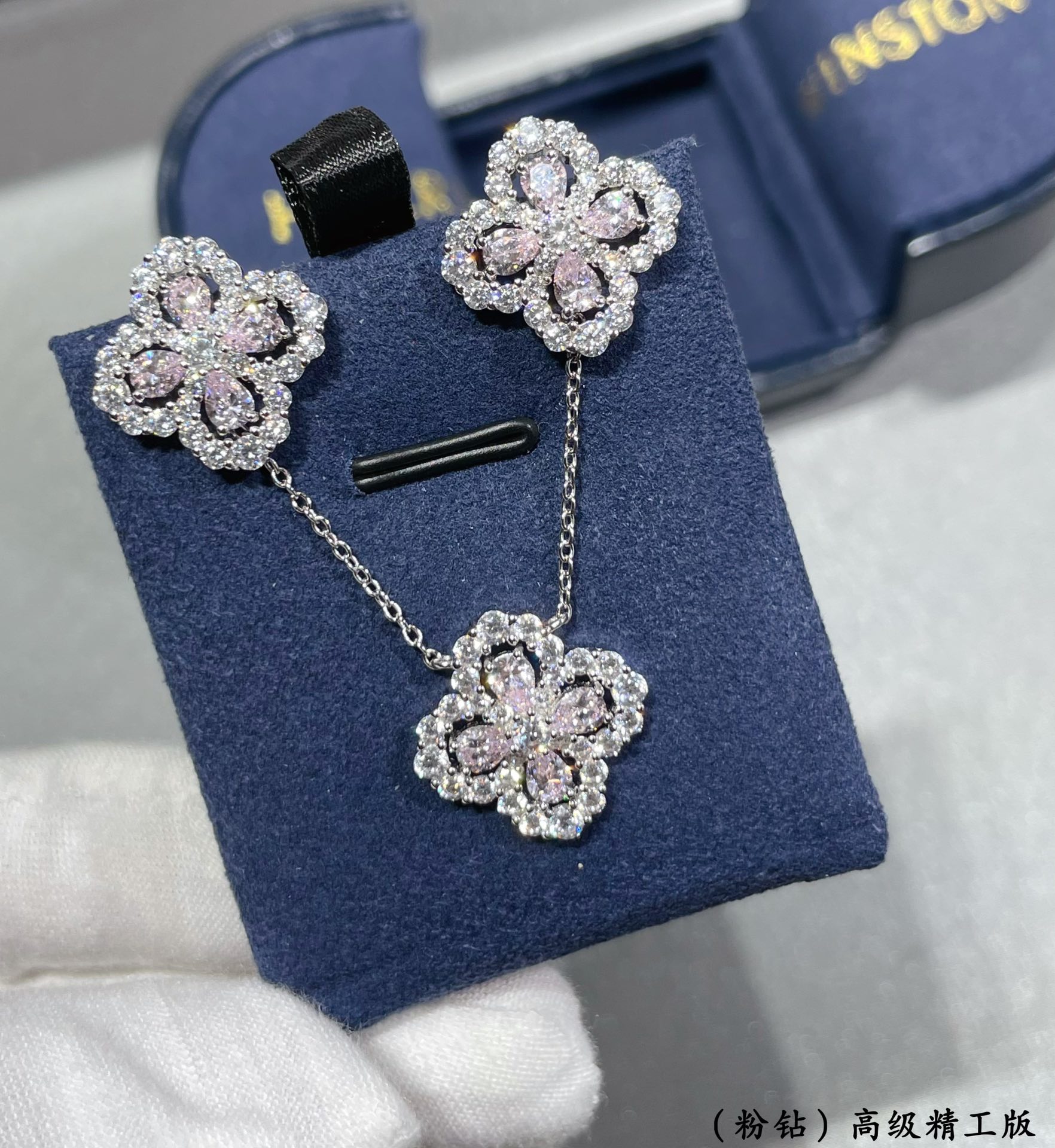 9? 2? 5? 5140190 (Pink Diamond) Harry Winston Full diamond four-leaf clover stud earrings # Diamond Links series diamond stud earrings, her every smile and frown, elegant and charming yet rational and resilient, complement the brand's signature grandmother-shaped cut diamond design perfectly. Earrings/Ear studs