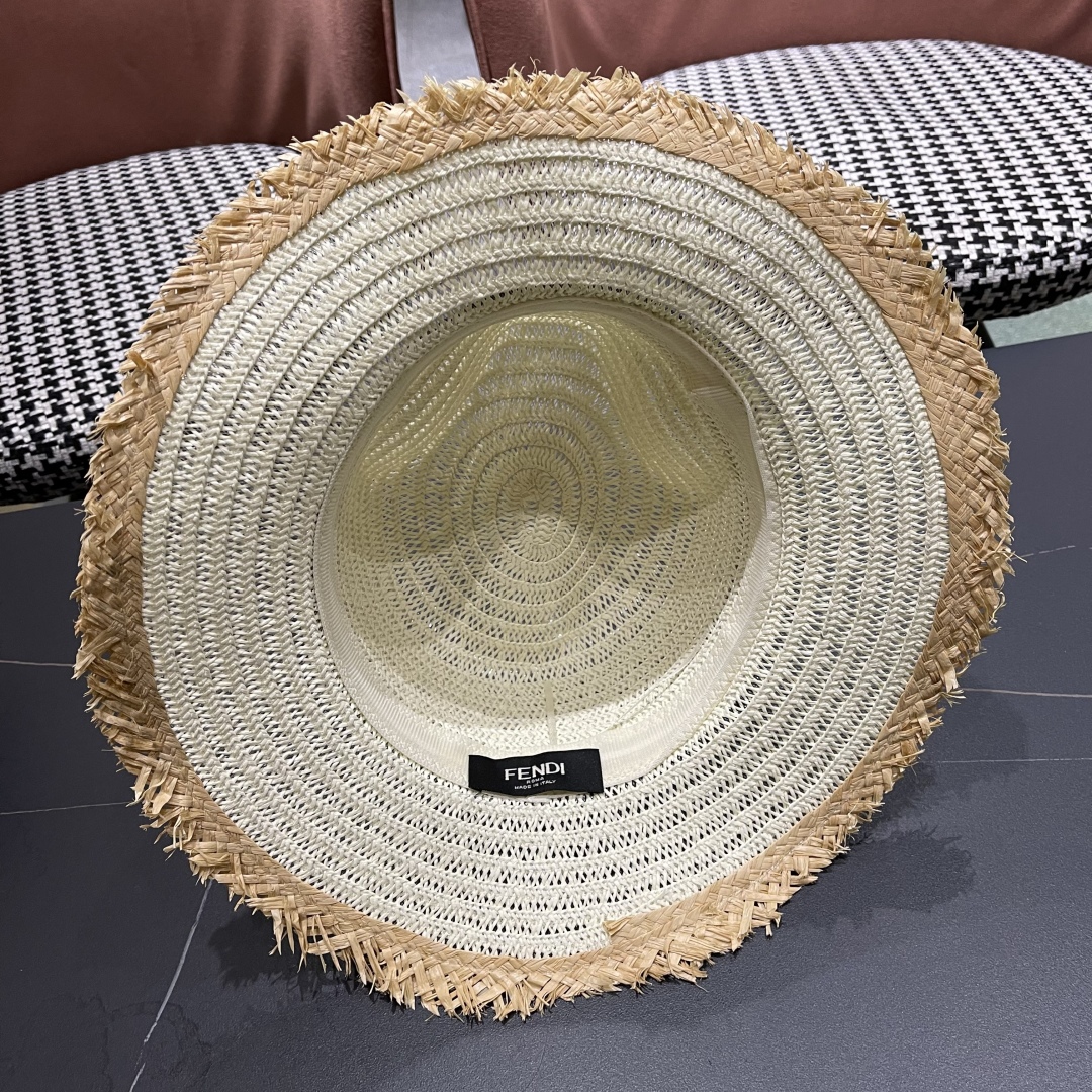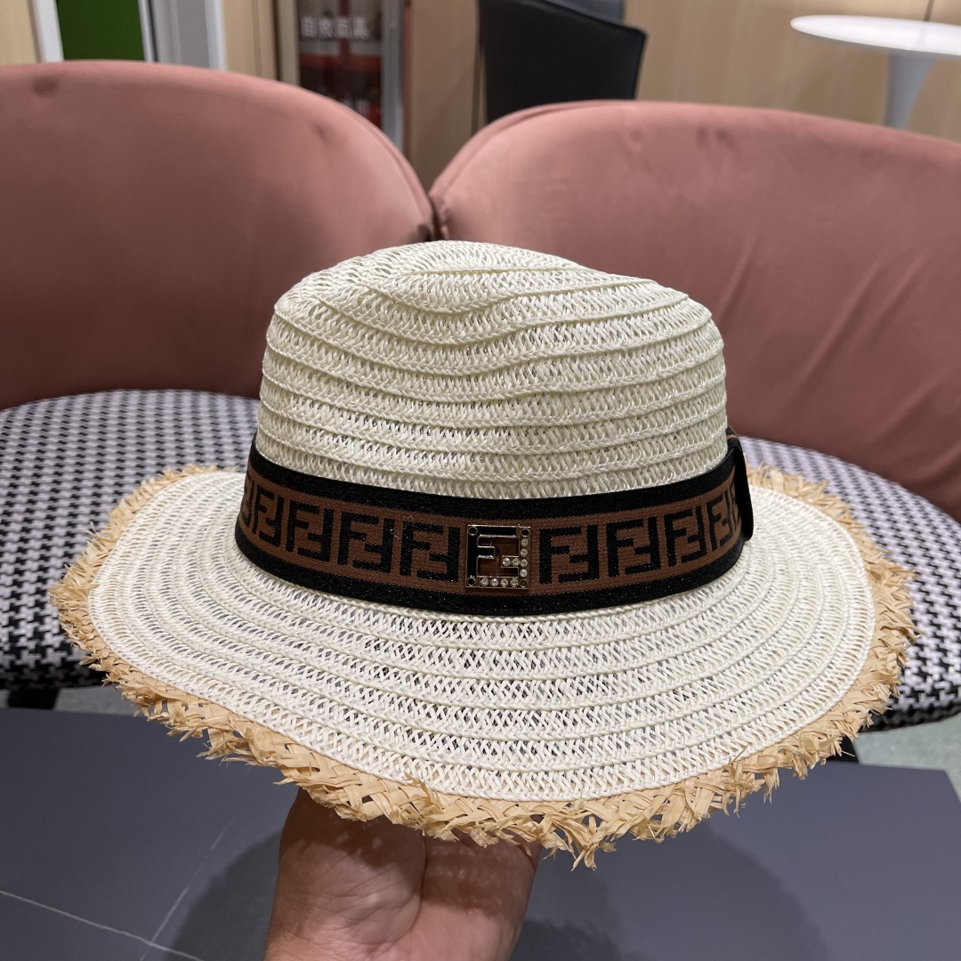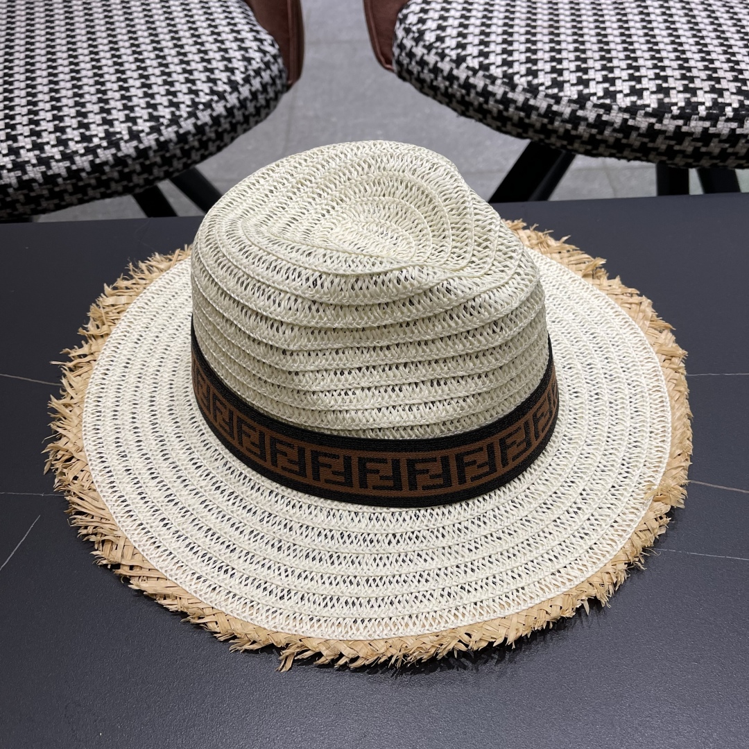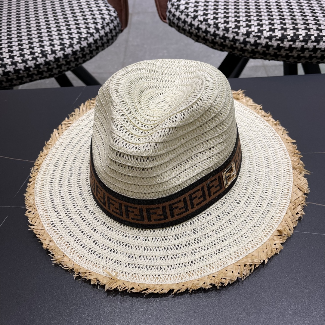 FENDI's British retro Panamanian fringed straw hat for women's spring and summer sun protection Sun-protective jazz top hat, beach vacation hat for outings