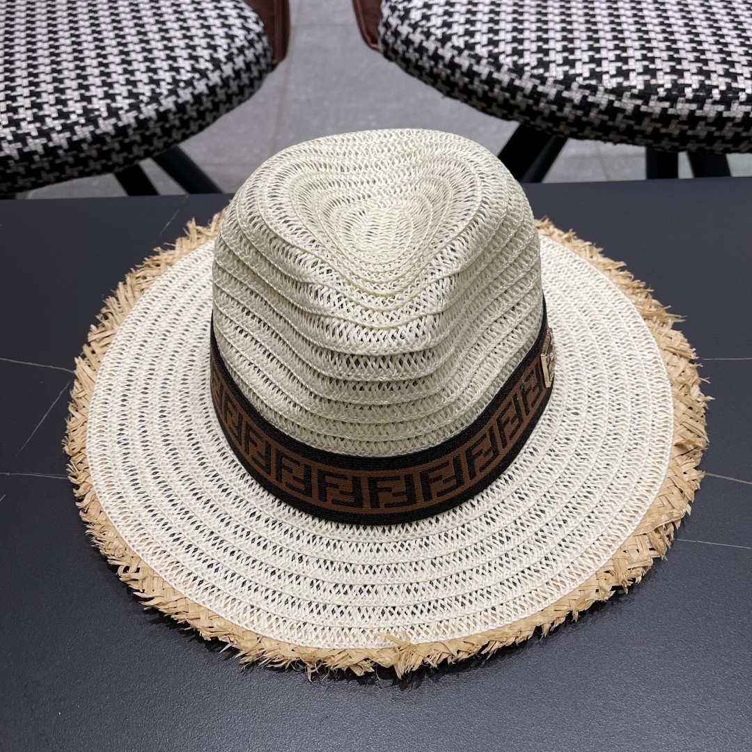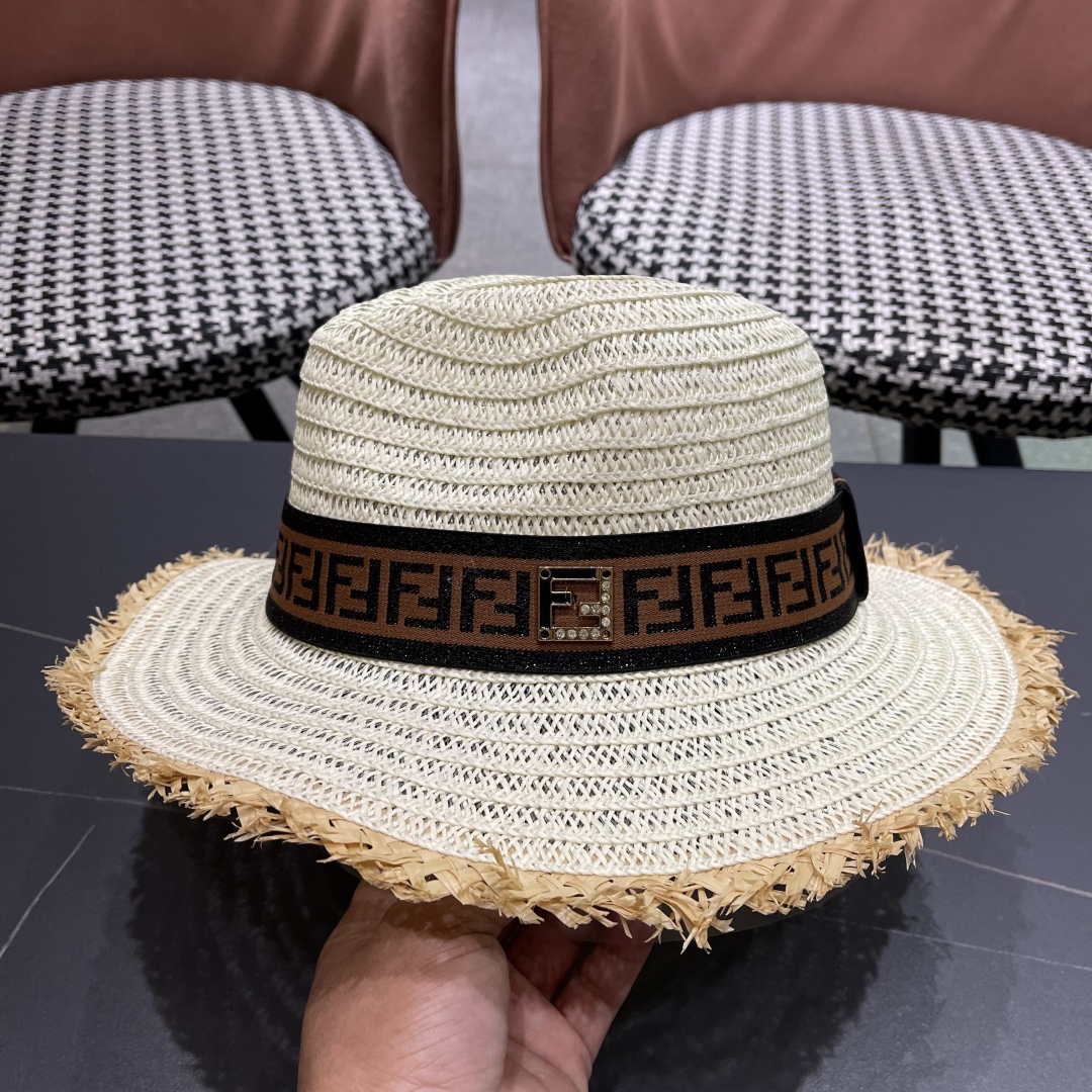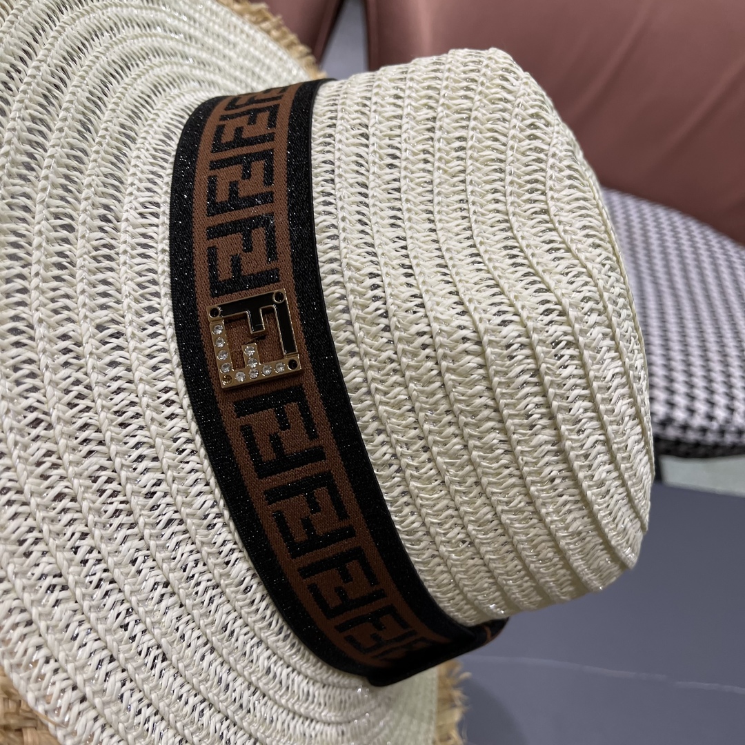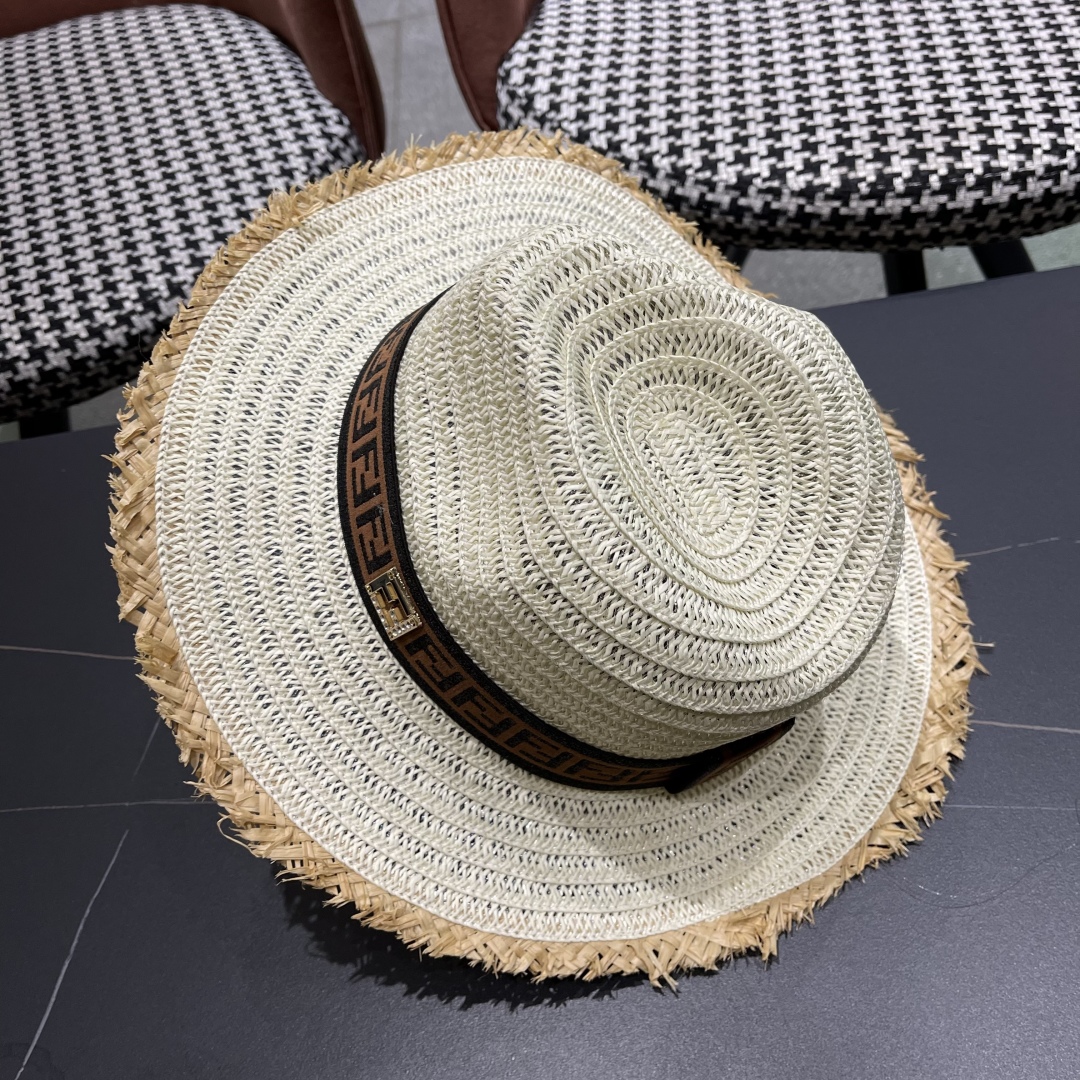 FENDI's British retro Panamanian fringed straw hat for women's spring and summer sun protection Sun-protective jazz top hat, beach vacation hat for outings