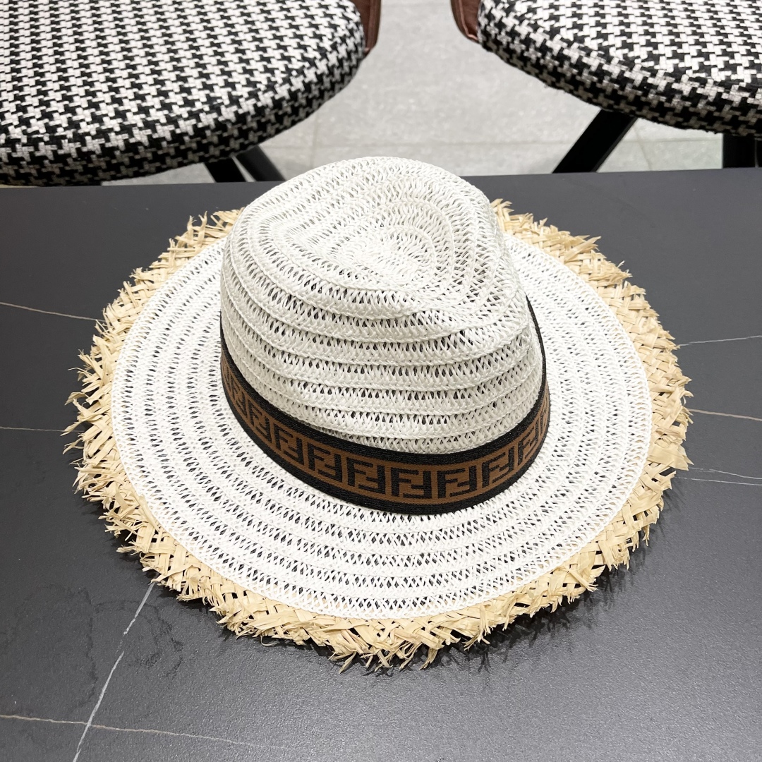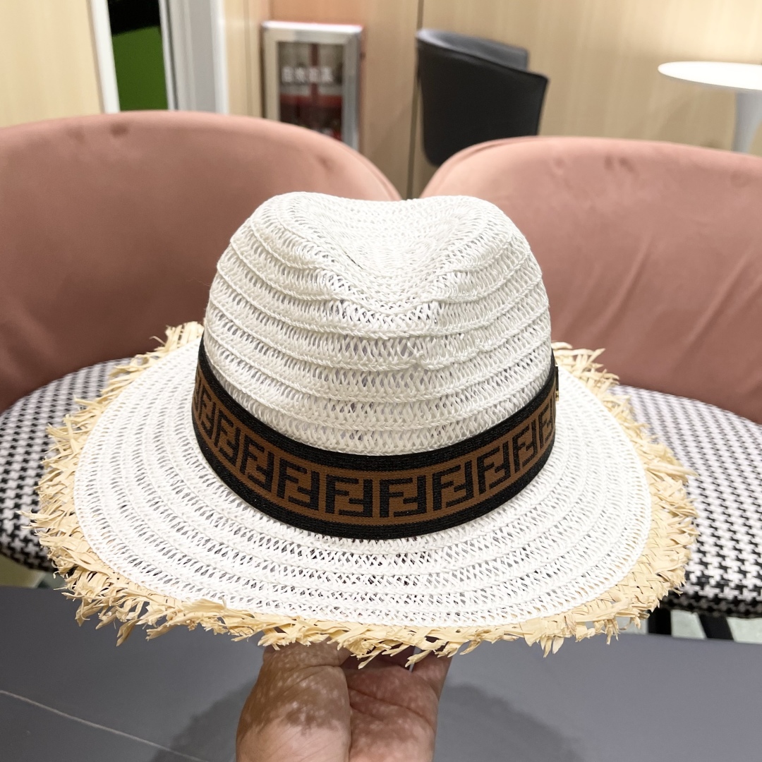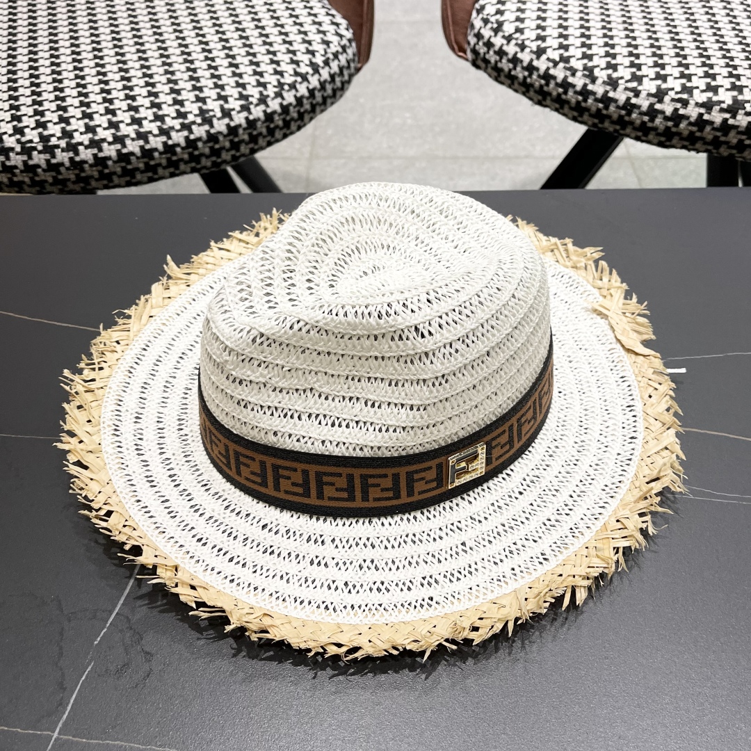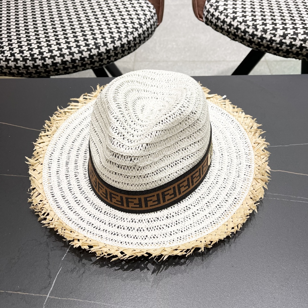 FENDI's British retro Panamanian fringed straw hat for women's spring and summer sun protection Sun-protective jazz top hat, beach vacation hat for outings