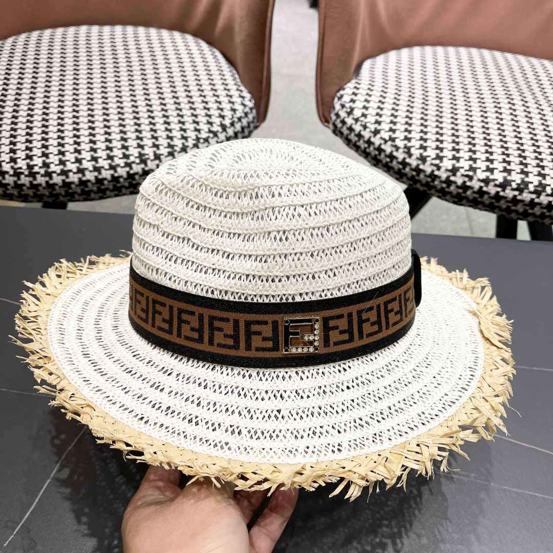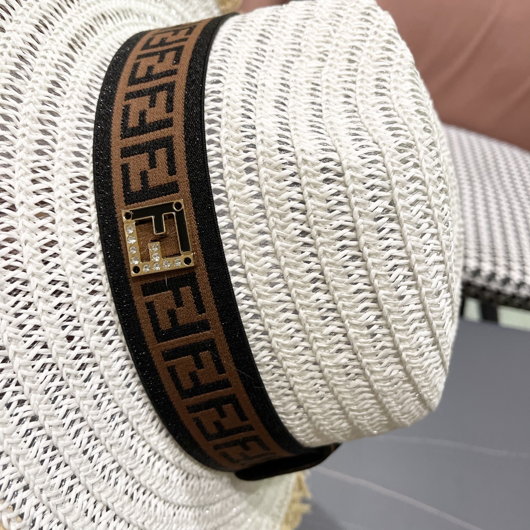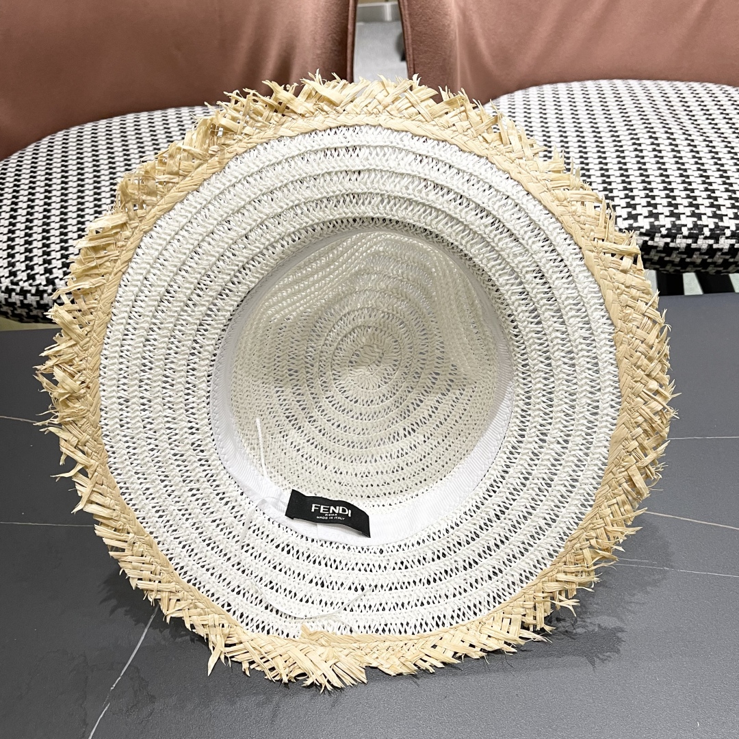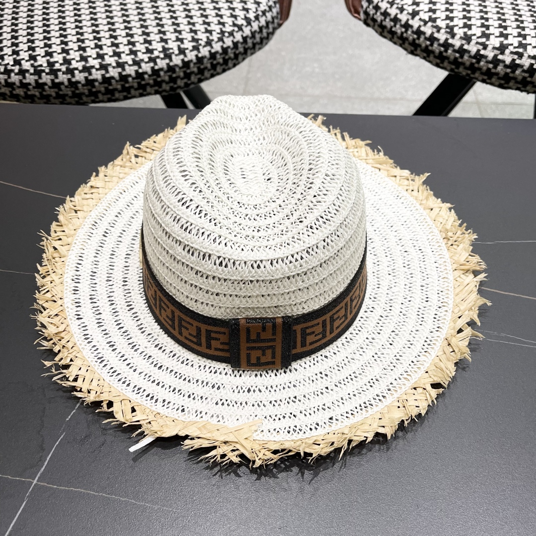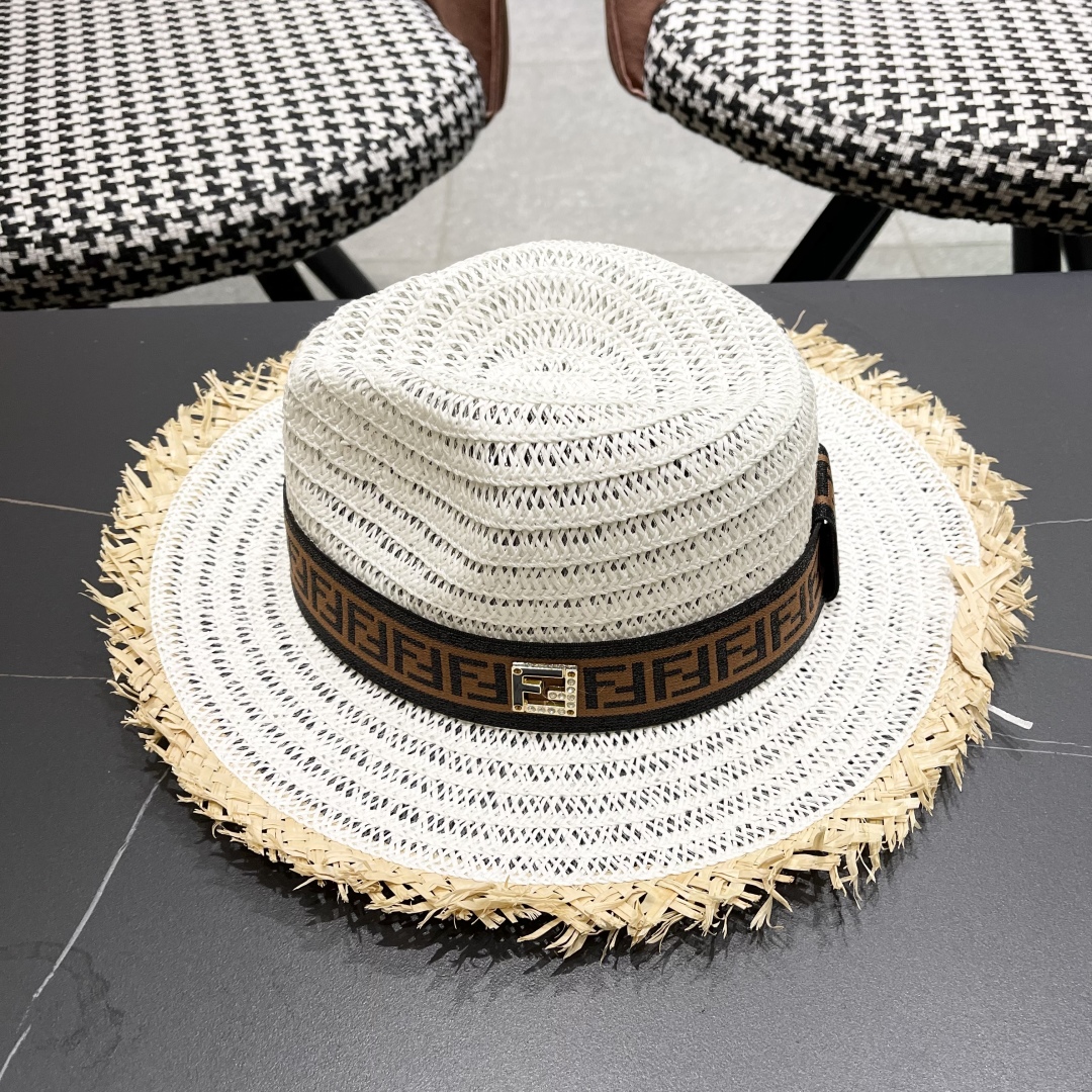 FENDI's British retro Panamanian fringed straw hat for women's spring and summer sun protection Sun-protective jazz top hat, beach vacation hat for outings