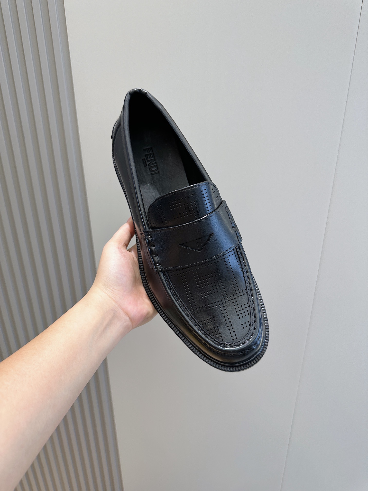Model #4005??????Fendi black cowhide loafers for men It is decorated with FF pattern and has a silver finish metal. Imported cowhide material, cowhide lining, original factory outsole Size:39-44 (custom-made at 38.45)