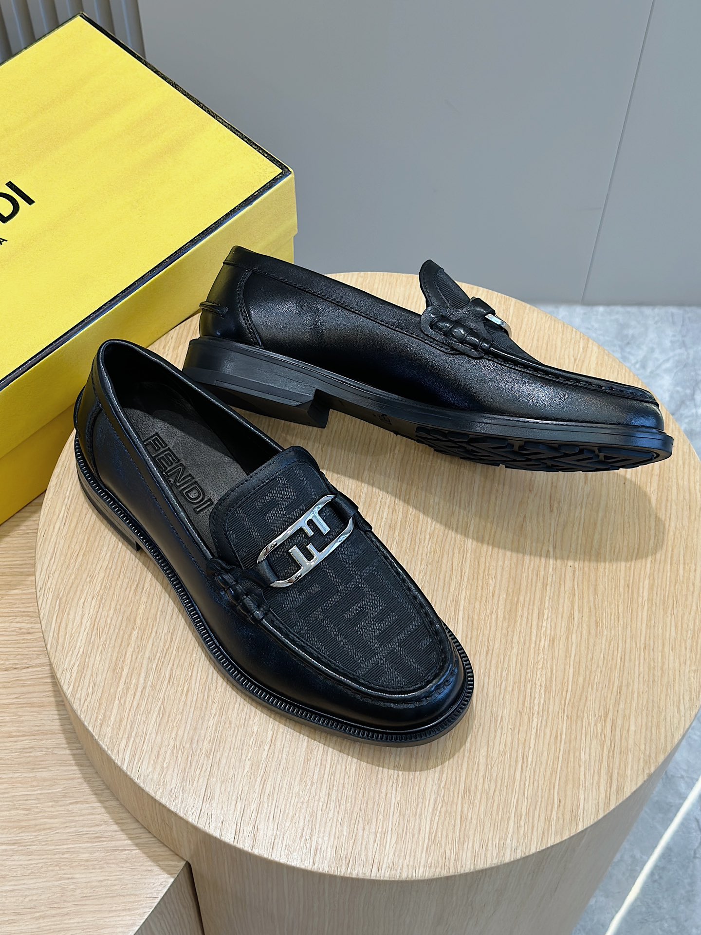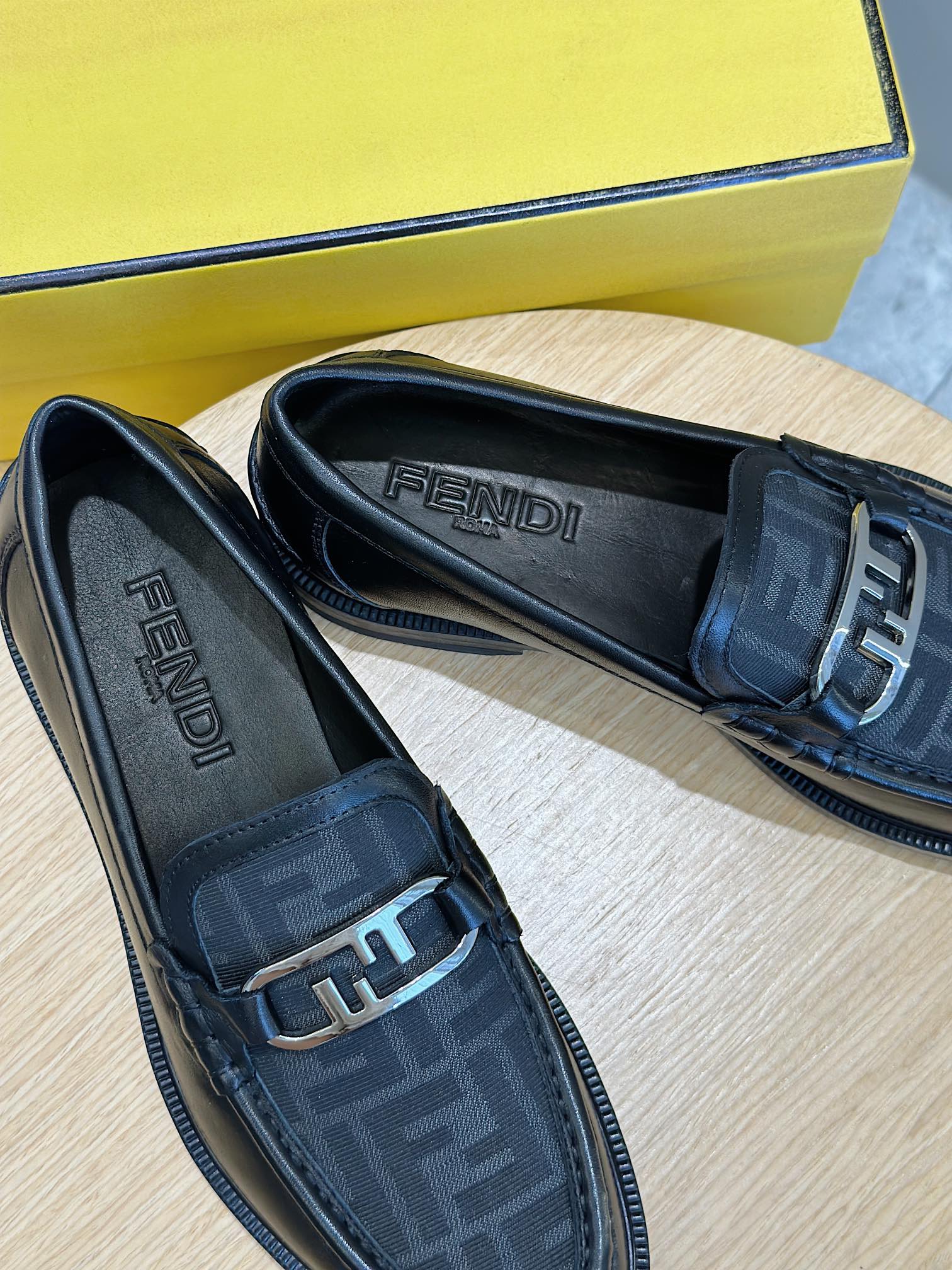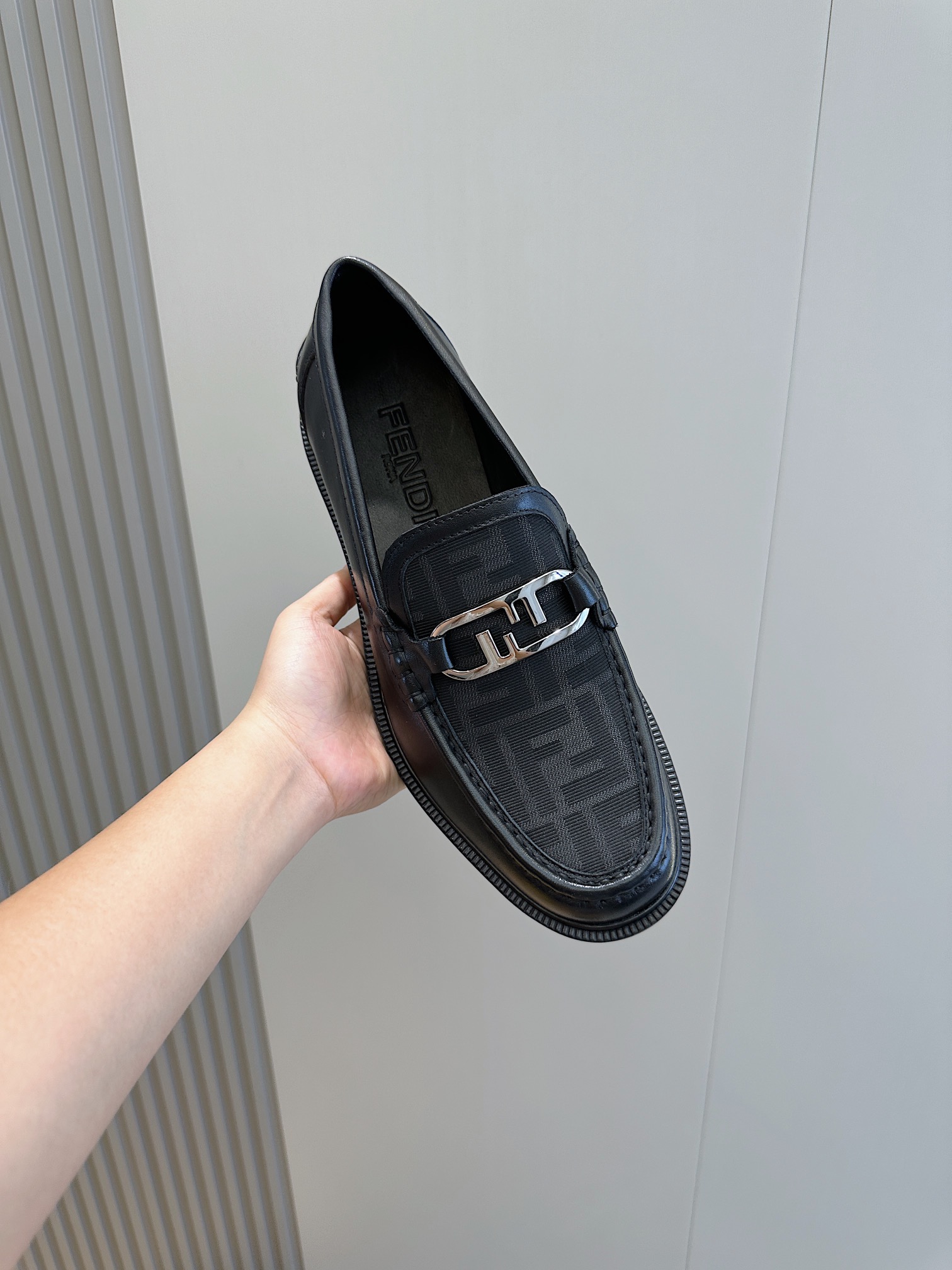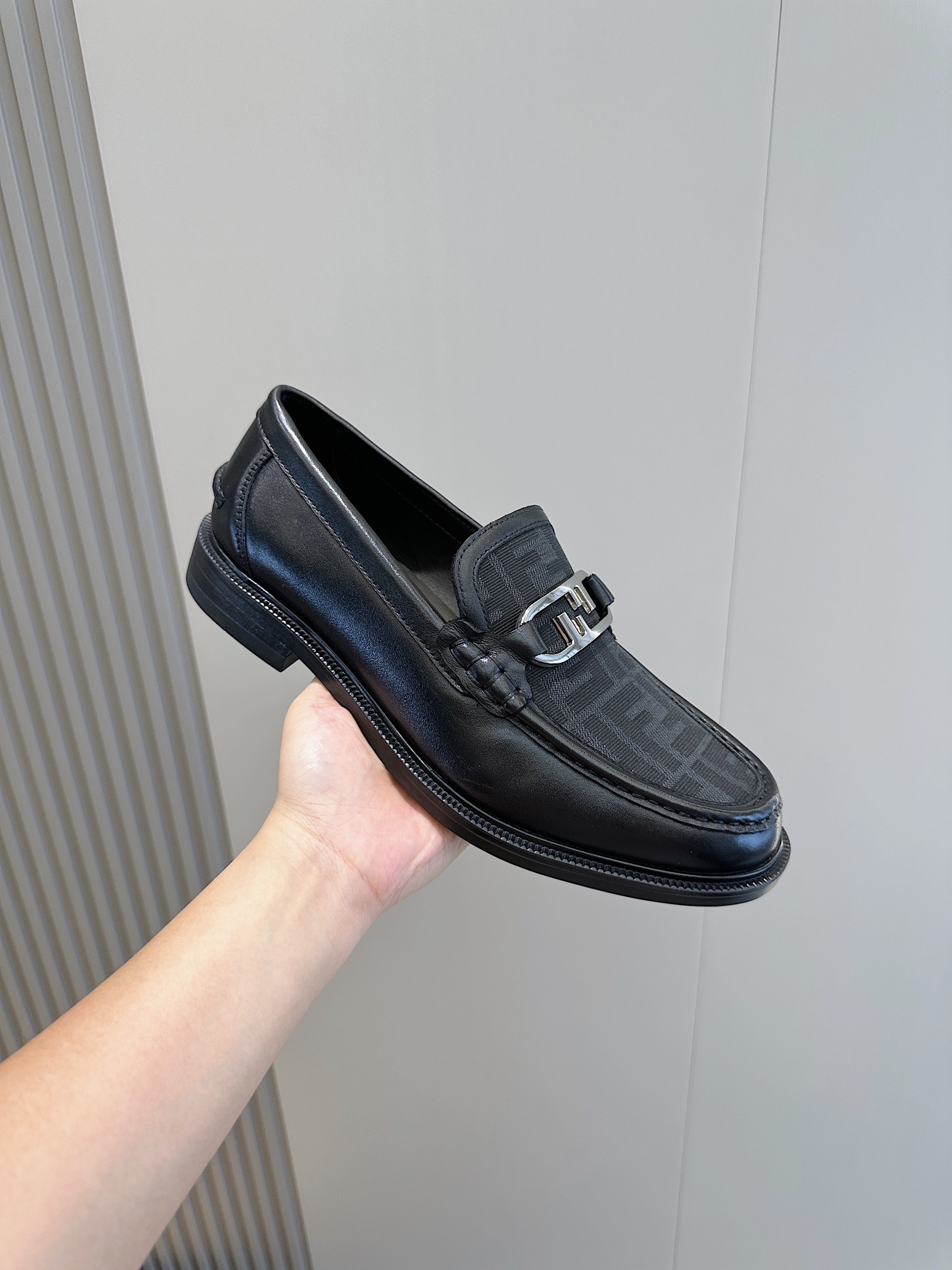 Model #4005??????Fendi black cowhide loafers for men It is decorated with FF pattern and has a silver finish metal. Imported cowhide material, cowhide lining, original factory outsole Size:39-44 (custom-made at 38.45)