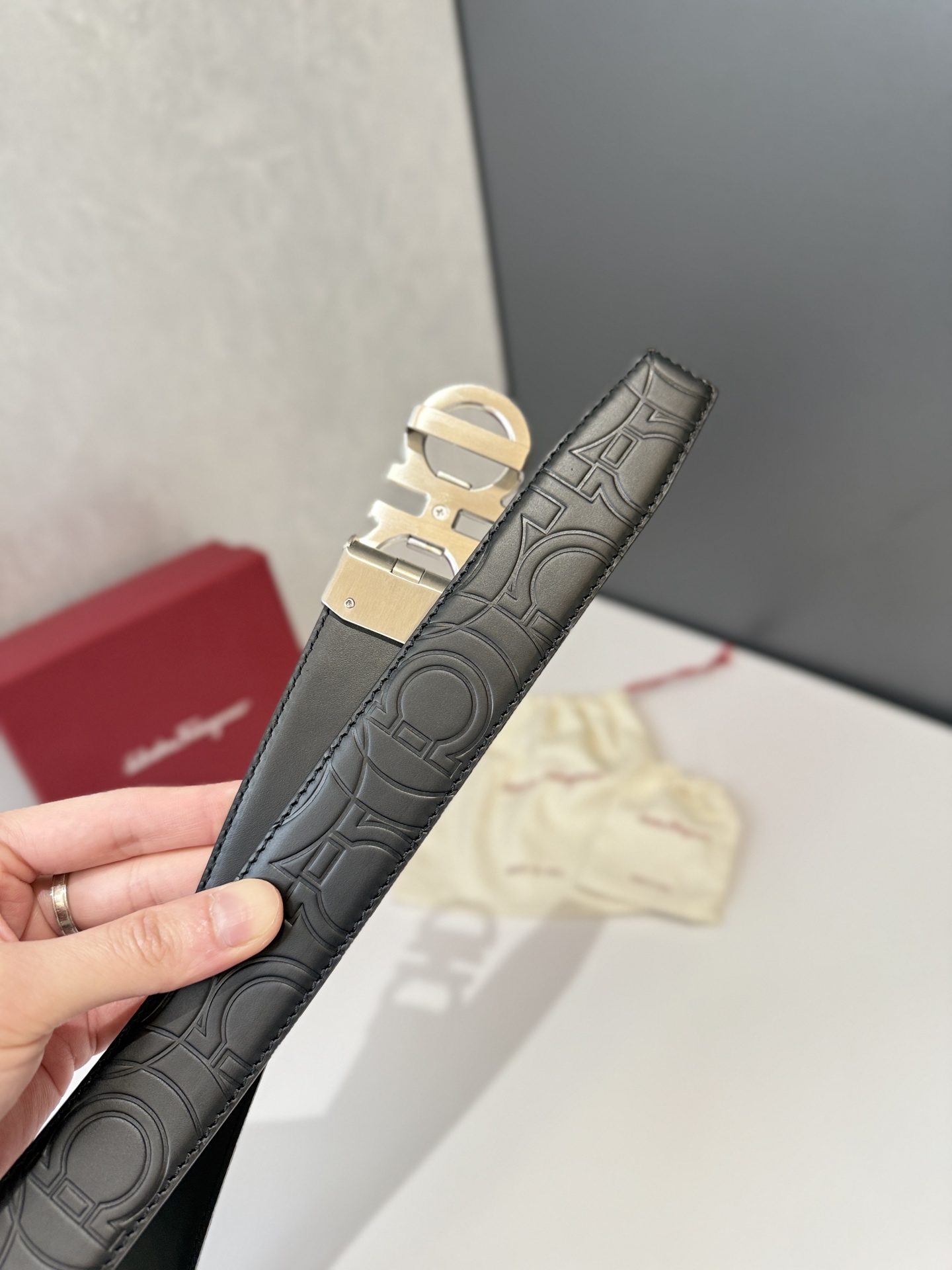 Salvatore Ferragamo is an Italian luxury brand, renowned for its high-quality leather goods, shoes and accessories. The belt of Salvatore Ferragamo is one of its classic products. It is usually made of high-quality leather, with a simple and elegant design, suitable for both business and casual occasions. The automatic smooth buckle belt is made of stainless steel hardware and features an original leather belt body