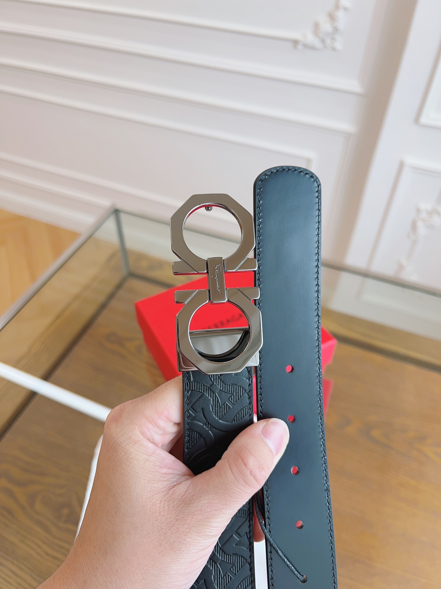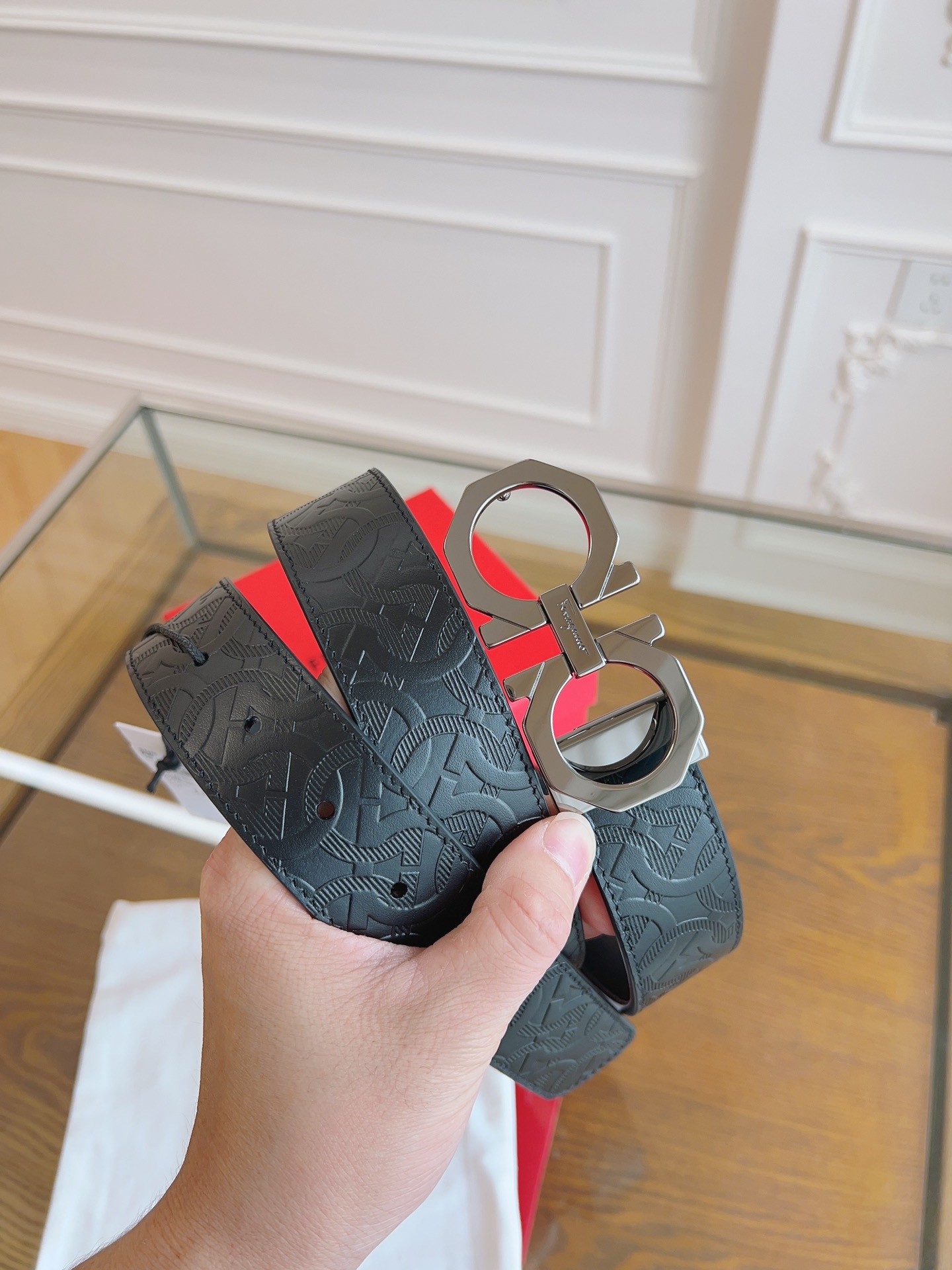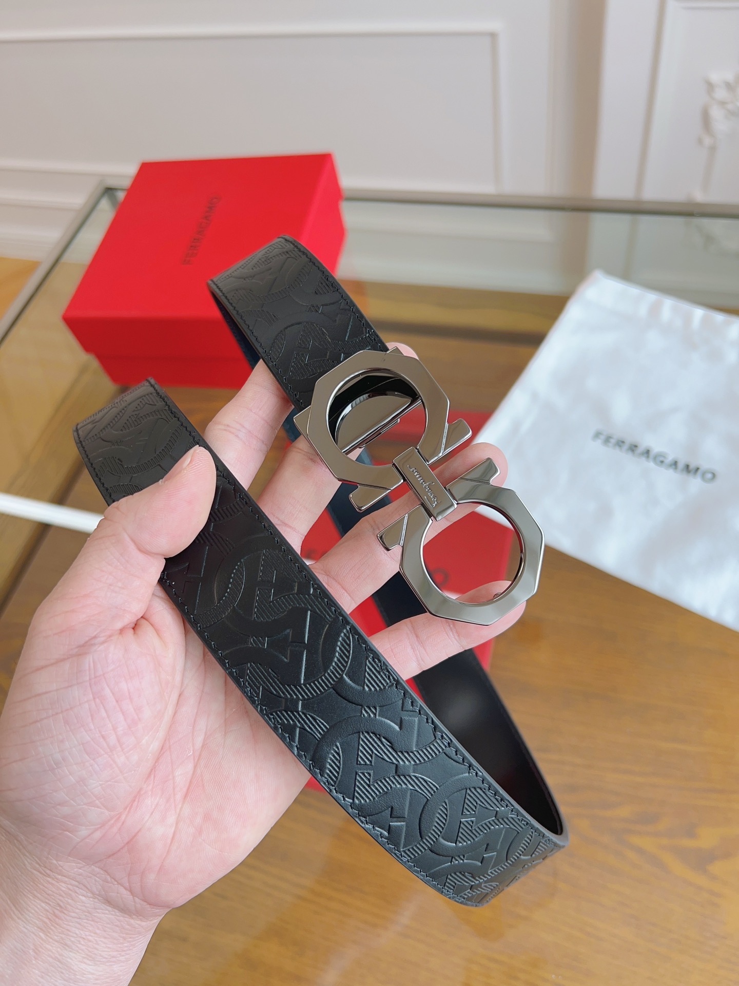 Ferragamo original single-weight belt, 3.5cm wide, double-sided original top-grain cowhide. Precision brass hardware