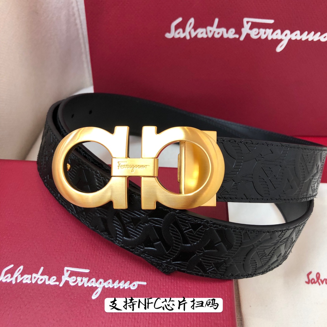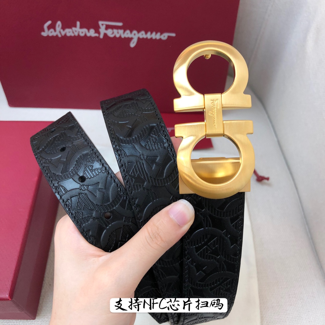 Ferragamo 3.5cm high-end custom men's belt, double-sided imported cowhide, choose and match by yourself, genuine materials, very high-quality, fashionable and classic, not lacking in style, can be cut by yourself!