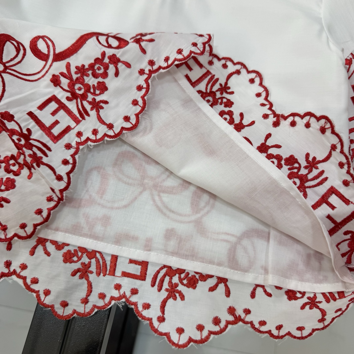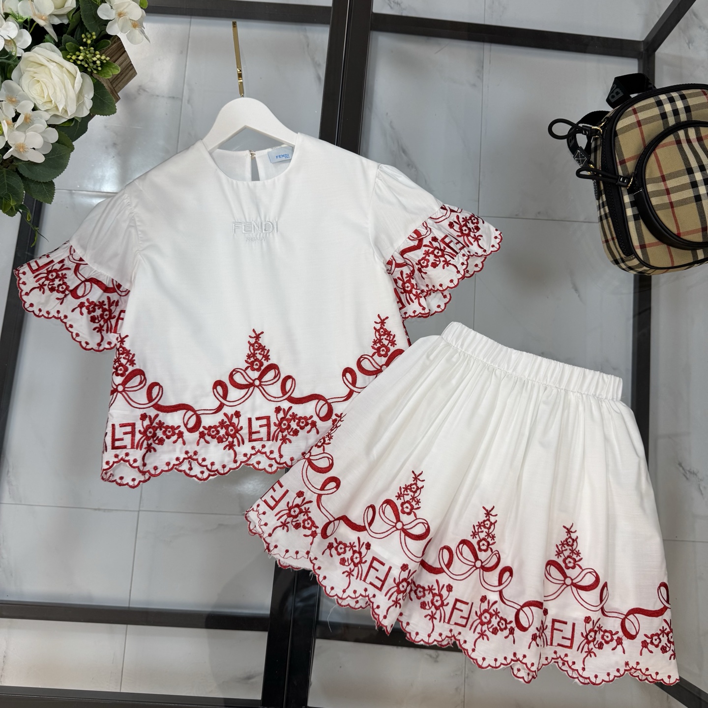 Fendi, high-end children's clothes, girls dress, double layer design, outer woven cotton, cotton, inner outer skirt FF embroidery ?? wine red color, body comfortable, good-looking, code number: 100/110/120/130/140/150 cm