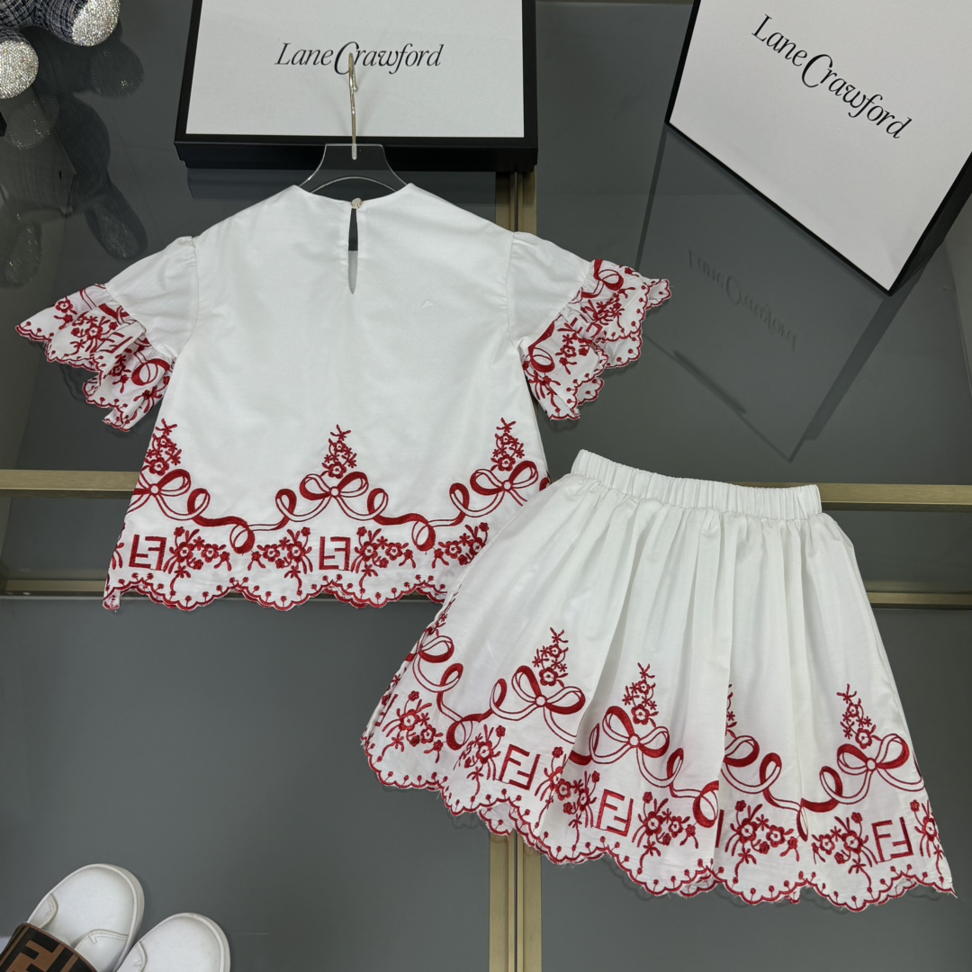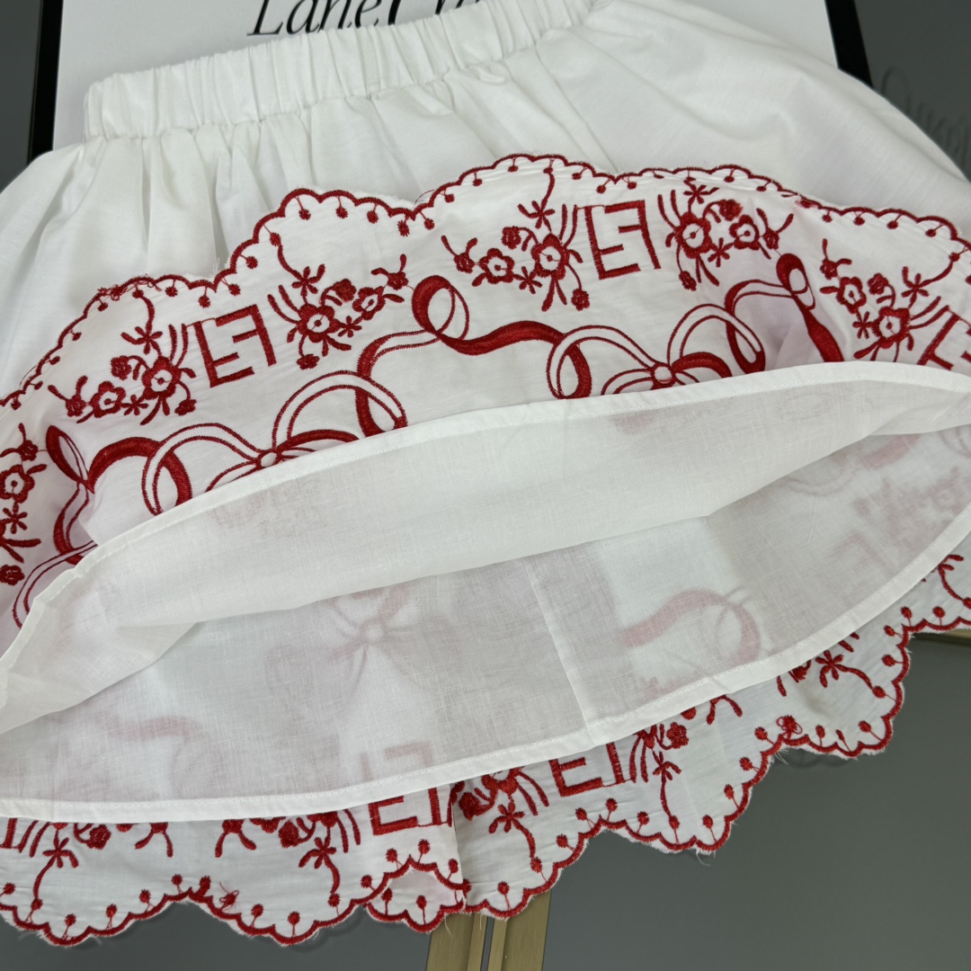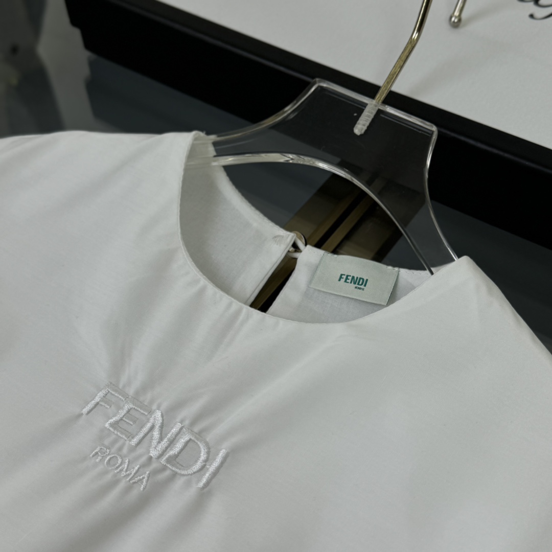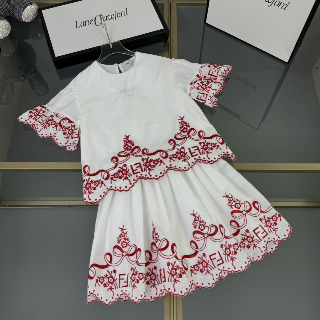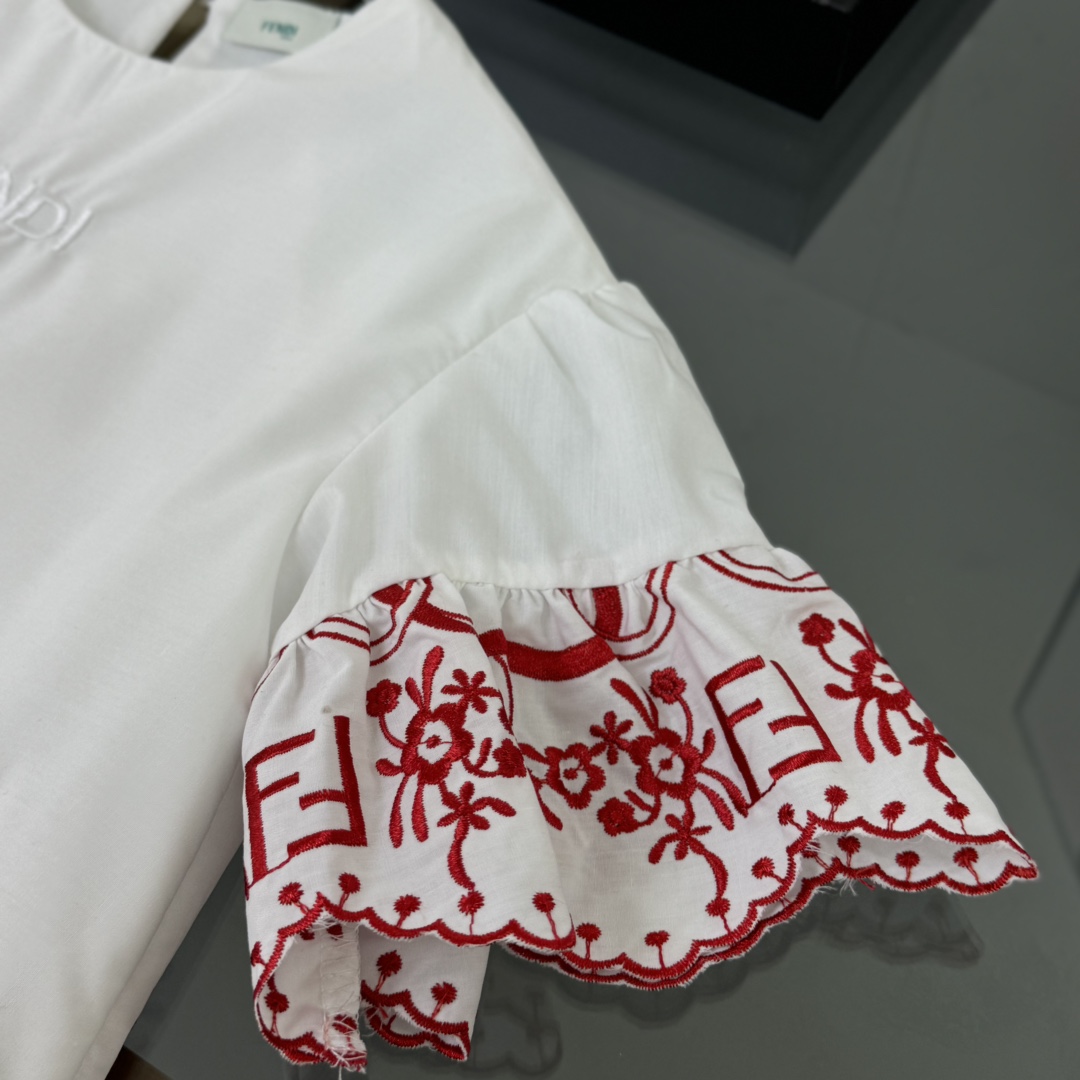 Fendi, high-end children's clothes, girls dress, double layer design, outer woven cotton, cotton, inner outer skirt FF embroidery ?? wine red color, body comfortable, good-looking, code number: 100/110/120/130/140/150 cm