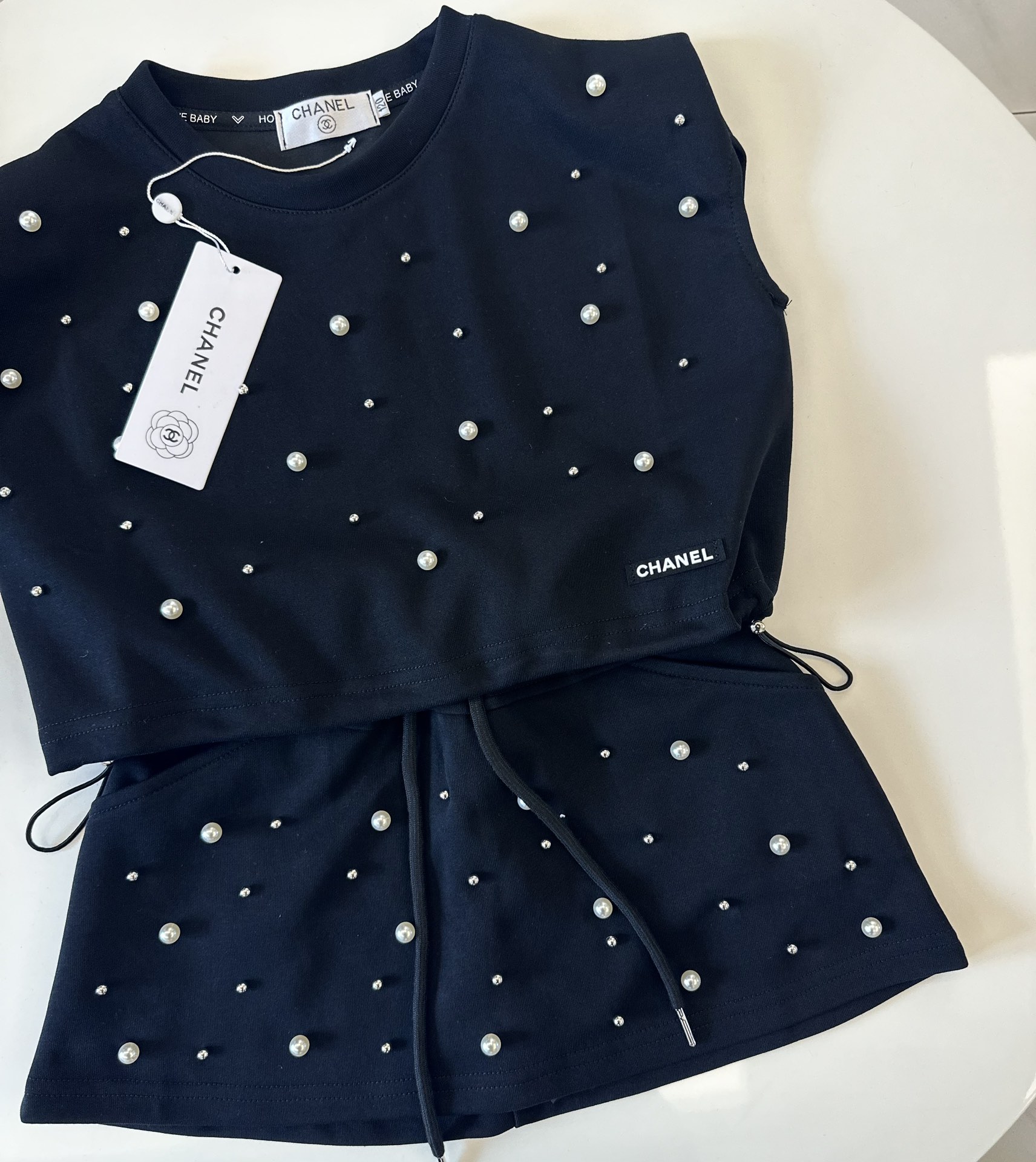 Reserve for 5 days! Chanel, high-end children's clothes, the girl's skirt, the manual nail bead, shoulder pads coat + short skirt, with leggings, upper body comfortable, good-looking, code number: 90/100/110/120/130/140/150/160 cm