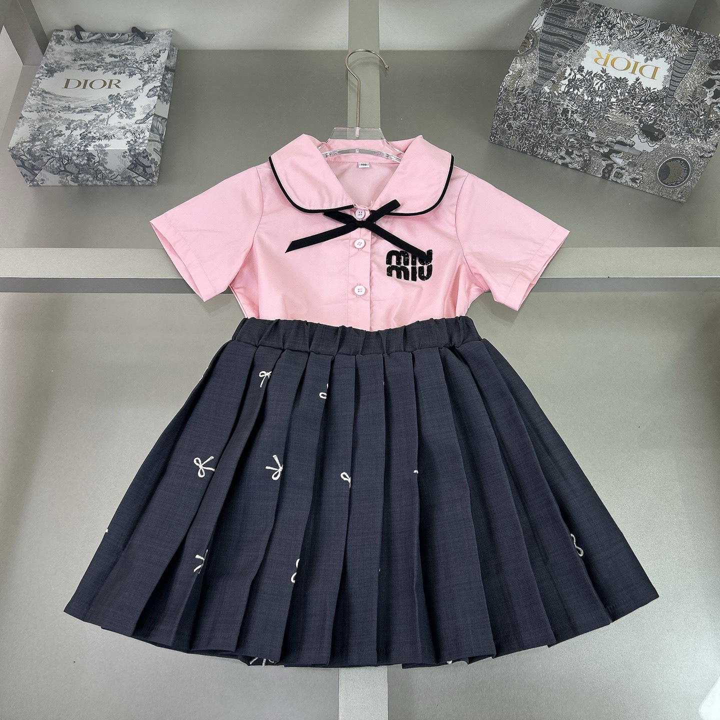Miumiu miu miu, high-end children's wear, girl's skirt, dress, 100% pure cotton fabrics, letters printing design, upper body comfortable, good-looking, upper body comfortable, good-looking, code number: 110/120/130/140/150/160 cm