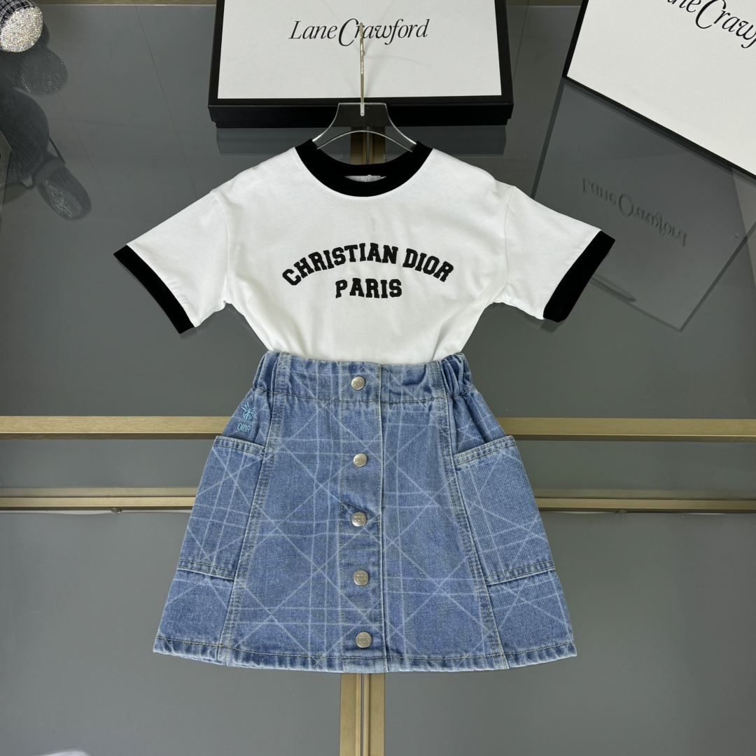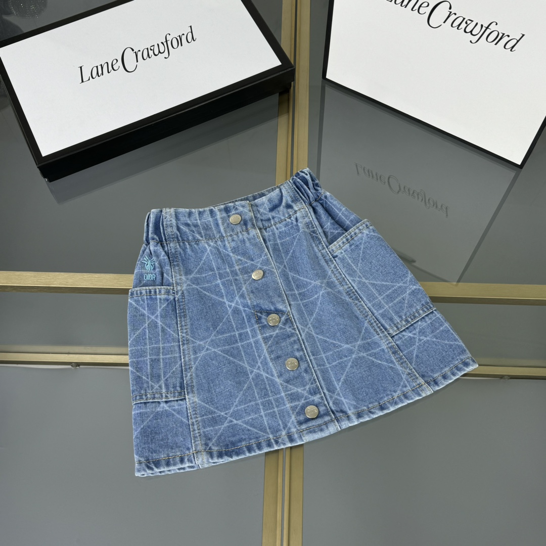 Dior Dior, high-end children's clothes, the girl's skirt, the classic short letters embroidery ?? T ? cowboy short skirt, 230 g T wash water cowboy cotton short skirt with inner layer in the cotton cloth, upper body comfortable, good-looking, code number: 100/110/120/130/140/150 cm
