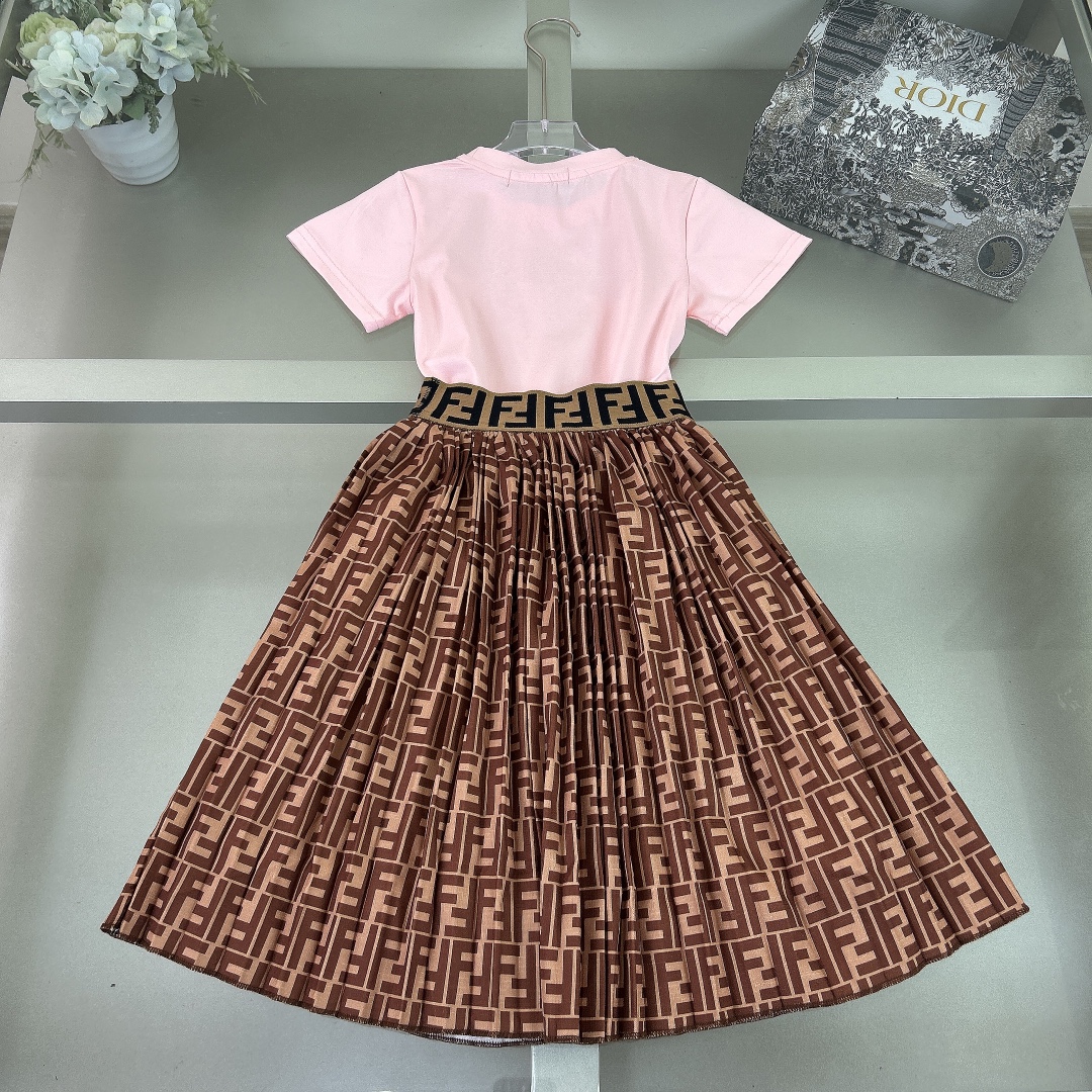 Fendi, high-end children's clothes, girls dress, girls pure cotton fabrics, upper body comfortable, good-looking, code number: 90/100/110/120/130/140/150 cm