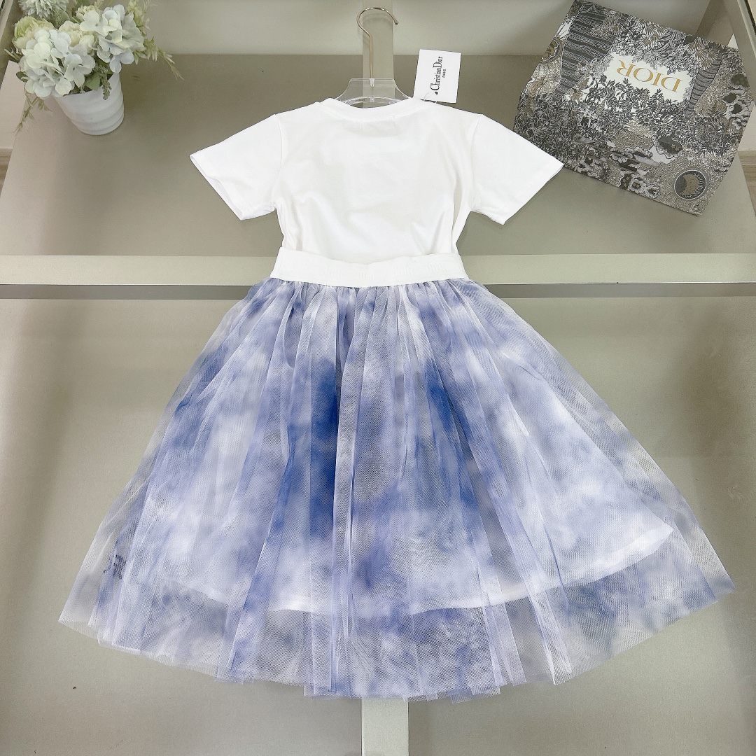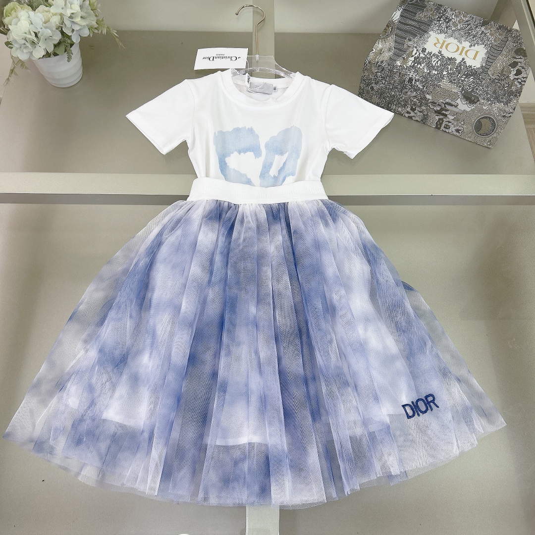 Dior Dior, high-end children's clothes, girls dress, custom veil + cotton print, make white gauze dyeing fabrics, heavy embroidery bee logo design, three layers of net yarn design, cotton lining, upper body comfortable, good-looking, code number: 90/100/110/120/130/140/150 cm
