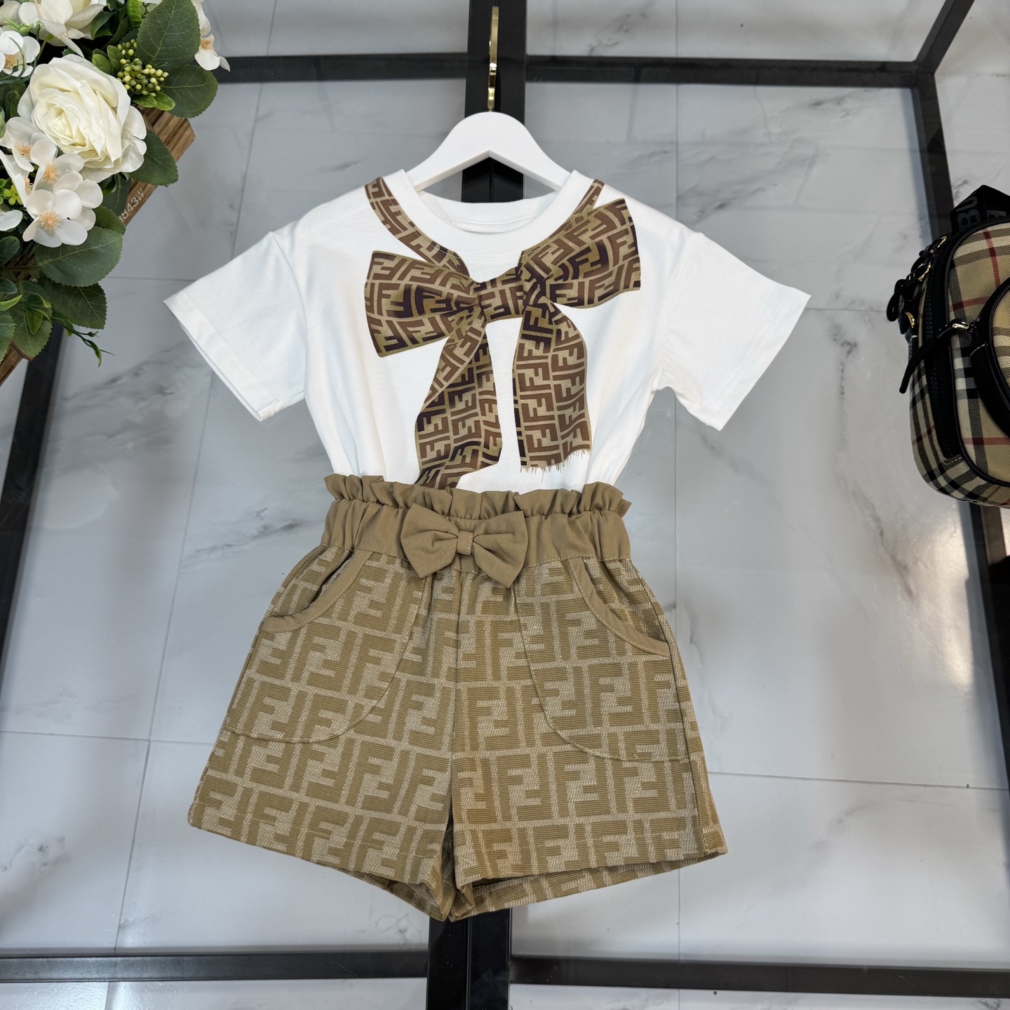 Fendi, high-end children's clothes, girls suit, pure cotton fabrics, upper body comfortable, good-looking, code number: 100/110/120/130/140/150 cm