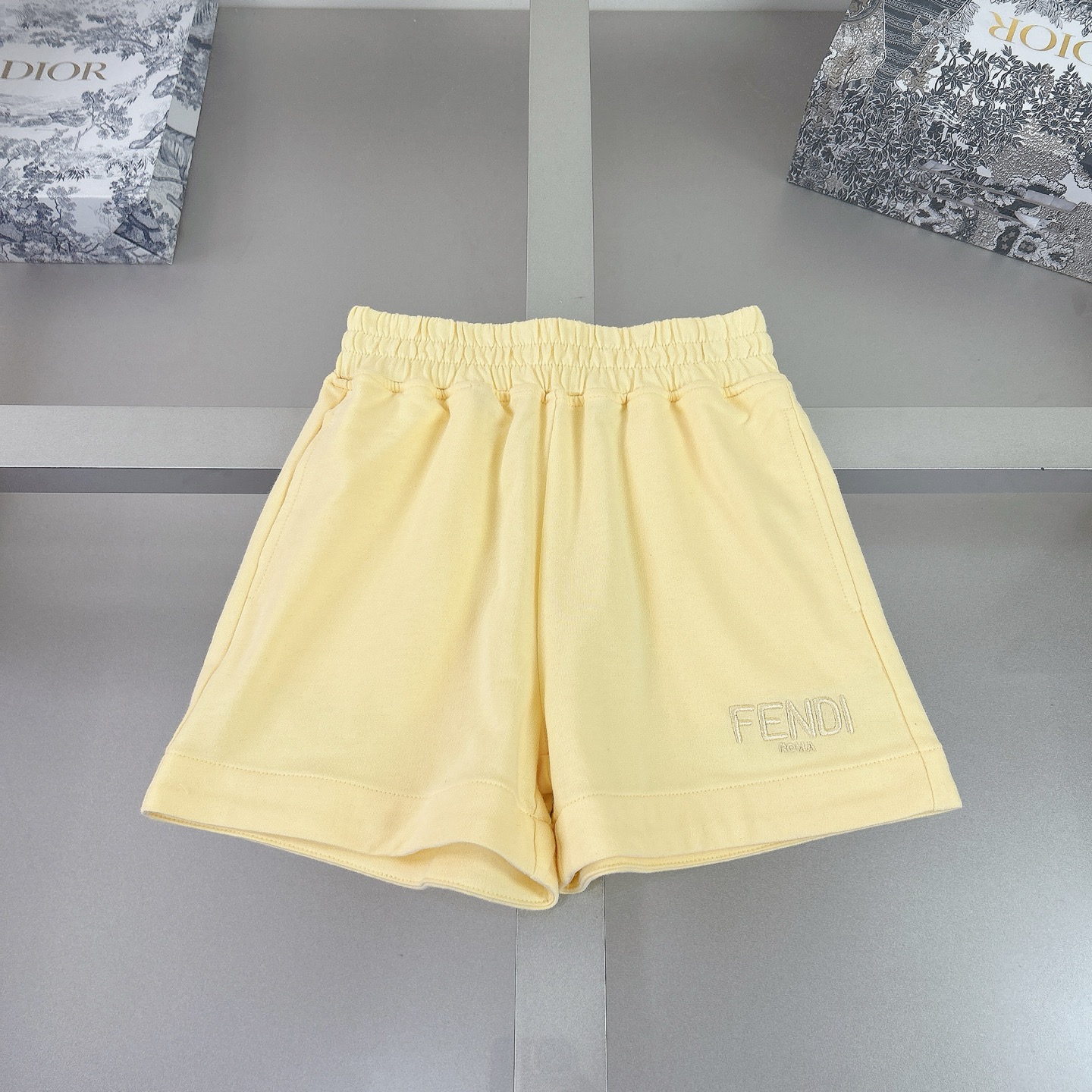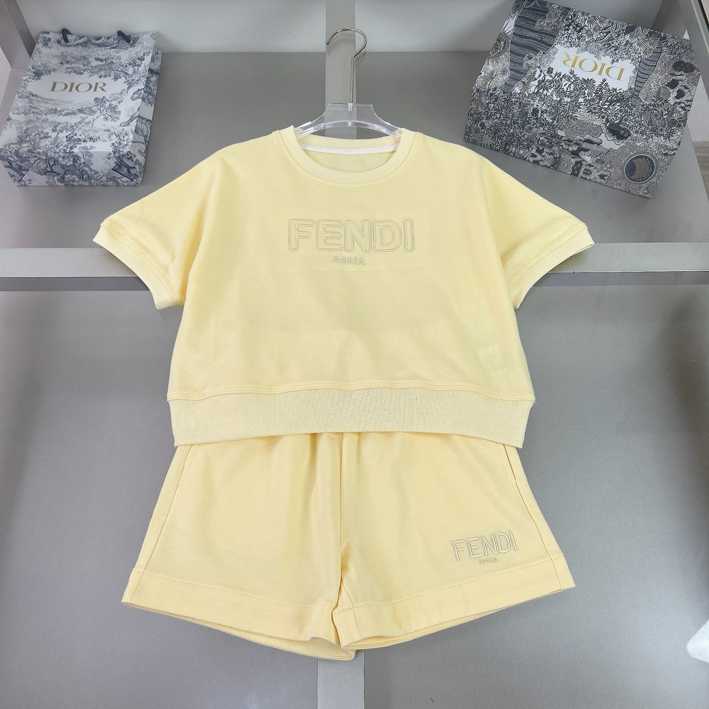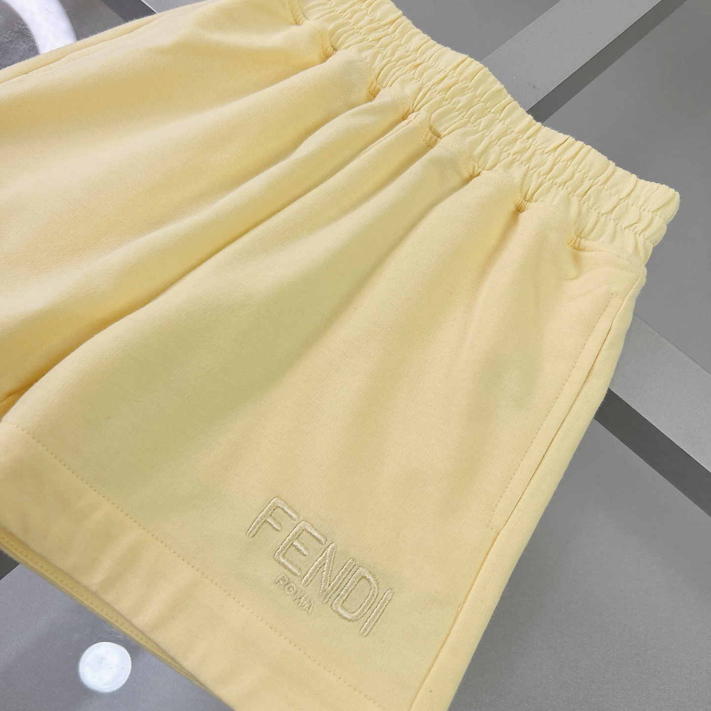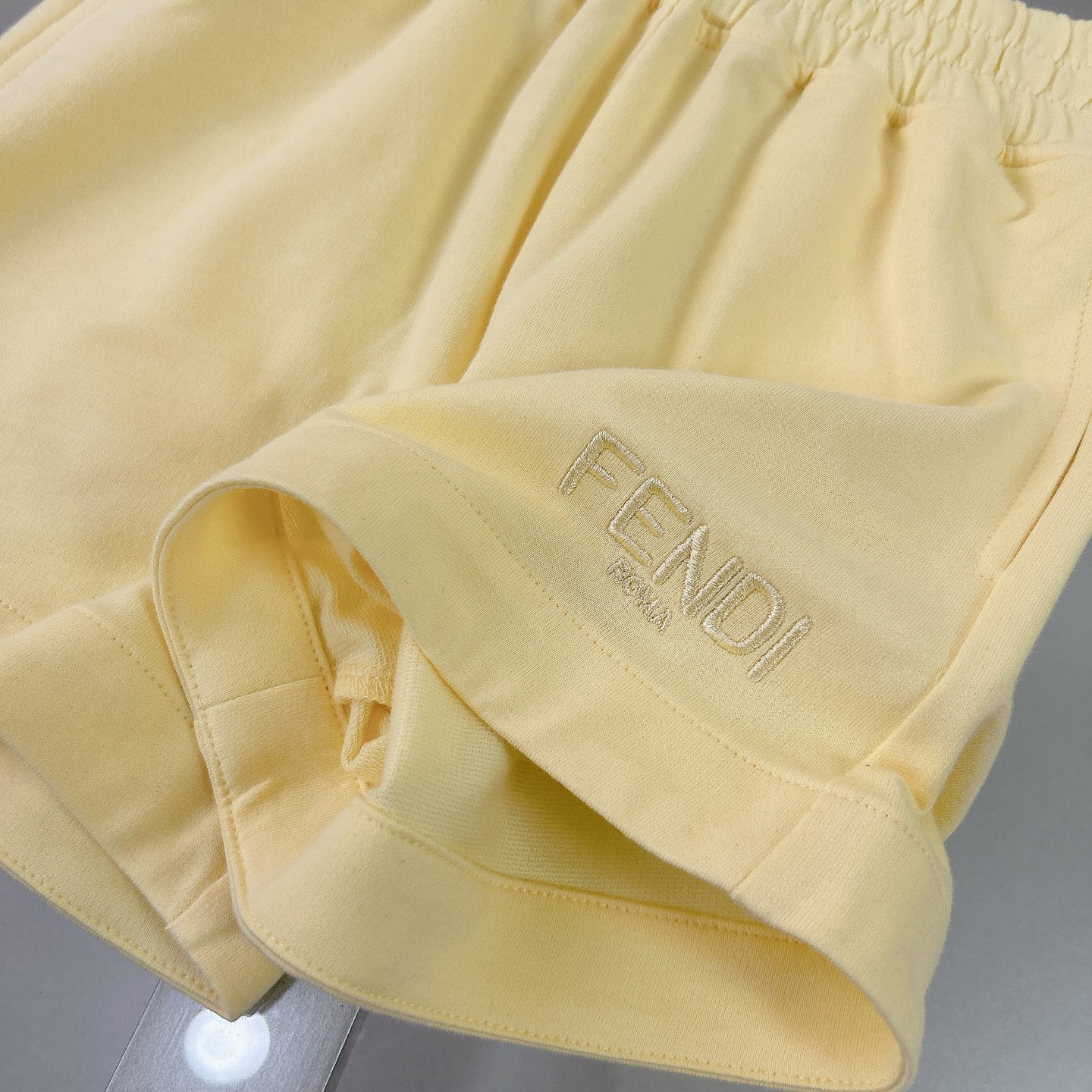 Fendi, high-end children's clothing, girls' suits, pure cotton loop hoodie fabric, F-family exclusive letter embroidery on the chest Shorts have letters on embroidery, body comfortable, good-looking, code number: 110/120/130/140/150/160 cm