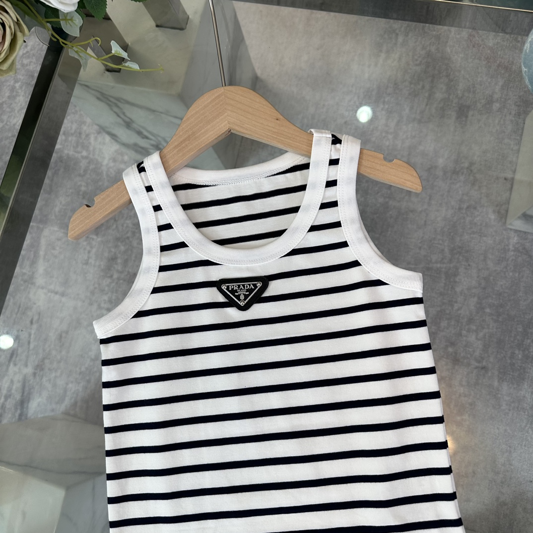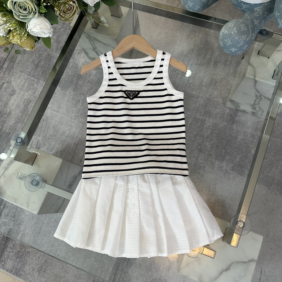 Prada, high-end children's wear, the girl's skirt, the arc DE triomphe ice silk stripe vest, imported ice silk yarn, pleated skirt collocation, upper body comfortable, good-looking, code number: 100/110/120/130/140/150/160 cm