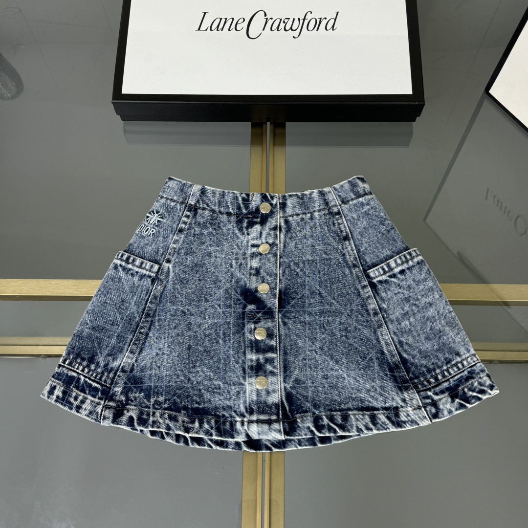 Dior Dior, high-end children's clothes, the girl's skirt, the classic short letters embroidery ?? T ? cowboy short skirt, 230 g T wash water cowboy cotton short skirt with inner layer in the cotton cloth, upper body comfortable, good-looking, code number: 100/110/120/130/140/150 cm