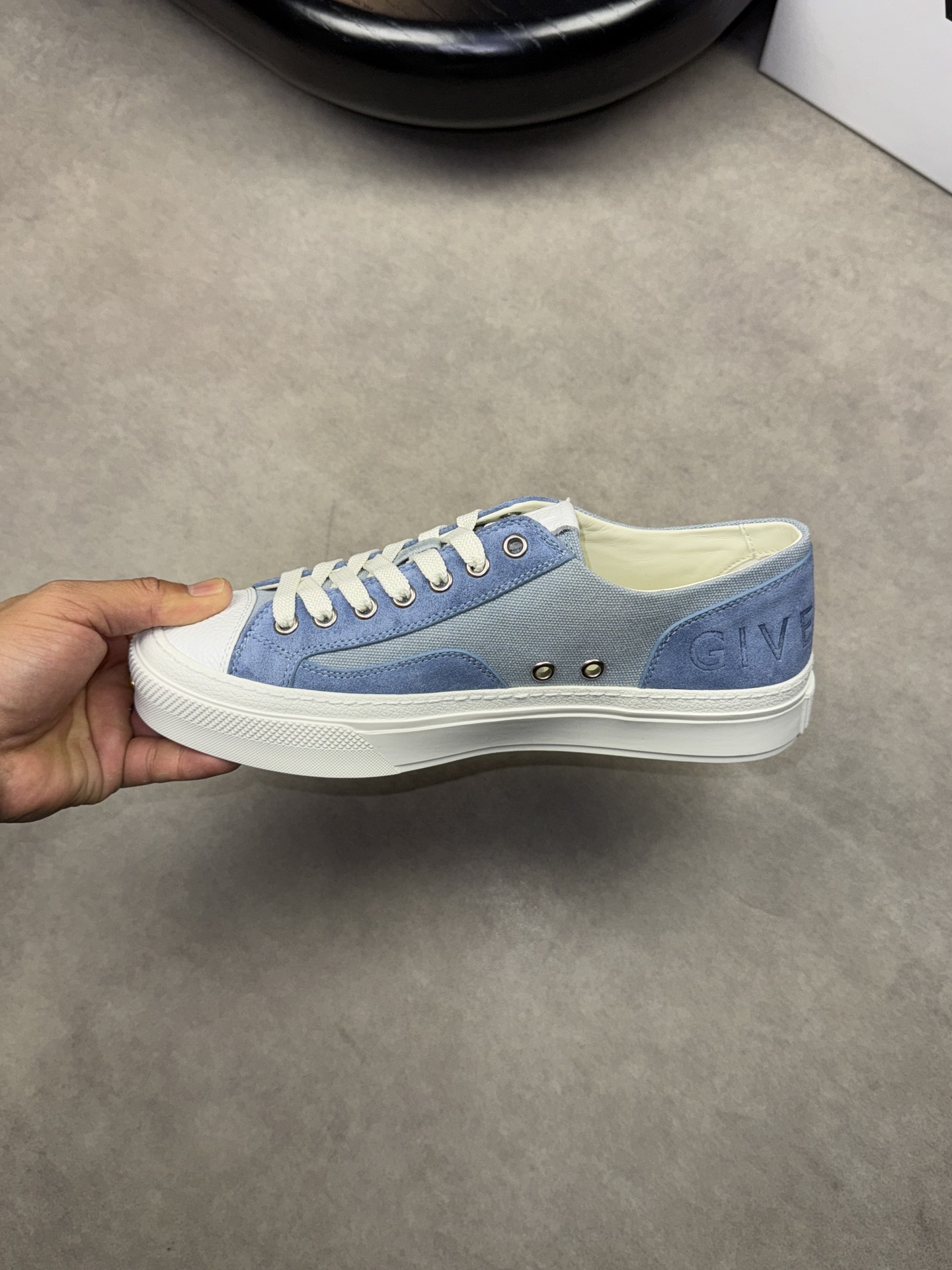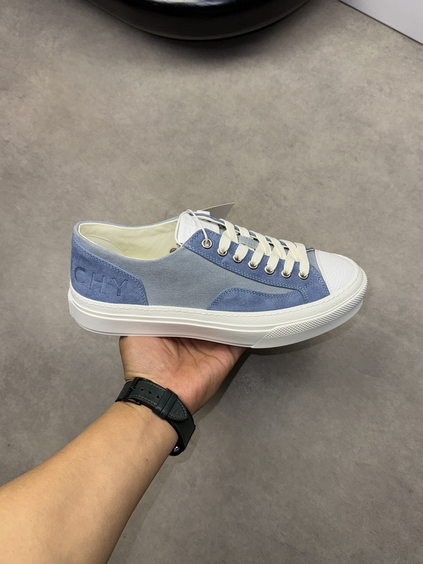 GIVENCHY #4002?????? - Premium quality original single ?????? "Shoe upper" ?? Fleece calfskin, brand denim canvas, shoe height weekly brand logo - Inside: Water-dyed cowhide - Outsole: Ultra-light TPR