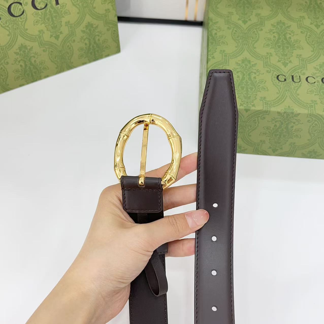 Gucci women's new bamboo buckle with double-sided cowhide and copper buckle, 3.0 cm wide Yards: 75 80 85 90 95 100 105 euros