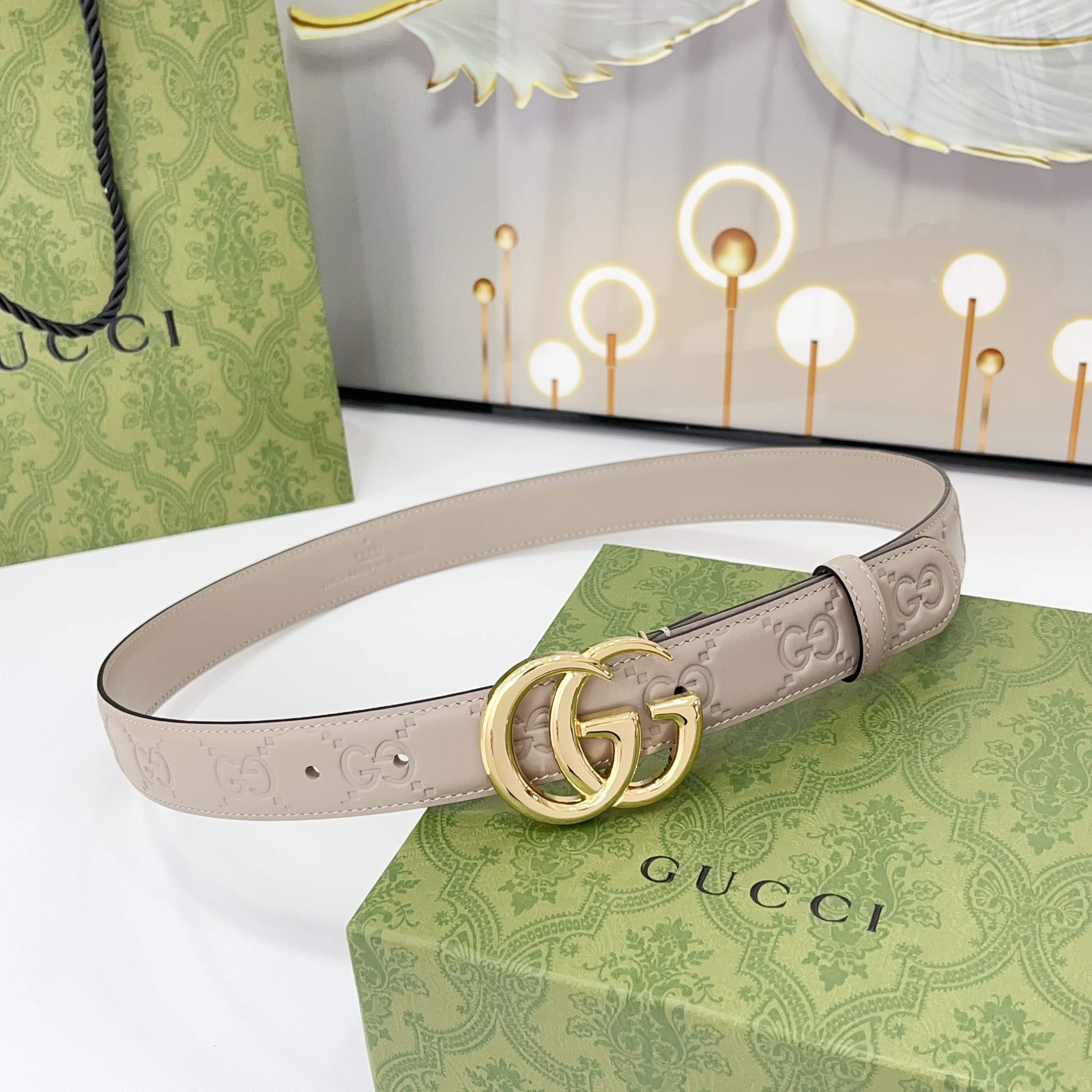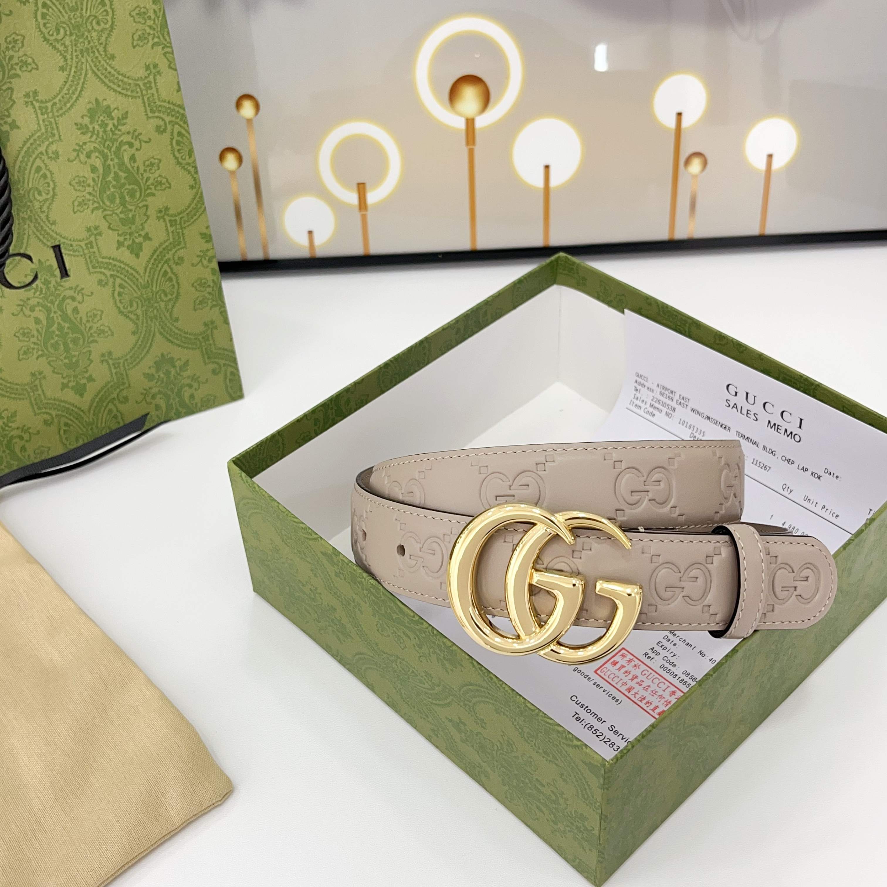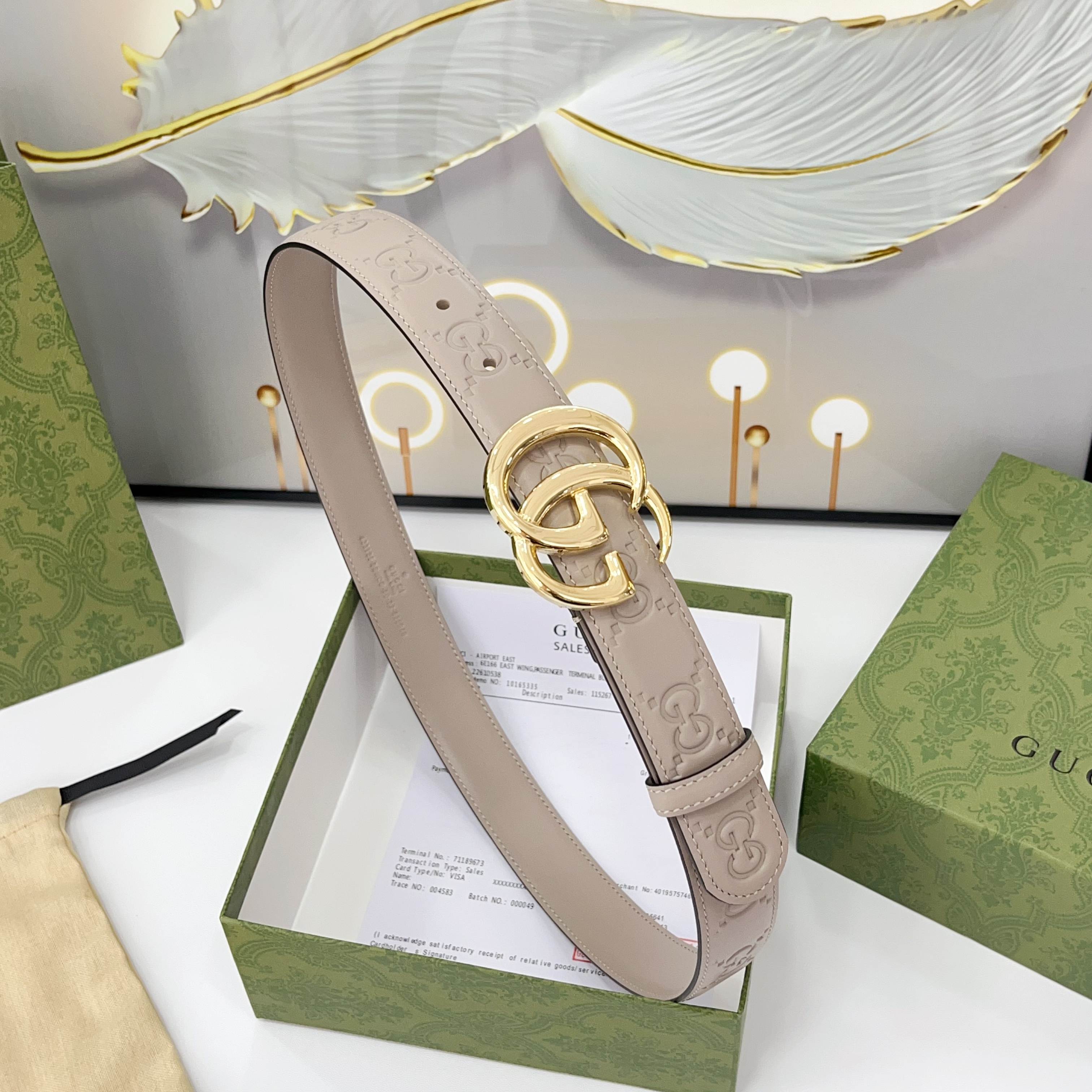 The Gucci belt is 3.0cm wide Double-sided top-grain calfskin made from original factory leather, with a classic embossed surface and copper buckles, is fashionable and versatile Code number: 75 80 85 90 95 100 105 110