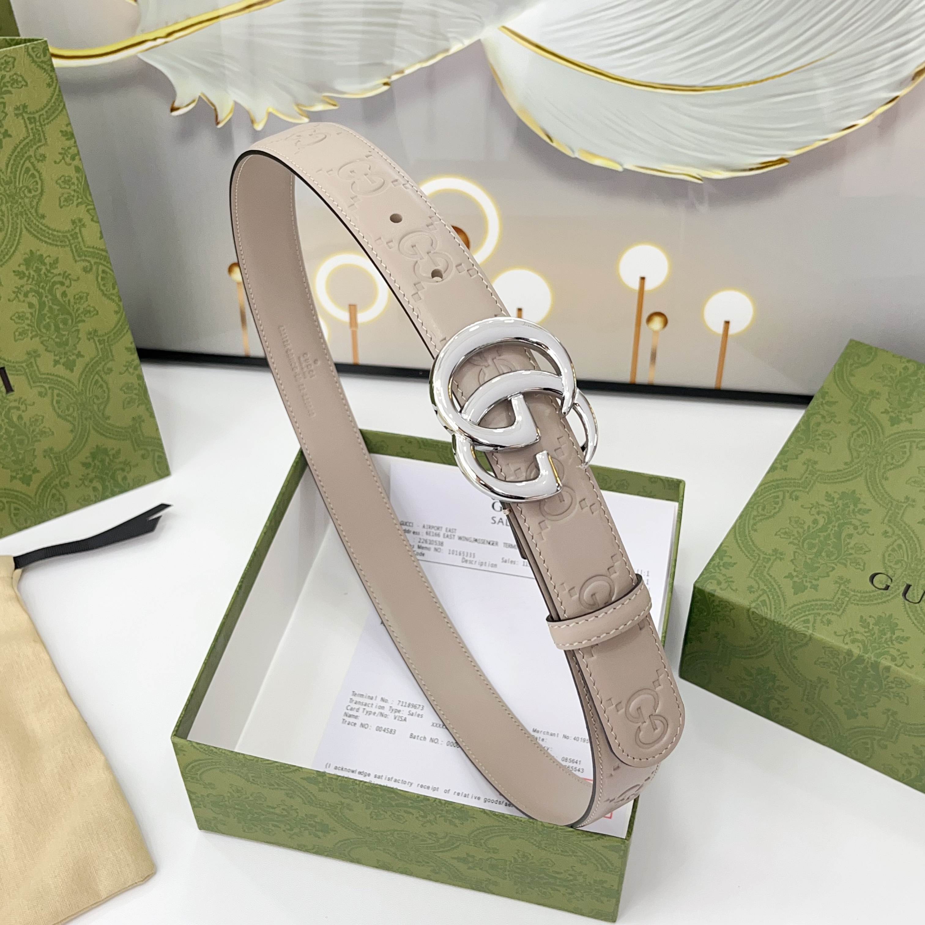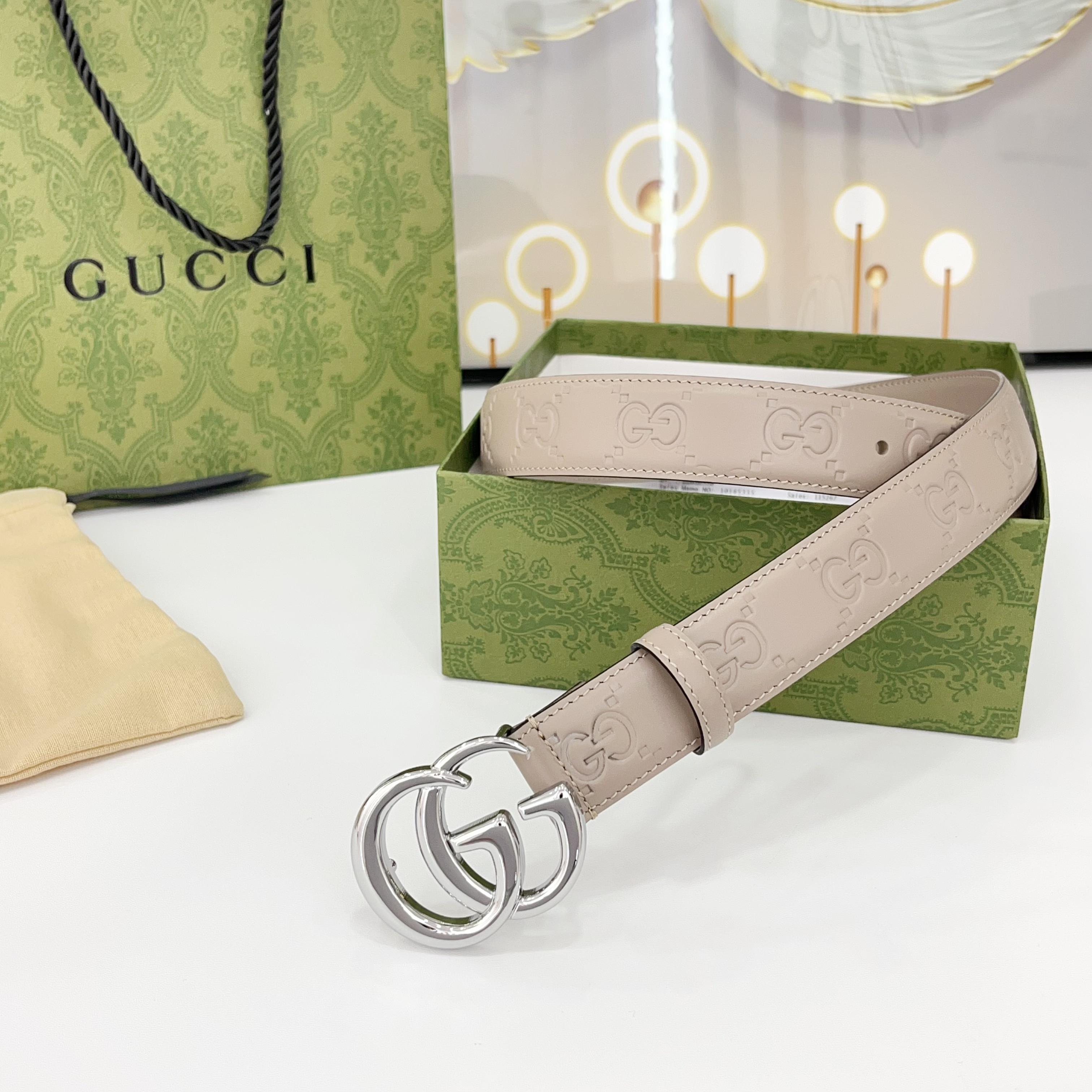 The Gucci belt is 3.0cm wide Double-sided top-grain calfskin made from original factory leather, with a classic embossed surface and copper buckles, is fashionable and versatile Code number: 75 80 85 90 95 100 105 110