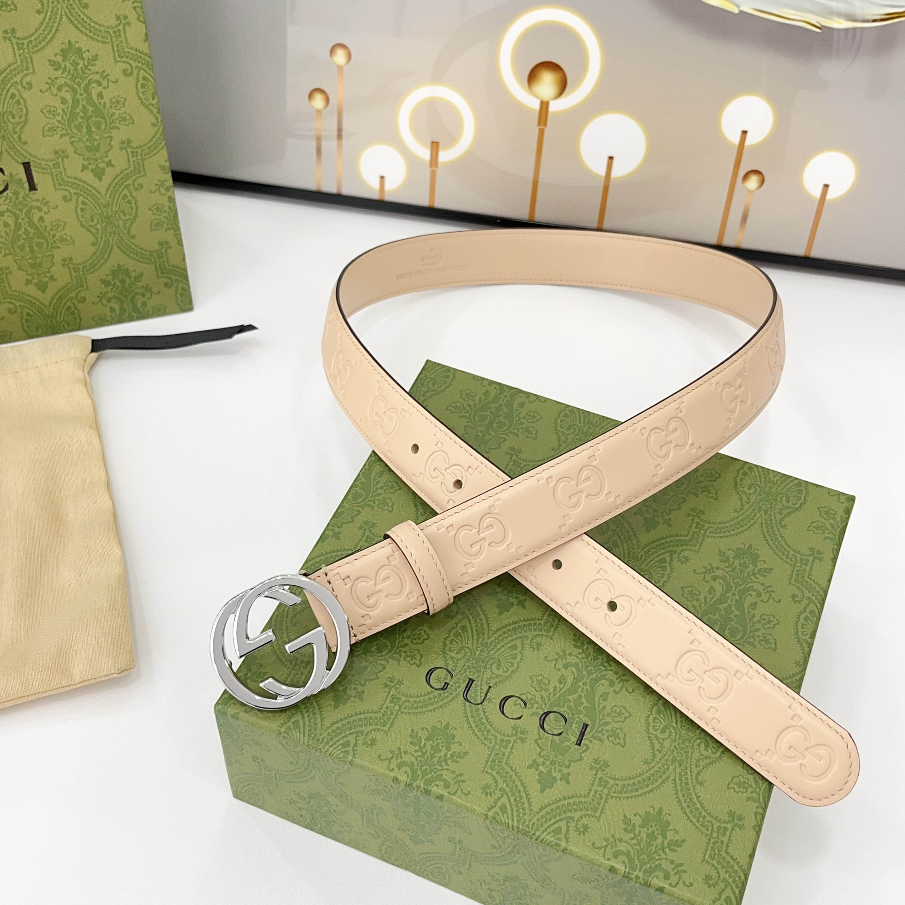 The Gucci belt is 3.0cm wide Double-sided top-grain calfskin made from original factory leather, with a classic embossed surface and copper buckles, is fashionable and versatile Code number: 75 80 85 90 95 100 105 110