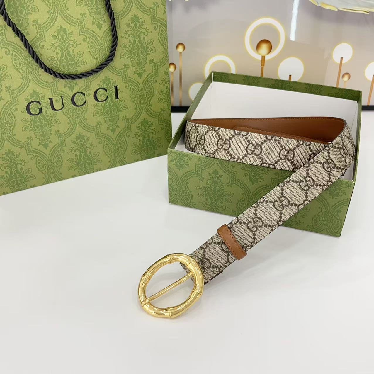 Gucci women's new bamboo buckle with double-sided cowhide and copper buckle, 3.0 cm wide Yards: 75 80 85 90 95 100 105 euros