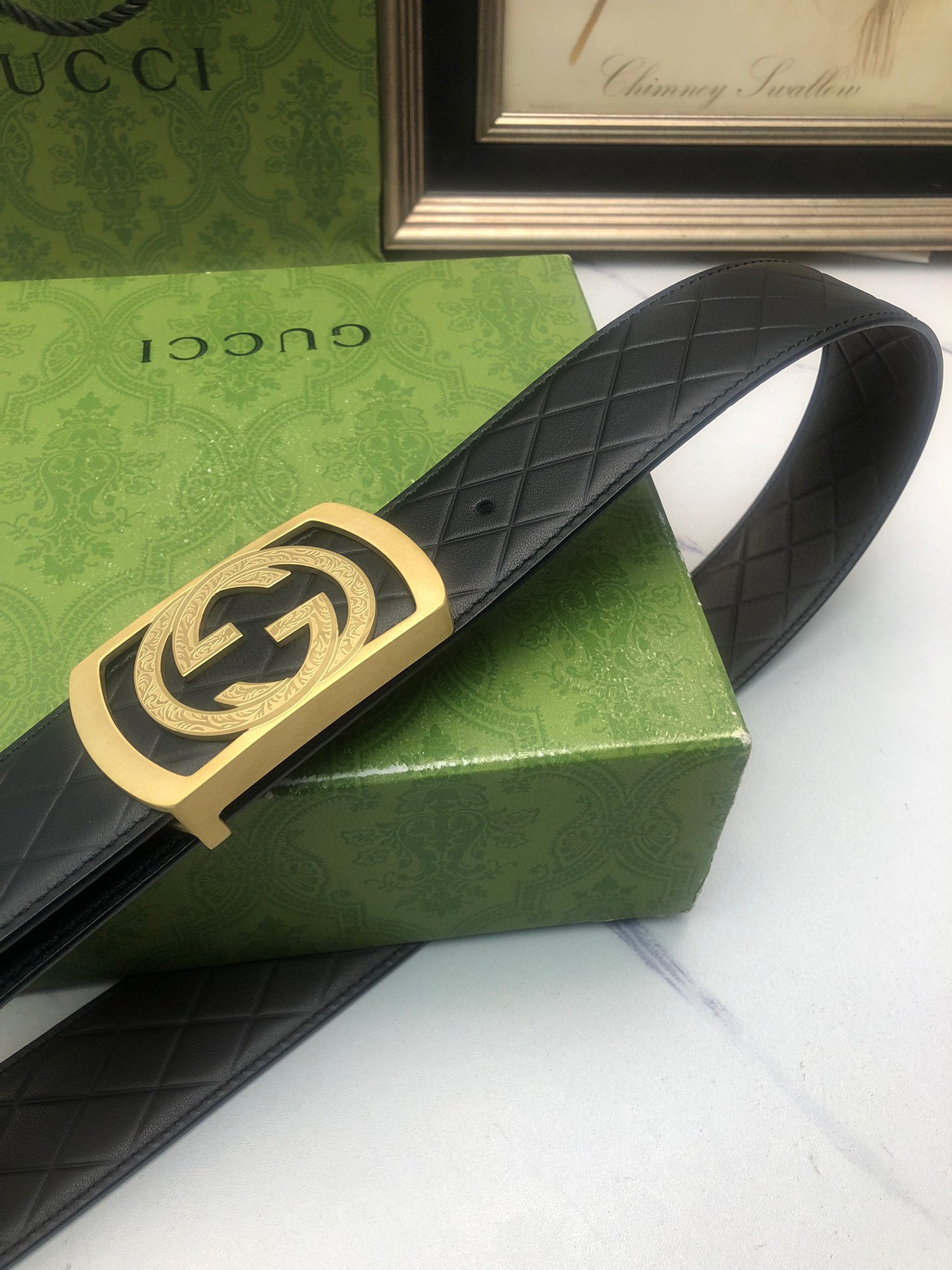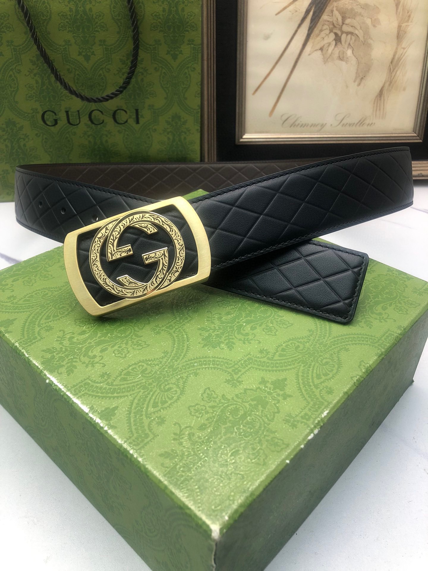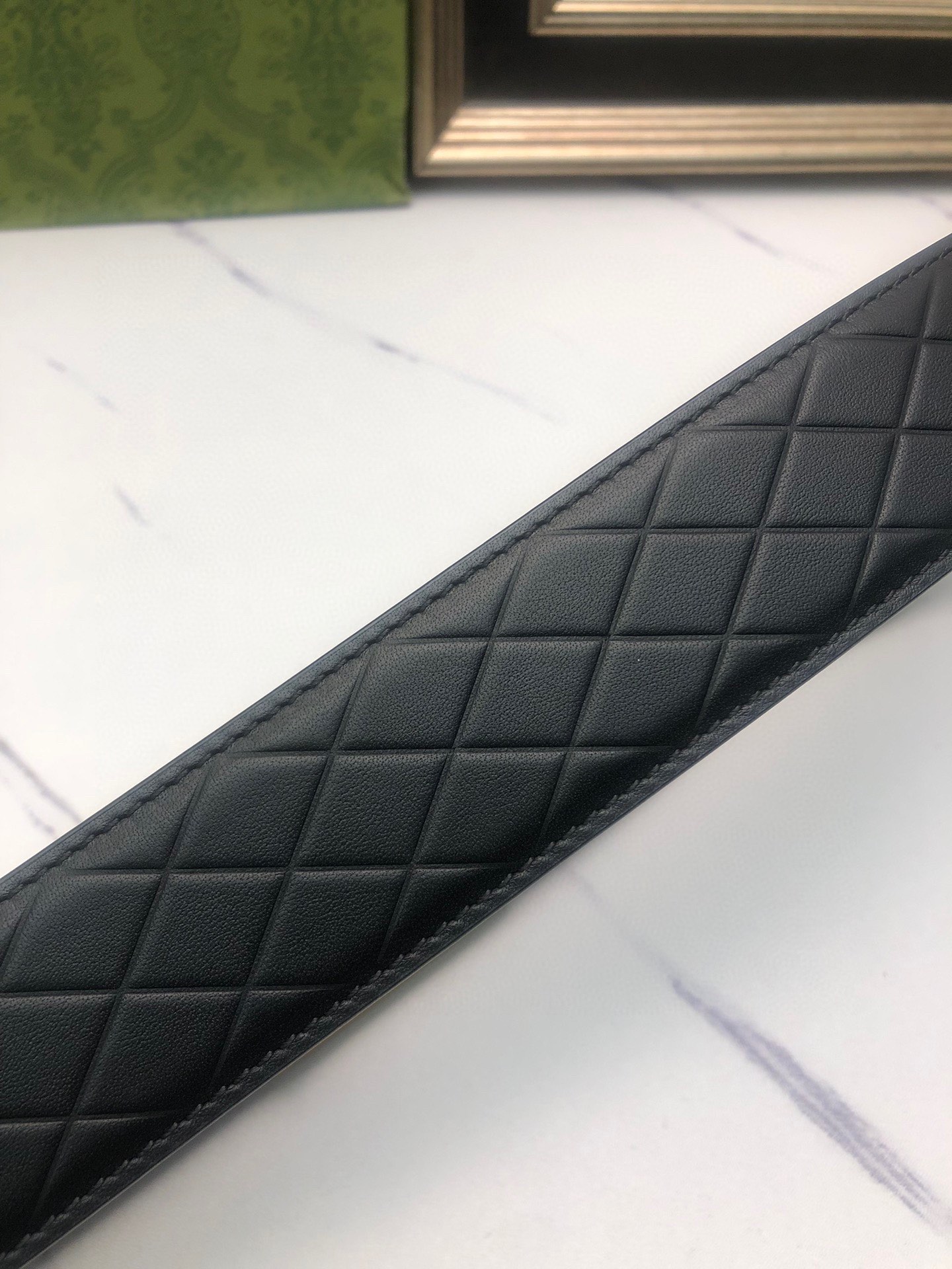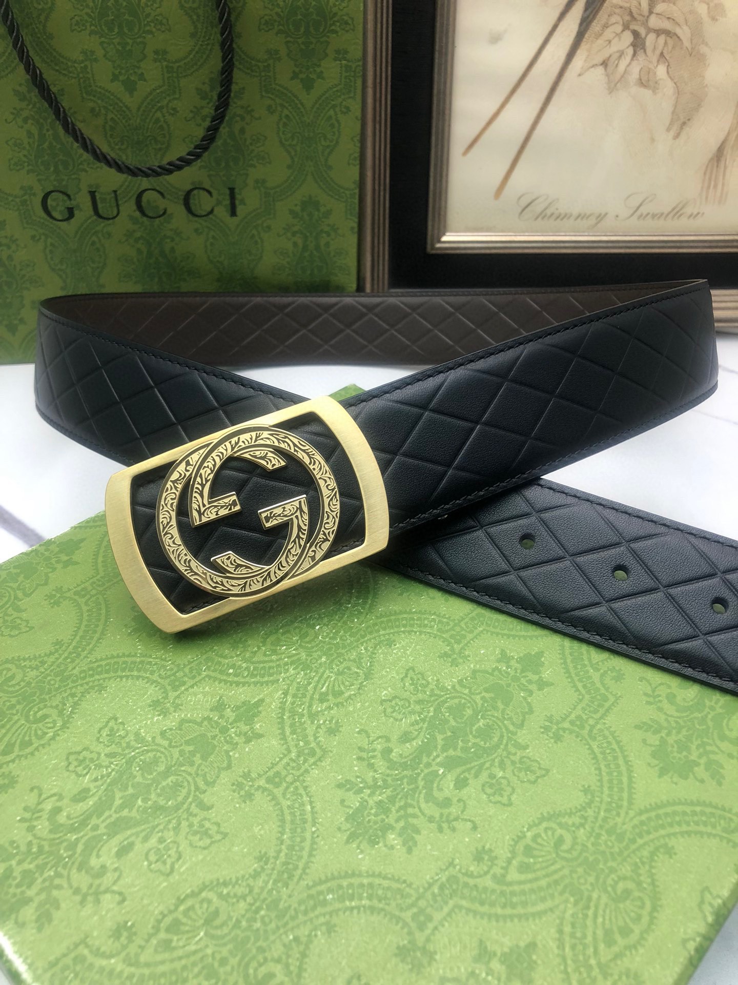 Gucci: Original single-layer calfskin with double-sided embossed patterns, black and brown in one piece, suitable for both sides, decorated with the original single buckle of the logo. The counter width is 4.0