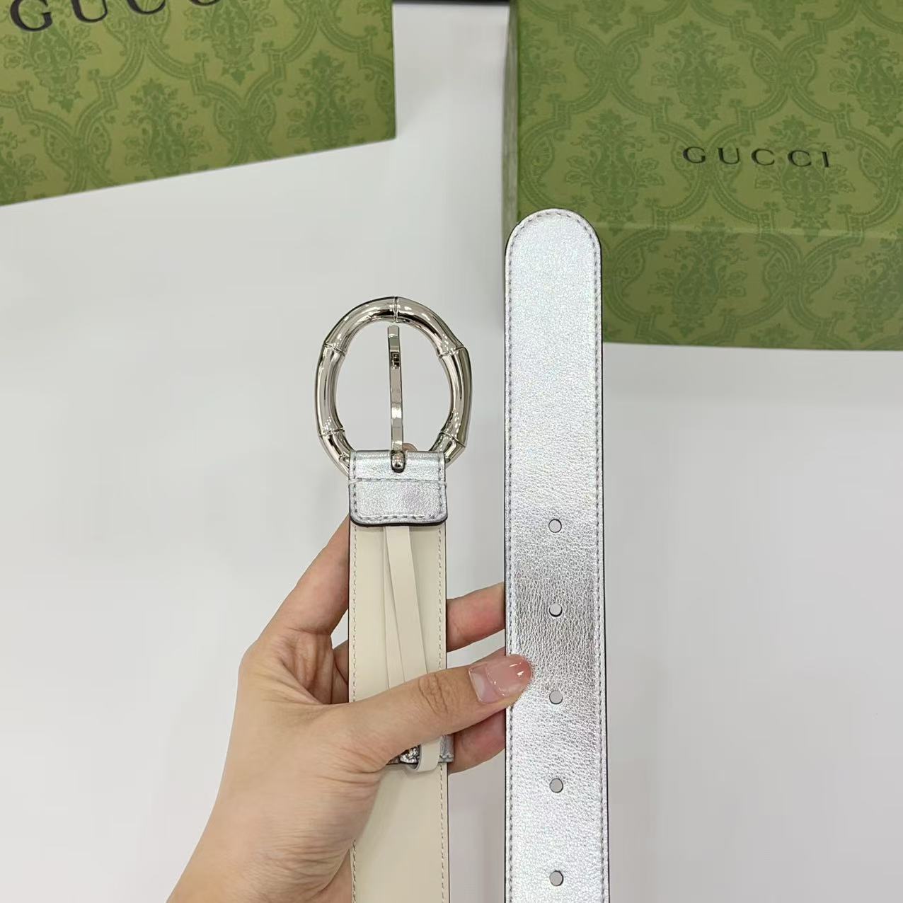 Gucci women's new bamboo buckle with double-sided cowhide and copper buckle, 3.0 cm wide Yards: 75 80 85 90 95 100 105 euros