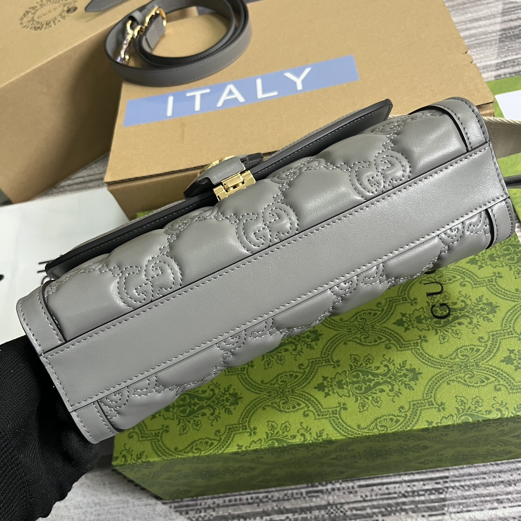 A masterpiece of the Gu family! Original leather ??, model 724529, with full green packaging at the counter, Matelasse leather is presented in the brand 's creative director' s cutting-edge designs every season through a novel and distinctive style. The signature material with a twice softer texture, combined with the richly textured geometric patterns, is reinterpreted as a fashion masterpiece in Gucci's new fashion collection. This design interprets the 1990s logo trend that frequently appears in the brand's latest collection with a modern approach. This small black shoulder bag comes with two interchangeable shoulder straps. Dimensions: 25.5*16*8.5cm. Color: grey, G, full leather ??