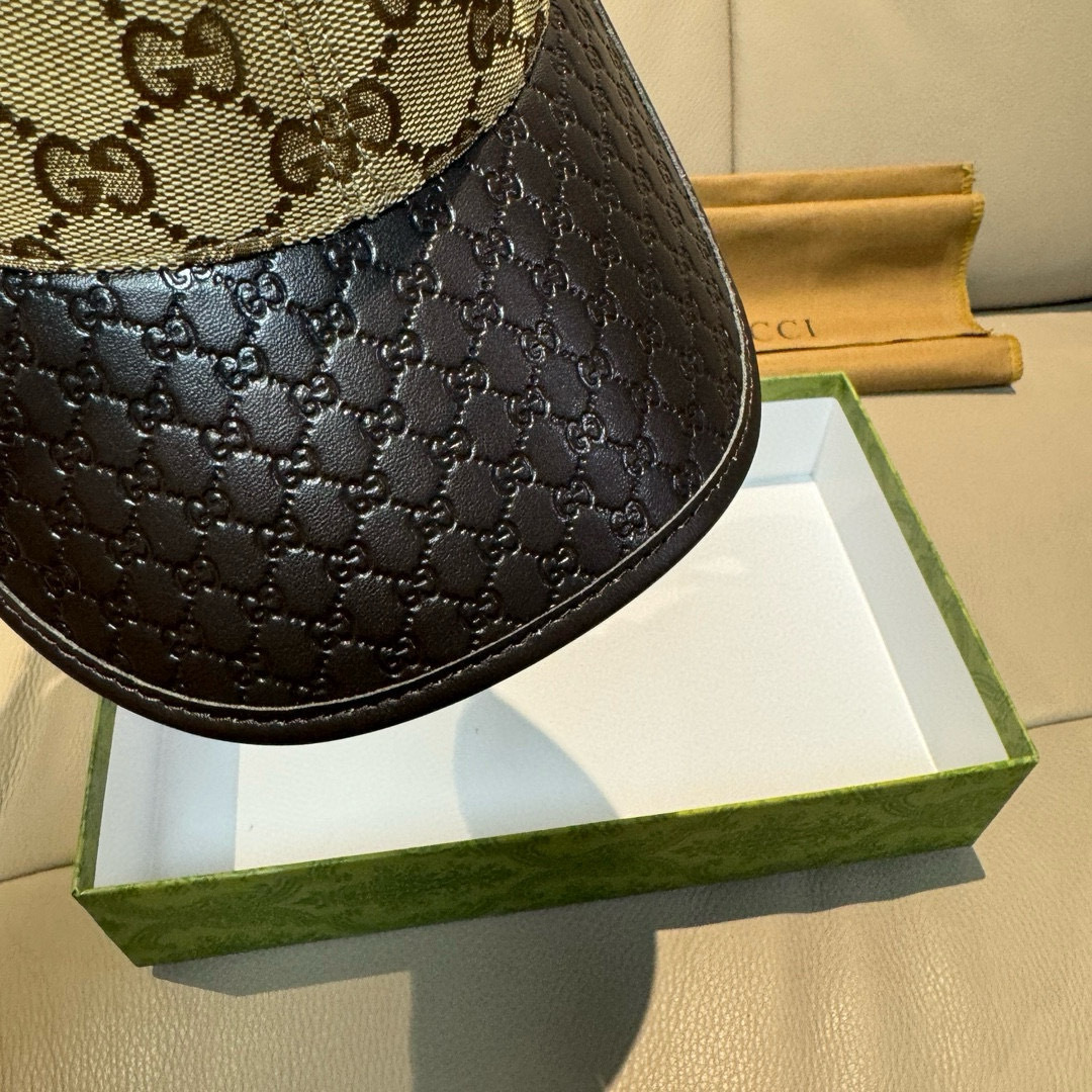 It comes with a box bag, a classic single baseball cap from Gucci, a small double G leather patchwork, and is custom-made in a 1:1 mold. The quality is superb! The top layer of the brim made of cowhide with embossed patterns is of excellent quality! Basic head circumference: 56, patch adjustable, original two-color from the counter, hot-selling item!