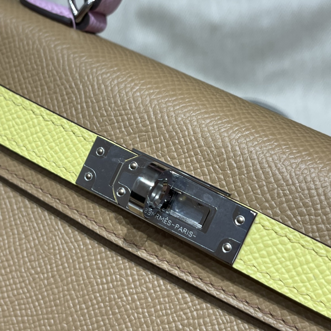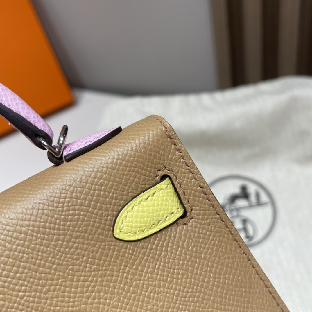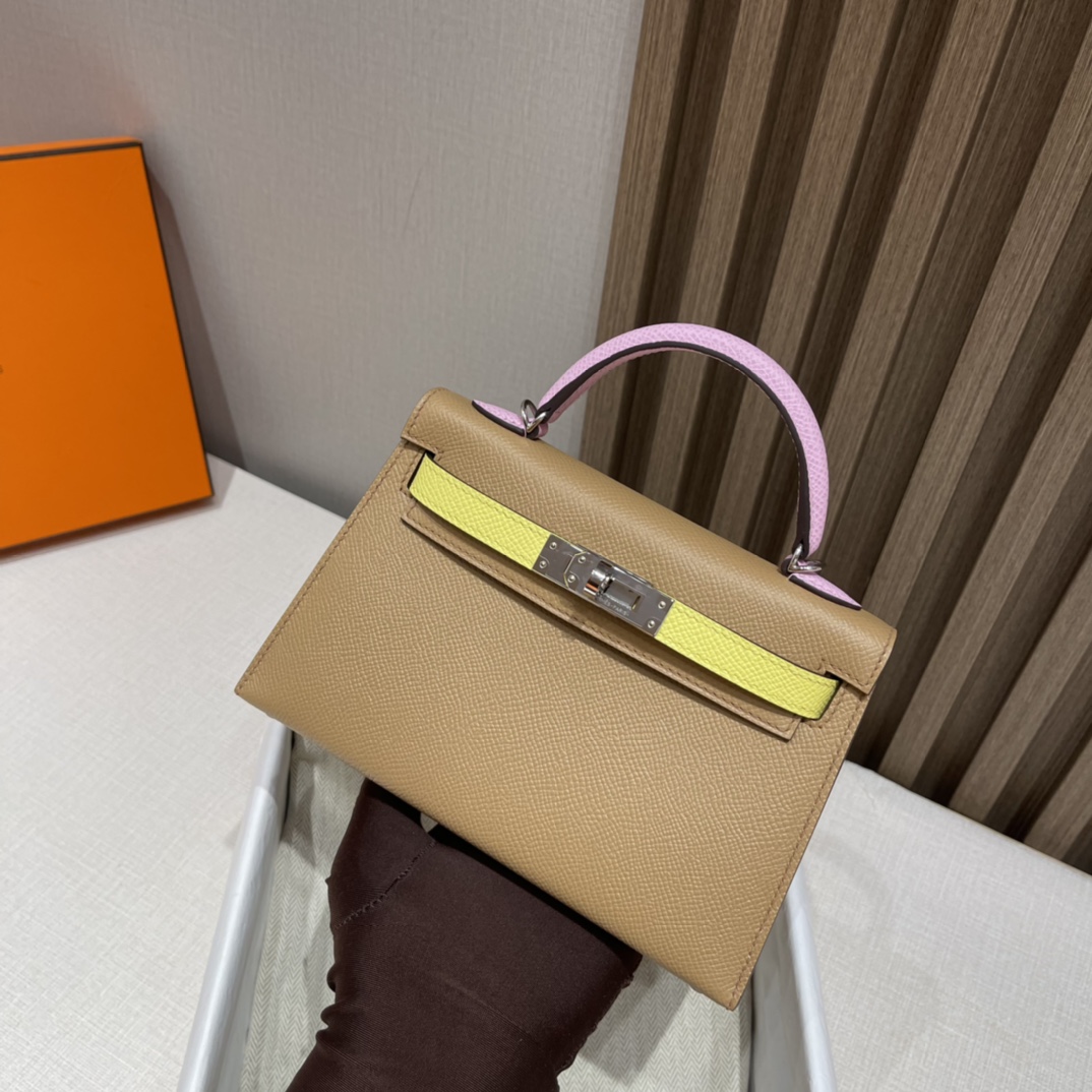 Mini Kelly so 2nd Generation Epsom leather tricolor 0M Marsala brown /X9 mallow purple /9R lemon yellow