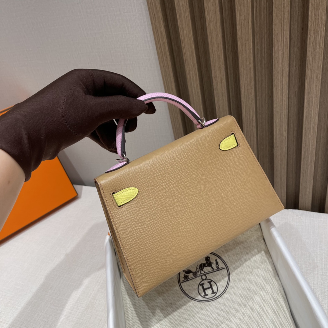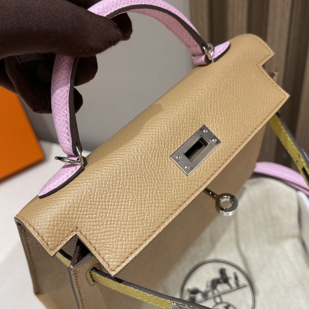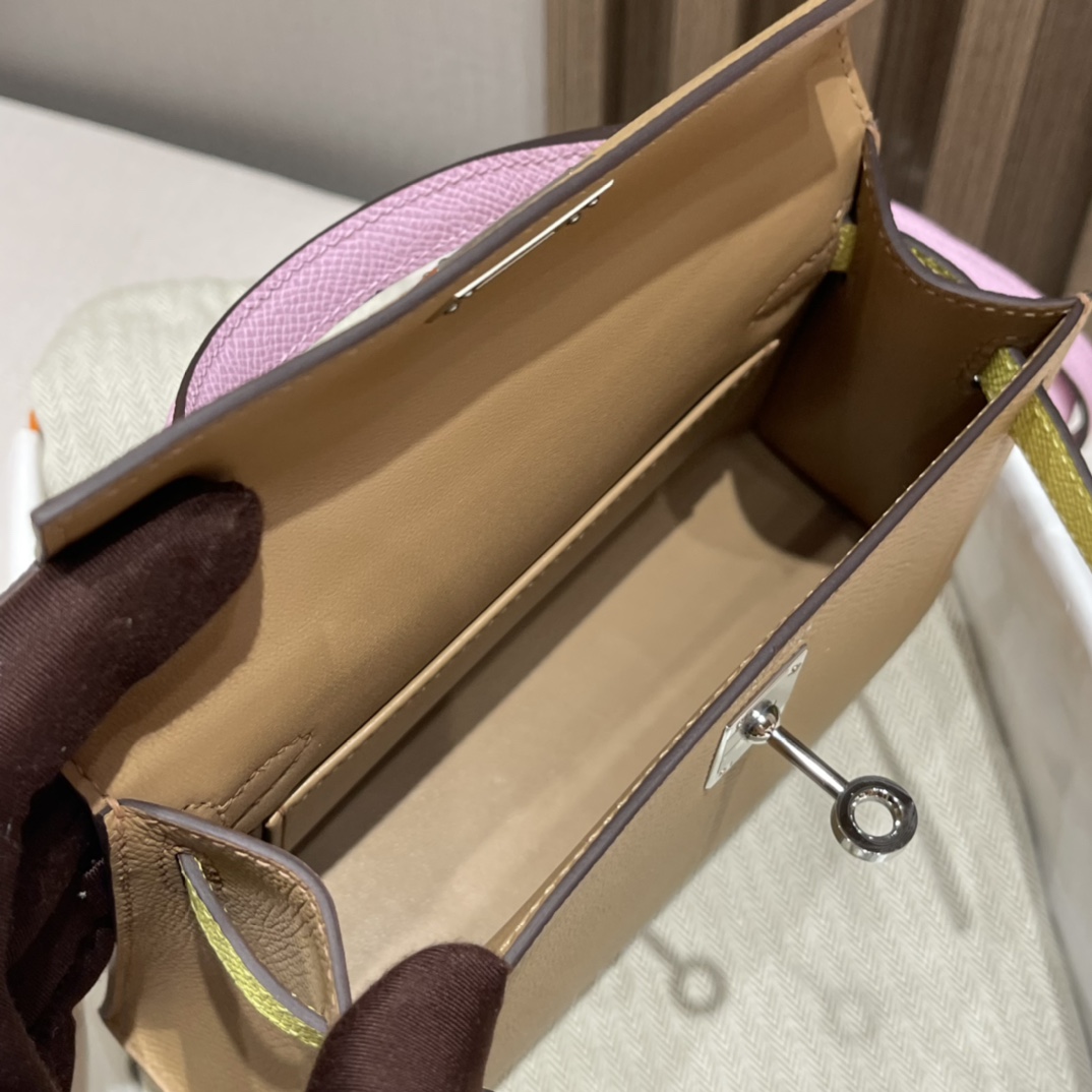 Mini Kelly so 2nd Generation Epsom leather tricolor 0M Marsala brown /X9 mallow purple /9R lemon yellow