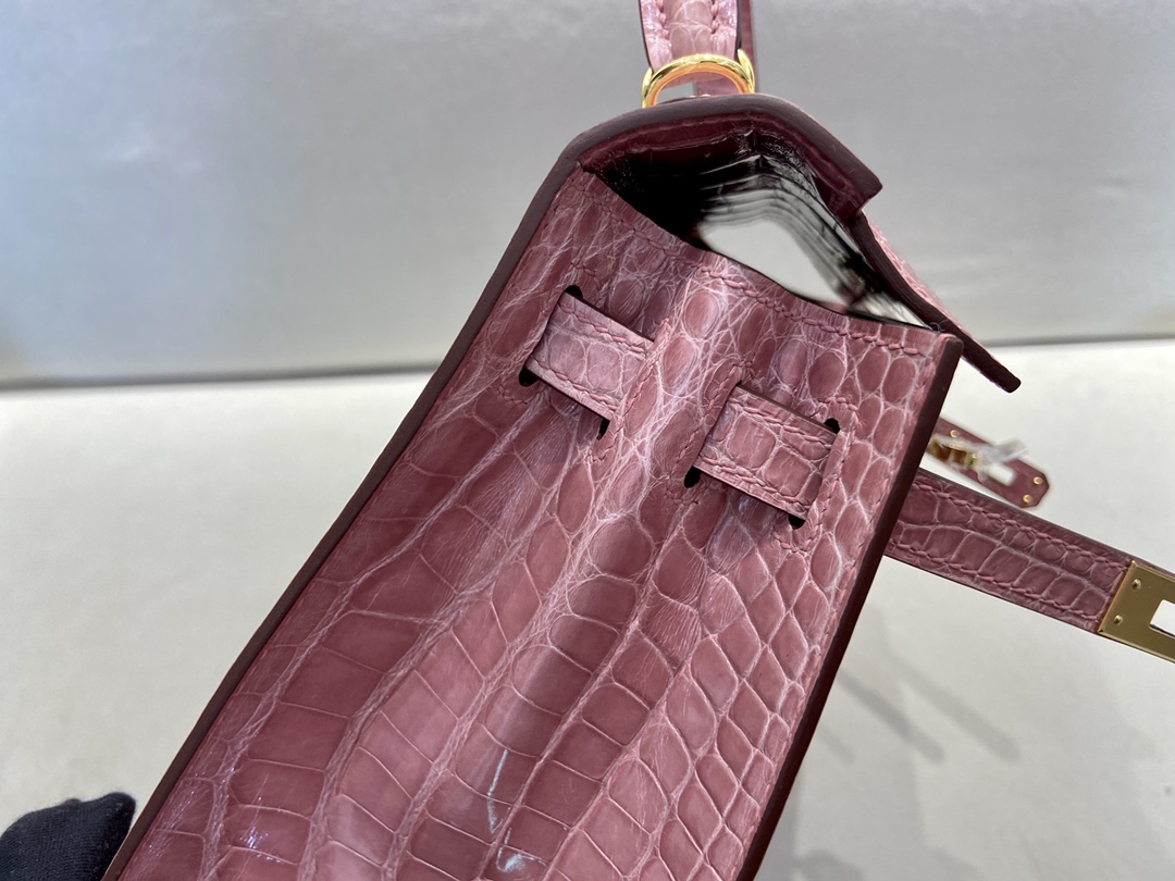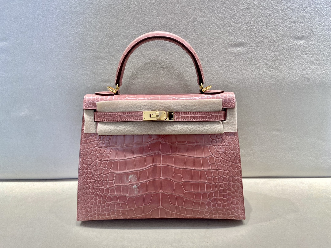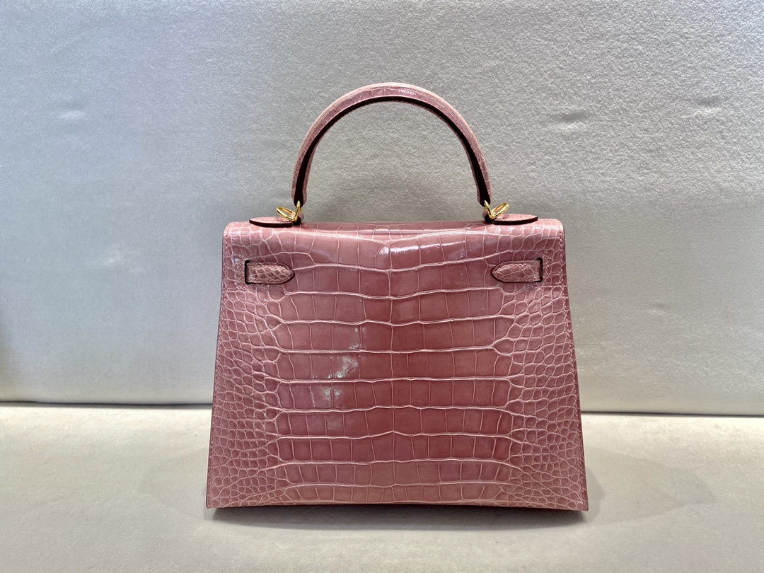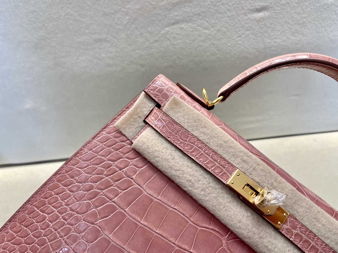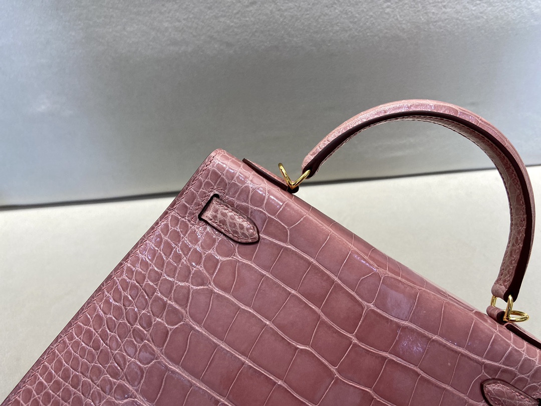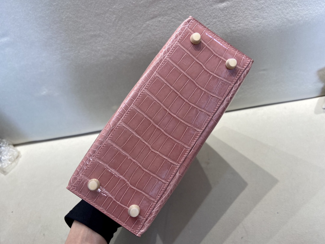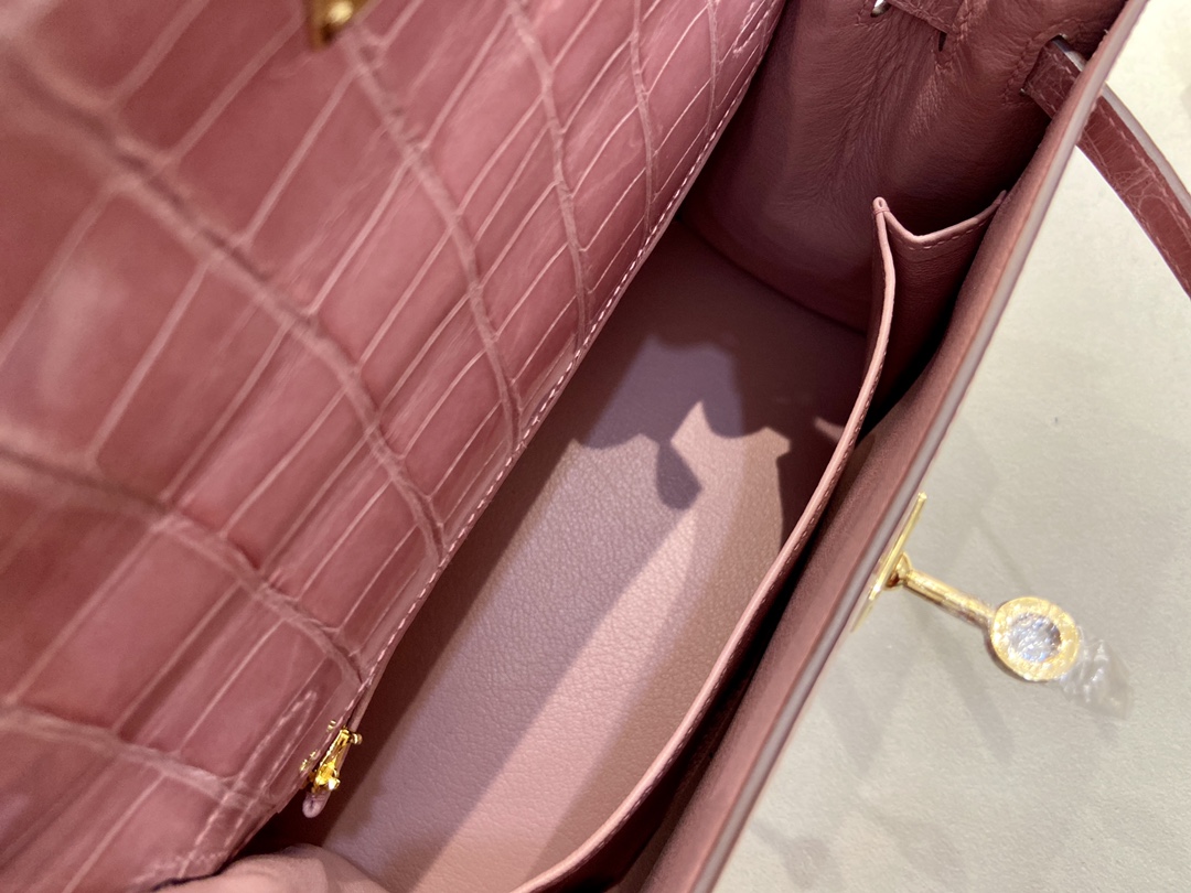 Kelly25cm Gold Alligator ?? American ALLIGATOR Indian Pink rose indienne top HANDMADE Stock #46960