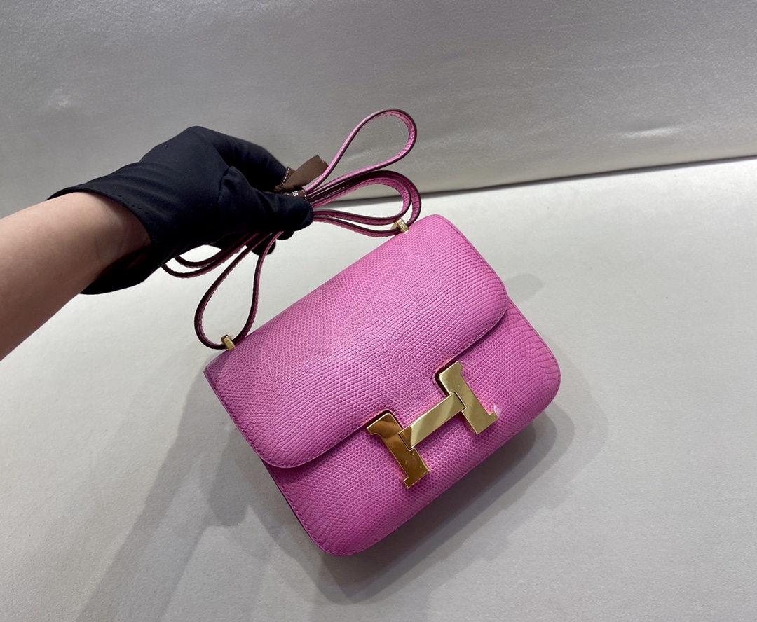 constance19cm Gold buckle Lizard ?? lizar 9i magnolia ?? Pink Magnolia top-quality Handcrafted #21760
