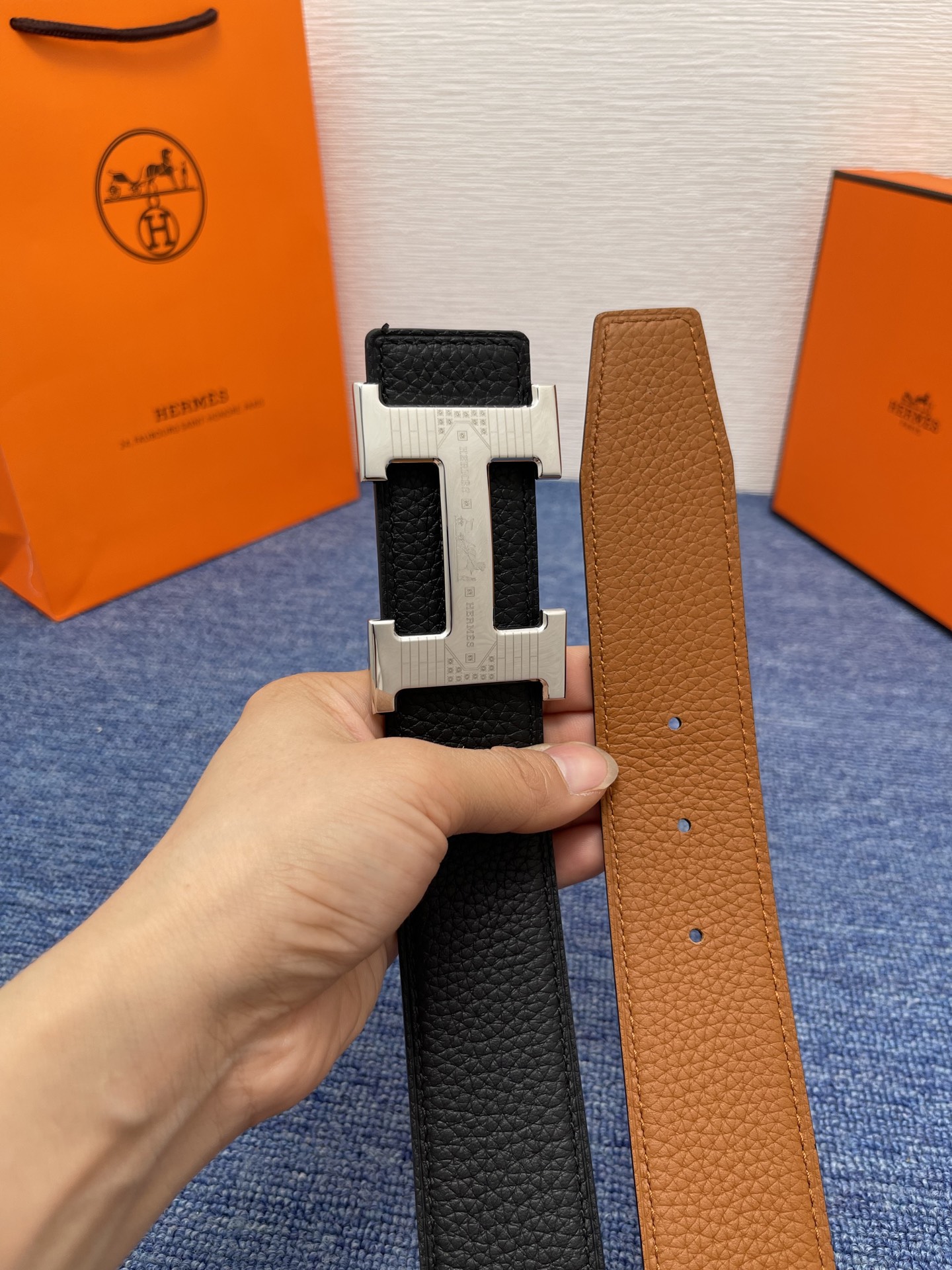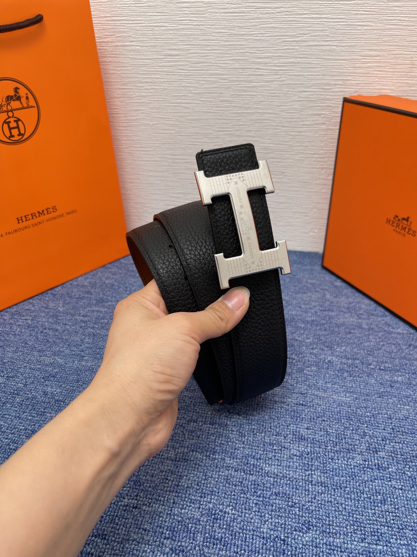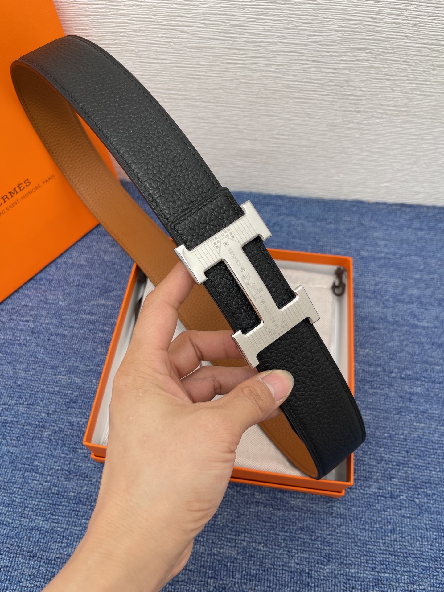 Hermes is exquisitely crafted from high-quality genuine leather, with a thick touch and decorated with trademark buckles. The width of the belt is 3.8 centimeters