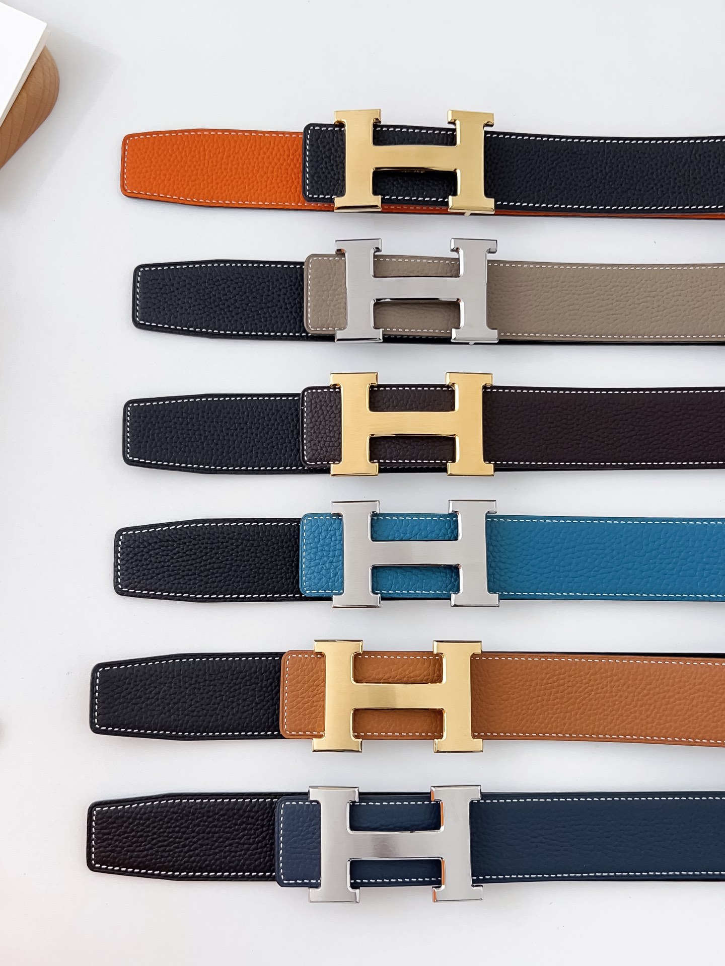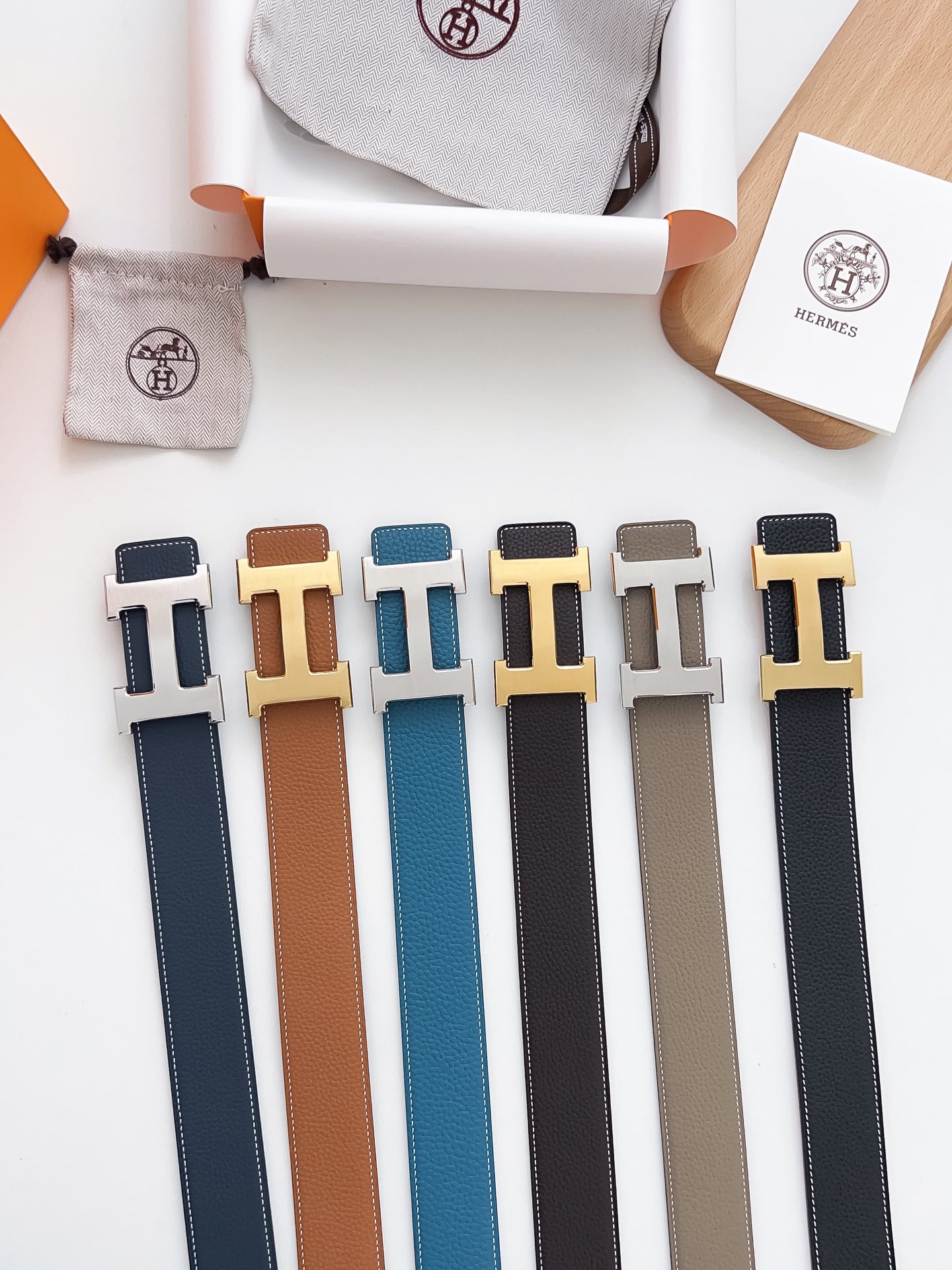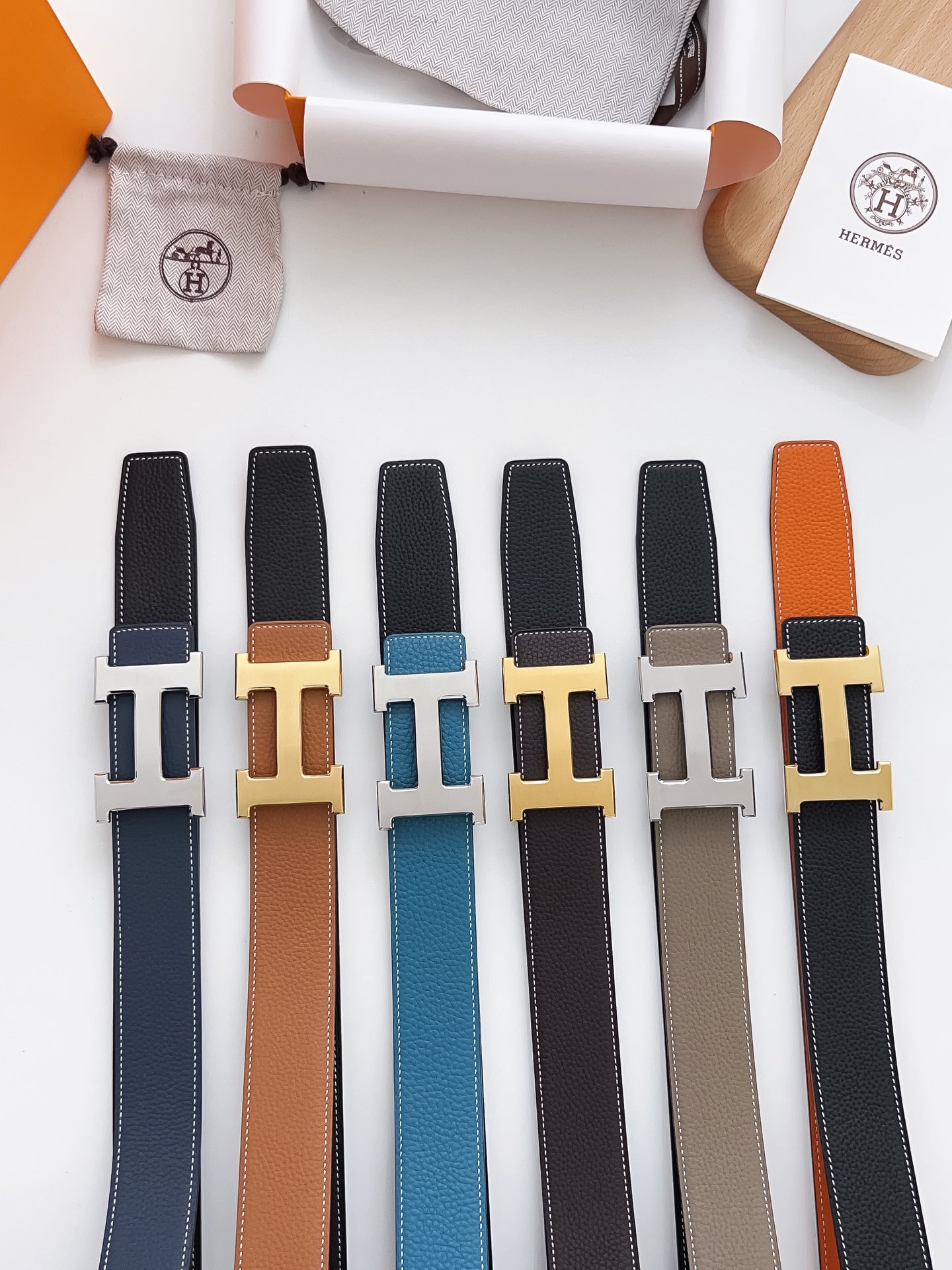 Original Hermes item, width 3.8cm Sg Double-sided top layer togo lychee grain, soft leather material. It can be used on both sides, with fine workmanship and excellent quality. Buckle: Stainless steel buckle (gold and silver)