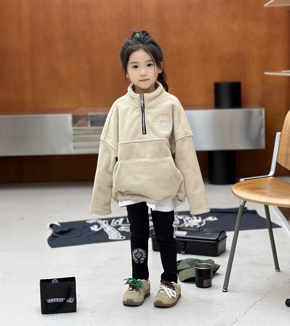 Kloxin, high-end children's clothing, boys' and girls' hoodies, stand-up collar half-pull with fleece hoodies, made of double-sided fleece fabric, high-quality 420 grams, thicker, full cotton texture, enhanced by washing process - softer and more skin-friendly, comfortable and warm, loose and off-the-shoulder style, classic horseshoe-shaped embroidery on the chest, and different material edges on the hem Drawstring design - Freely adjust the tightness, and can be combined with items from the same series to create a personalized look It is comfortable and warm on the upper body. Size: 100/110/120/130/140/150/160/165 cm