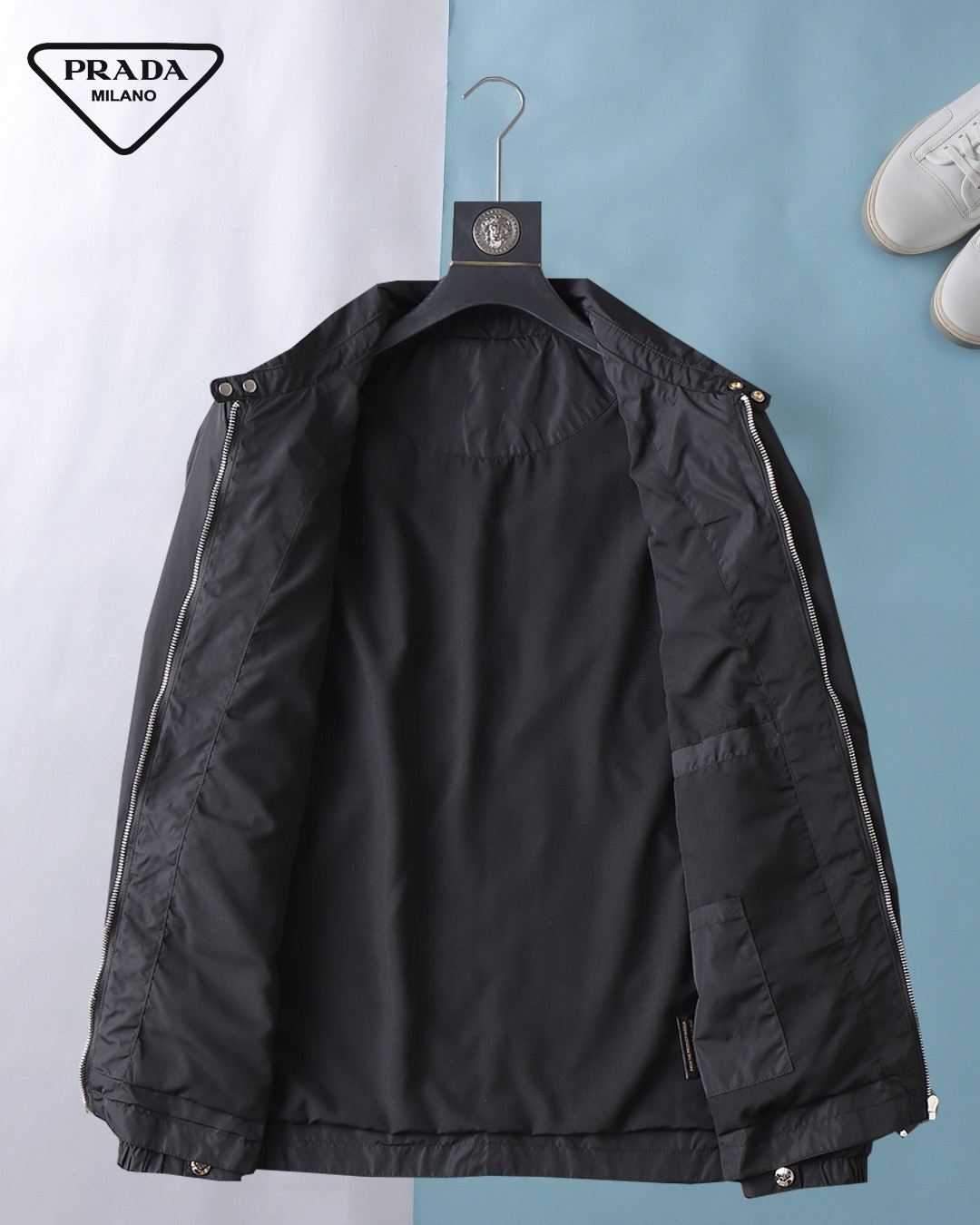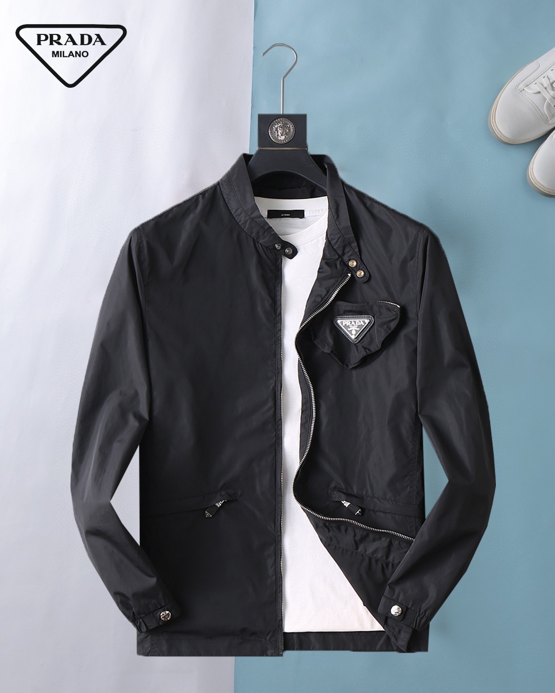 Prada (High-end Quality) Spring 2025 New Fashion Casual hooded Jacket, imported original technological fabric, comfortable and breathable when worn, exquisite handcrafted logo on the chest, unique European fashion style design, digital positioning printing process on the back, highlighting the personality of young people, original hardware accessories, extremely high grade, looking very cool when worn! Please report your height and weight when placing an order for M-3XL!